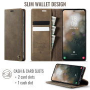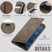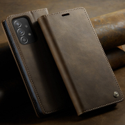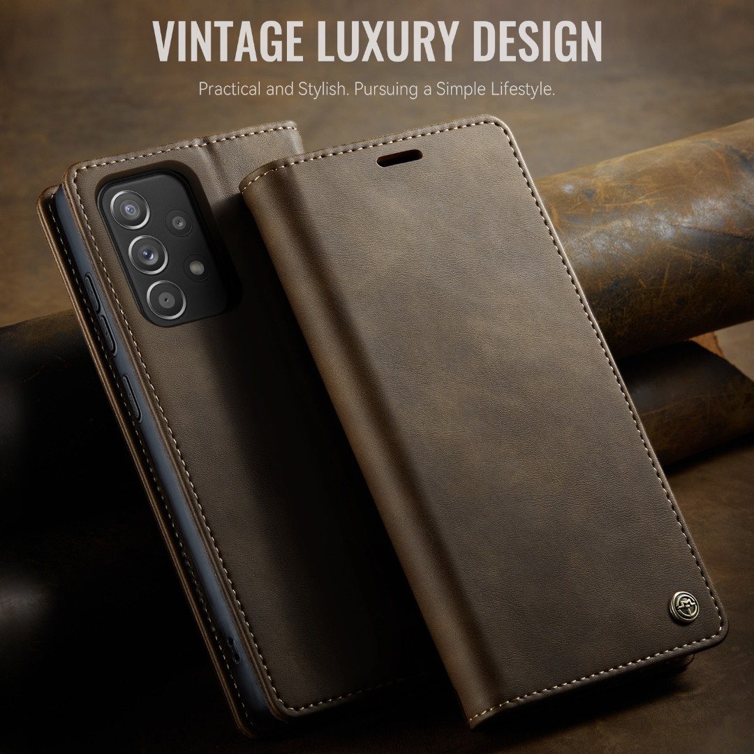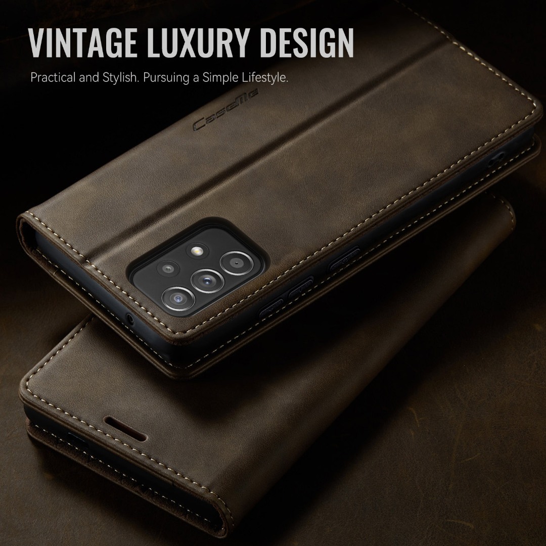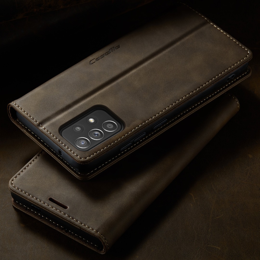 Husa pentru Samsung Galaxy A52 4G, A52 5G, A52s - Slim tip portofel, cu stand si inchidere magnetica – textura neteda, aderenta sigura, usor de curatat, design curat si minimalist, CaseMe, Brun clasic