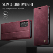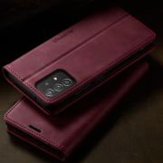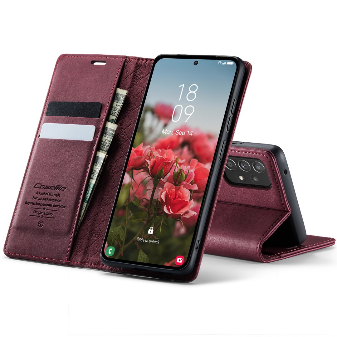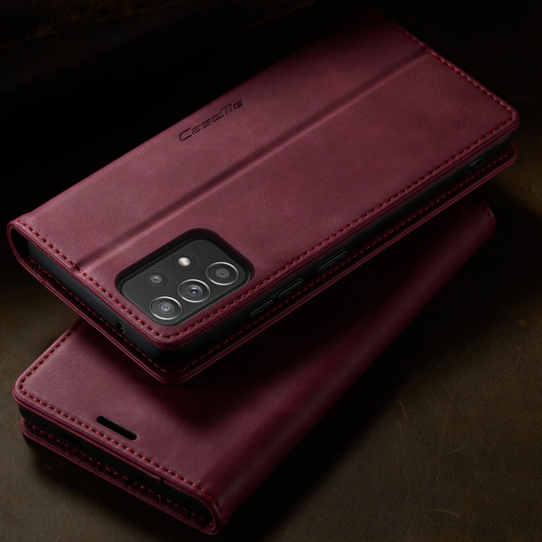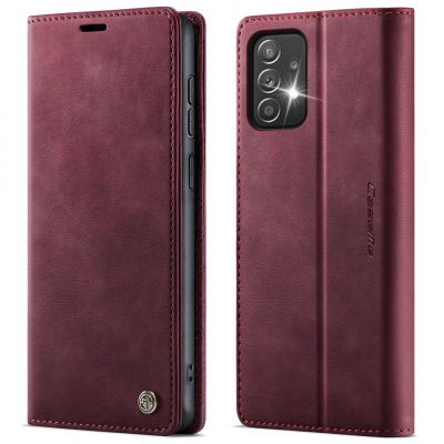 Husa pentru Samsung Galaxy A52 4G, A52 5G, A52s - Slim tip portofel, cu stand si inchidere magnetica – textura neteda, aderenta sigura, usor de curatat, design curat si minimalist, CaseMe, Rosu burgundy