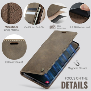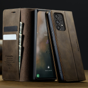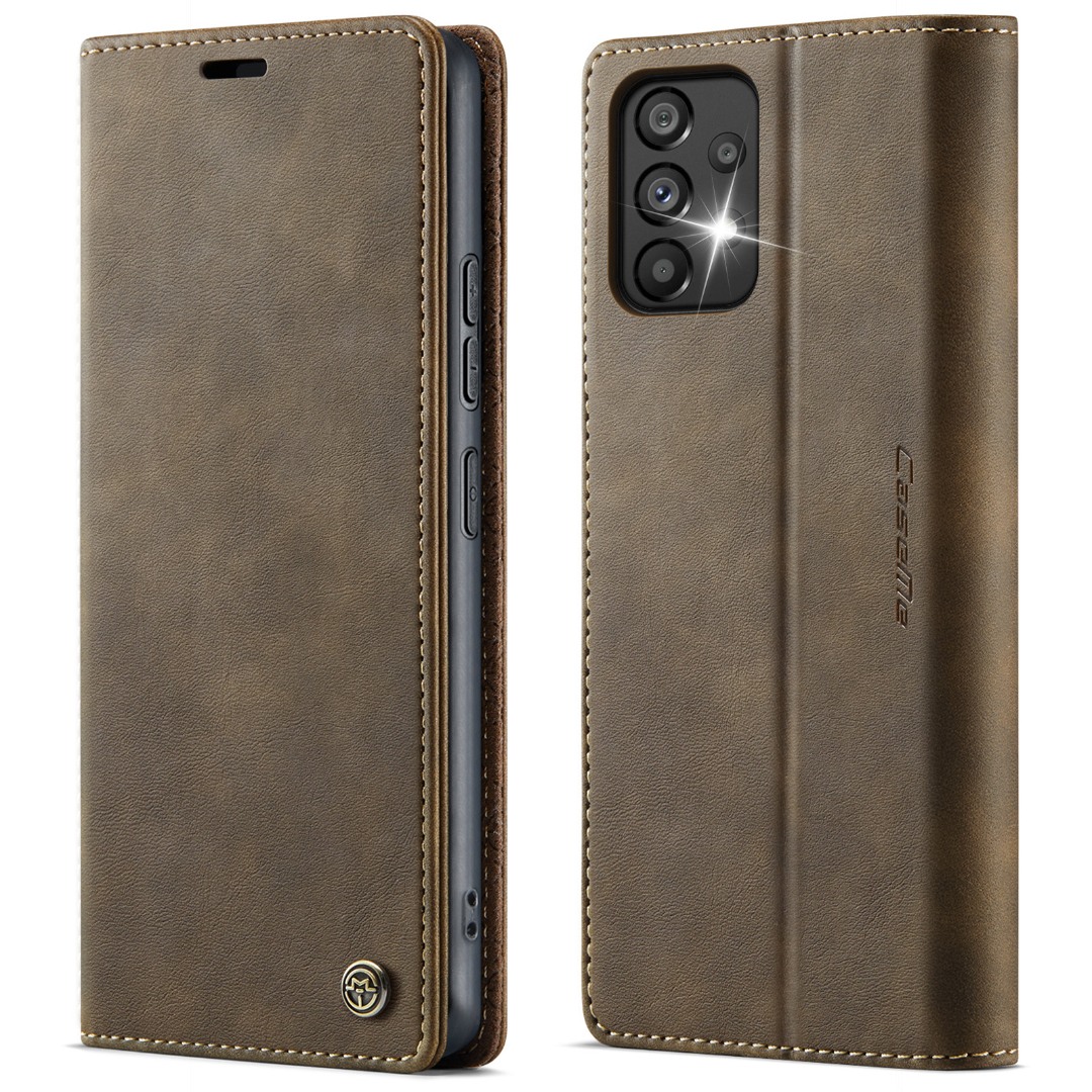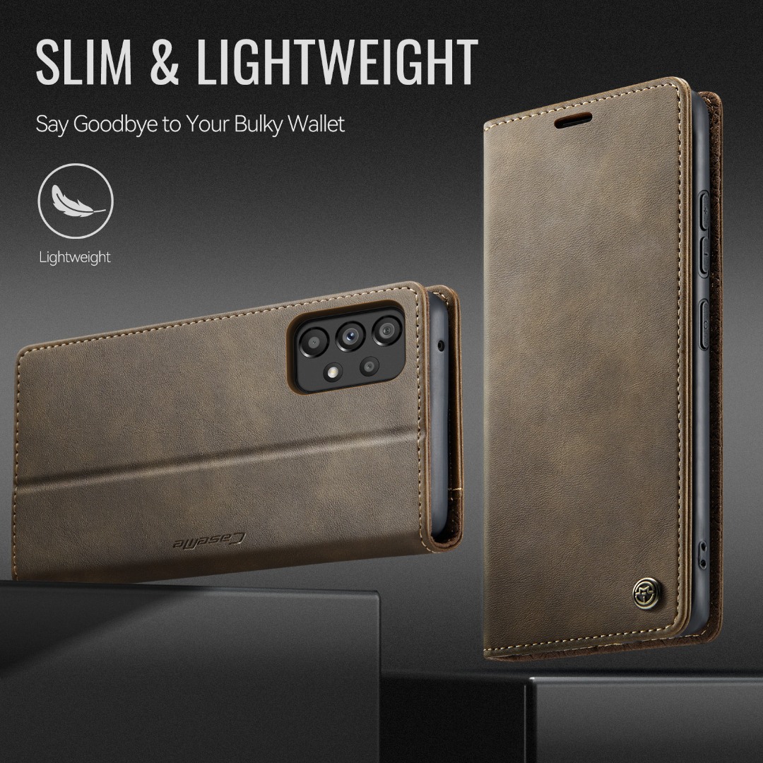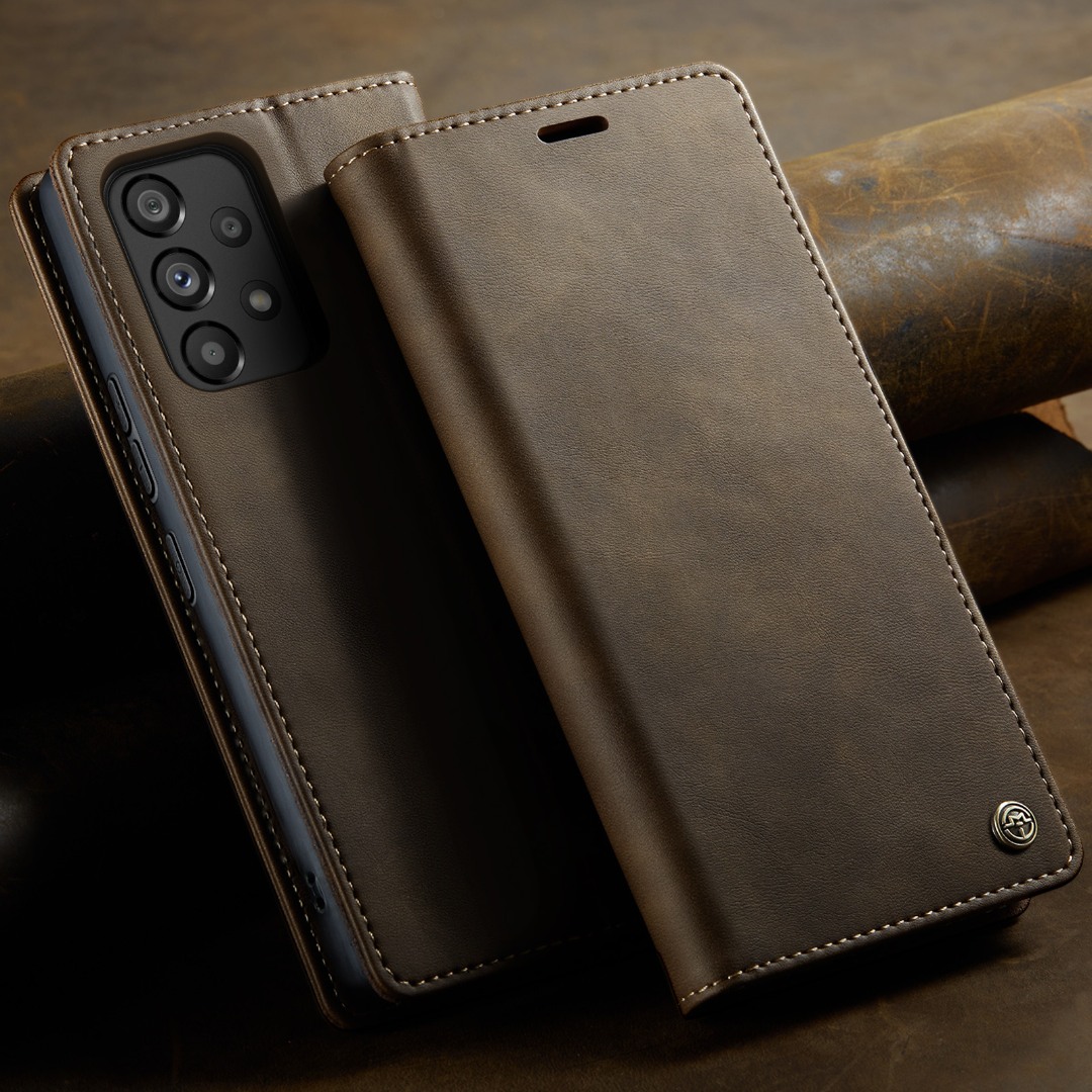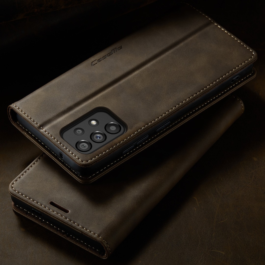 Husa pentru Samsung Galaxy A53 - Slim tip portofel, cu stand si inchidere magnetica – textura neteda, aderenta sigura, usor de curatat, design curat si minimalist, CaseMe, Brun clasic