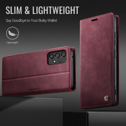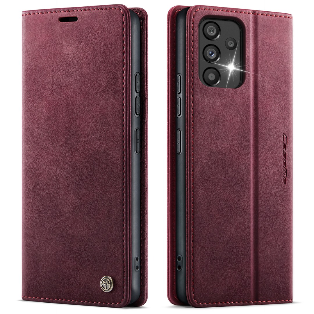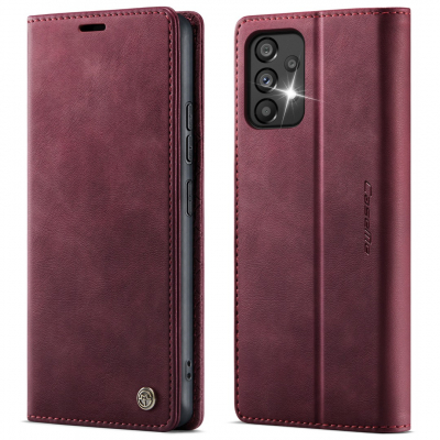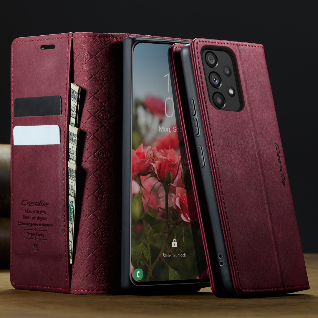 Husa pentru Samsung Galaxy A53 - Slim tip portofel, cu stand si inchidere magnetica – textura neteda, aderenta sigura, usor de curatat, design curat si minimalist, CaseMe, Rosu burgundy