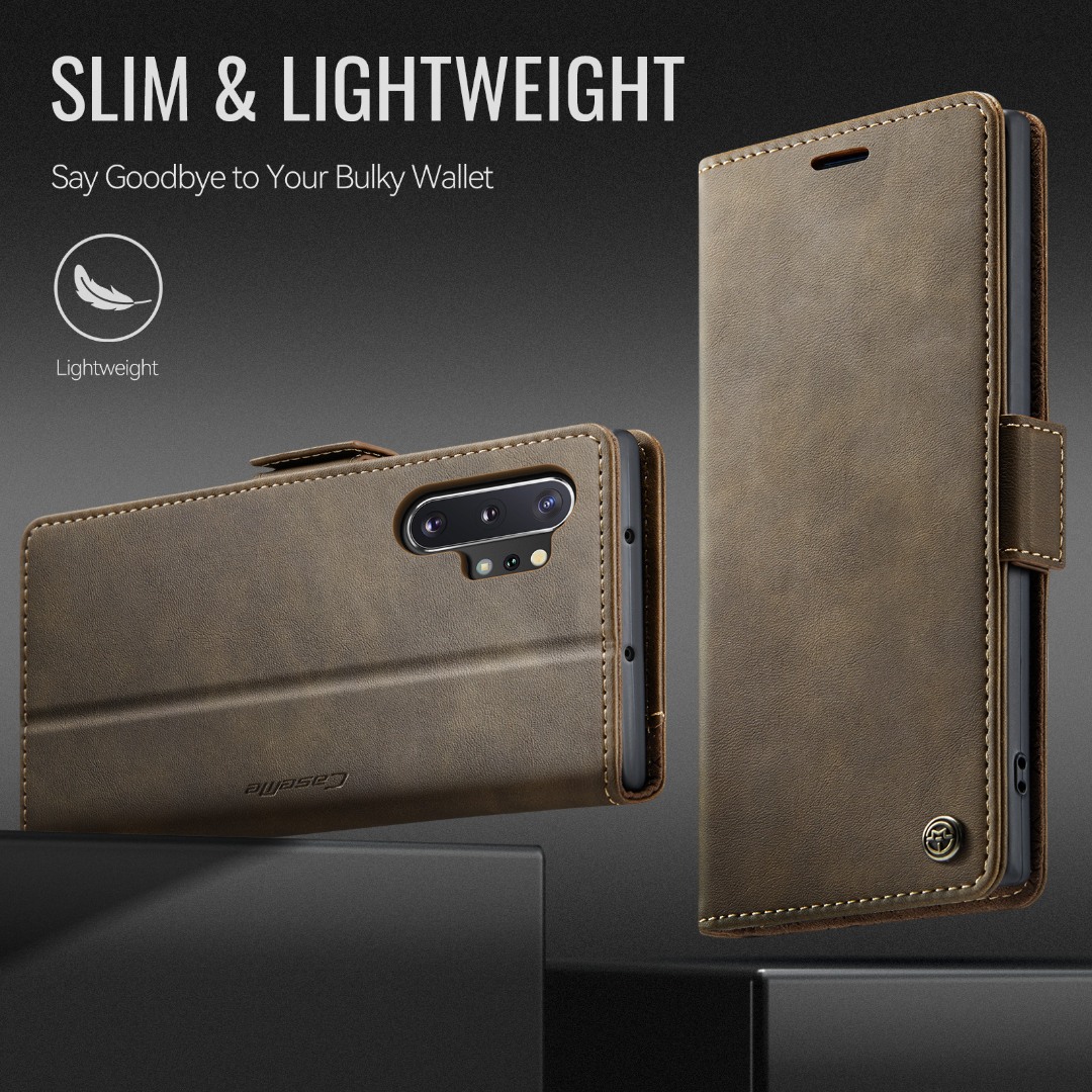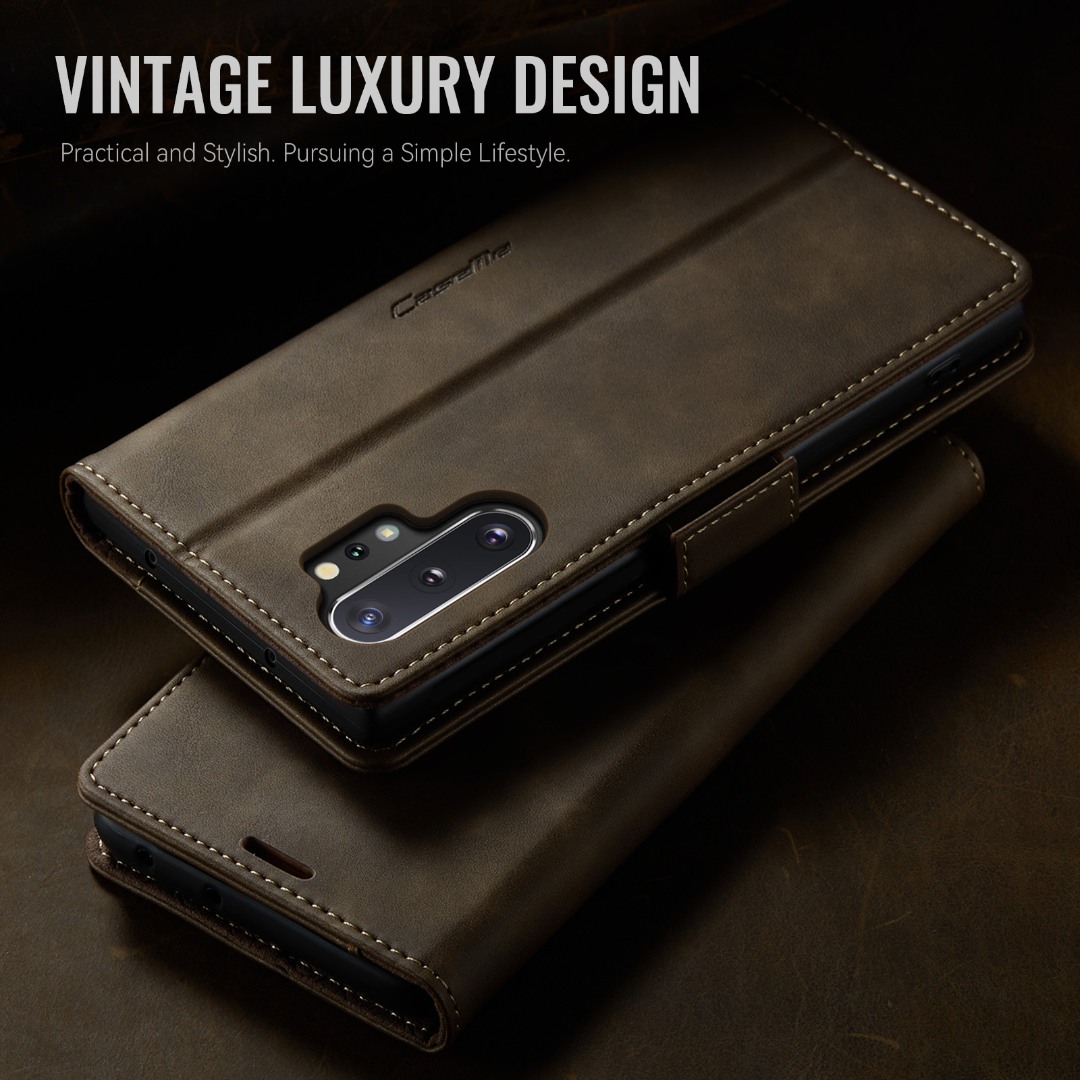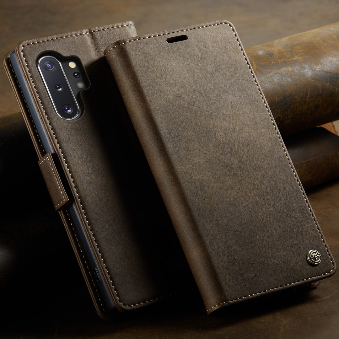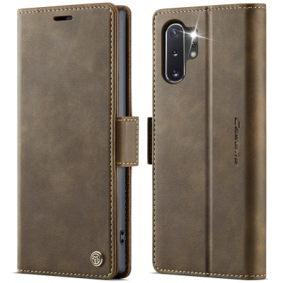 Husa pentru Samsung Galaxy Note 10 Plus - Slim tip portofel, cu stand si inchidere magnetica – textura neteda, aderenta sigura, usor de curatat, design curat si minimalist, CaseMe, Brun clasic