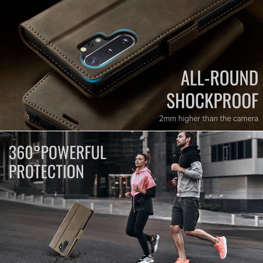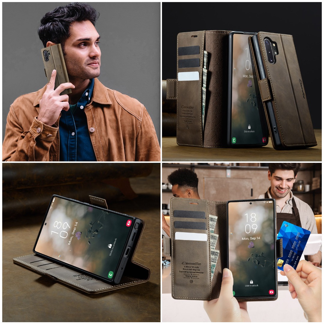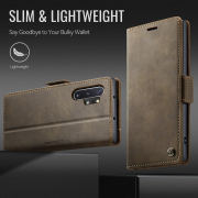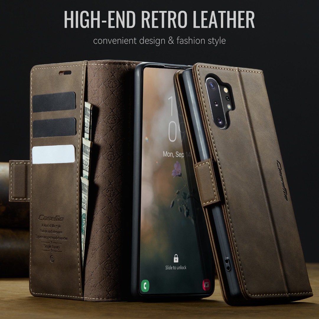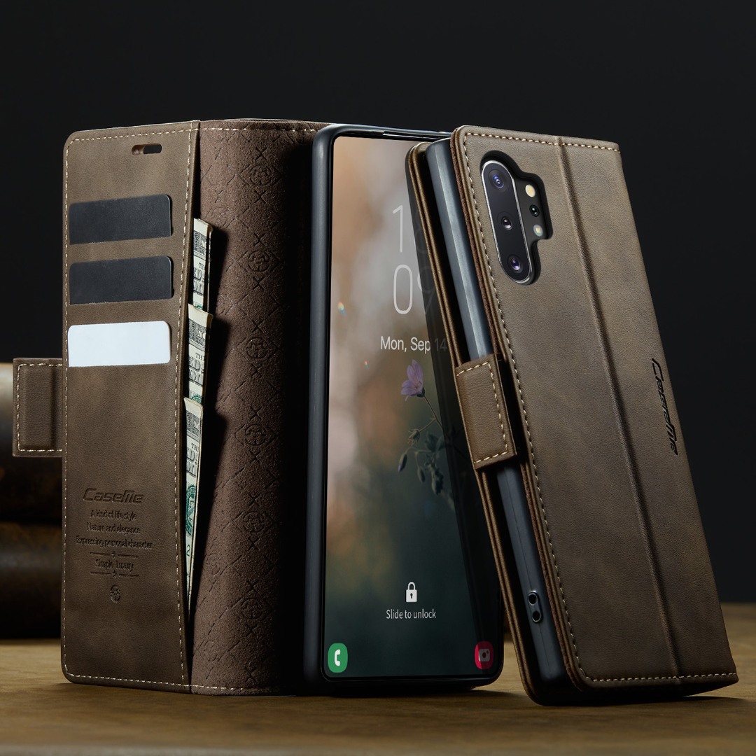 Husa pentru Samsung Galaxy Note 10 Plus - Slim tip portofel, cu stand si inchidere magnetica – textura neteda, aderenta sigura, usor de curatat, design curat si minimalist, CaseMe, Brun clasic