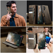 Include 2 sloturi pentru carduri si un compartiment separat pentru bancnote – ideal pentru cei care vor sa renunte la portofelul clasic.