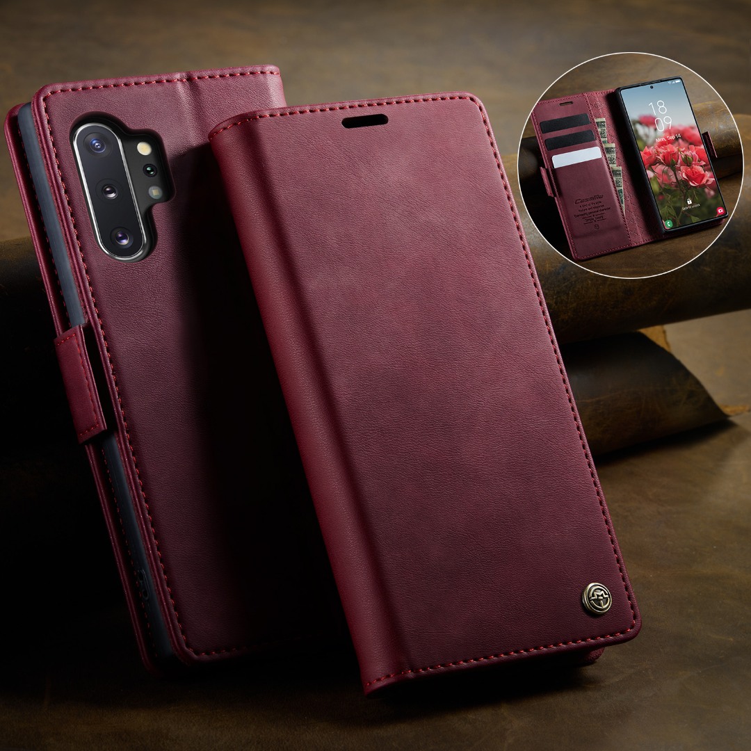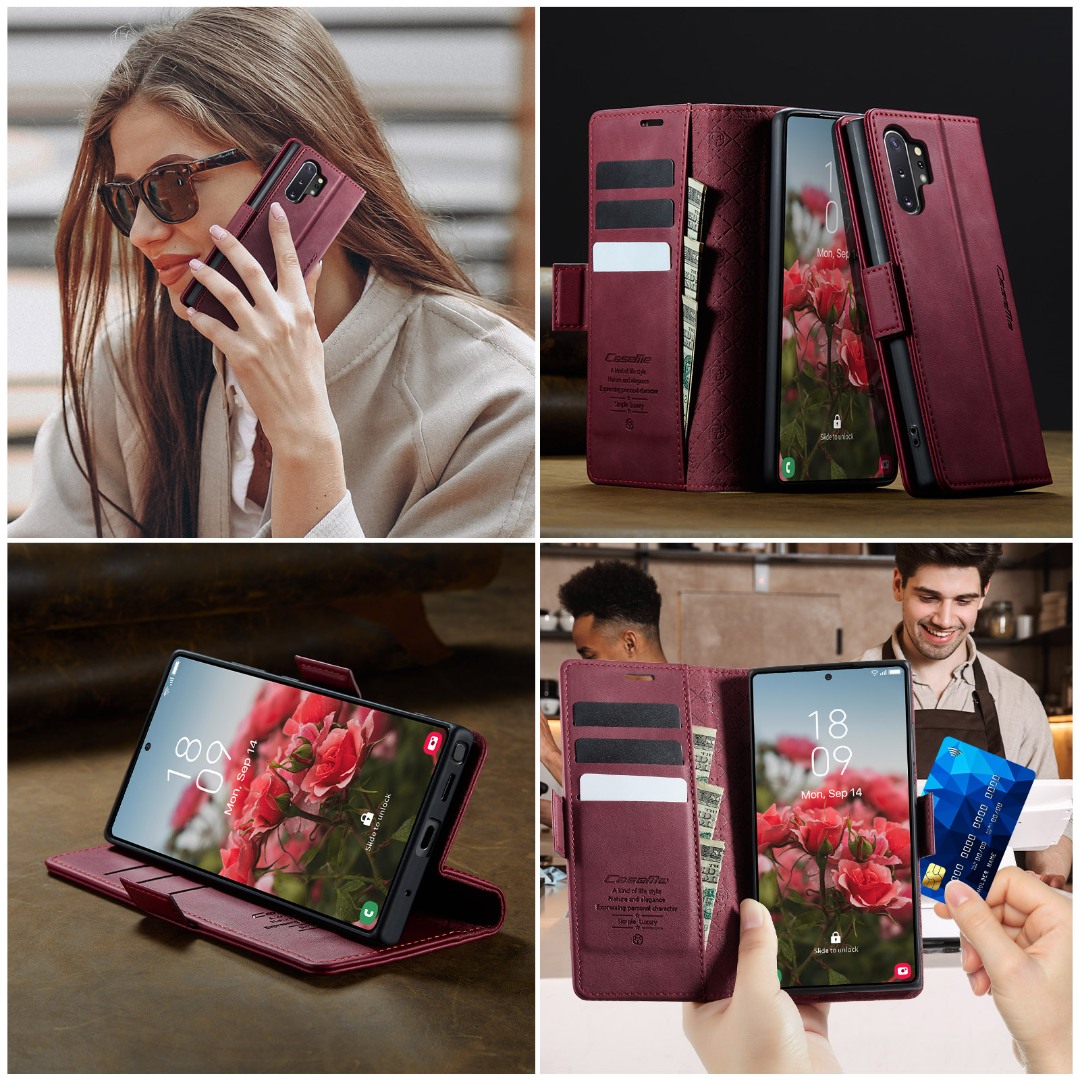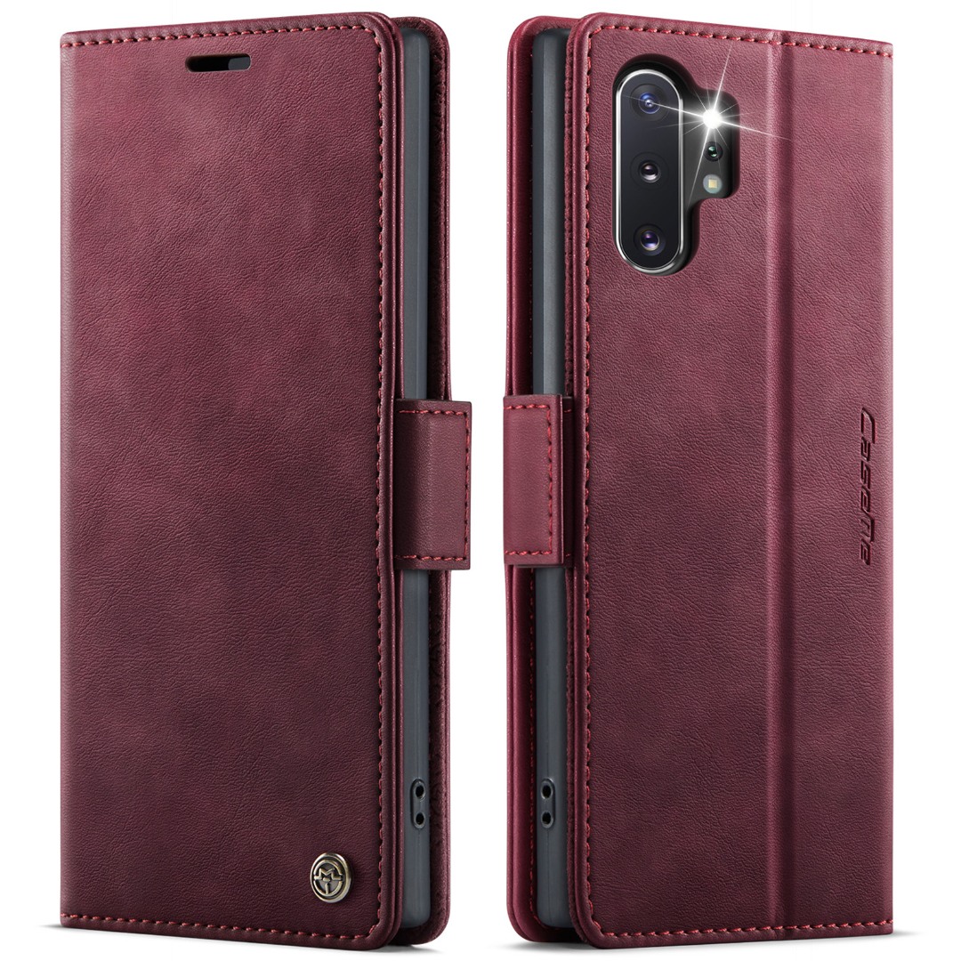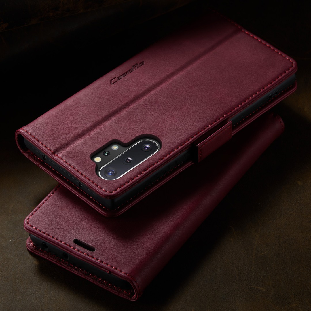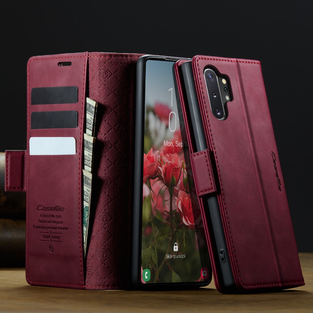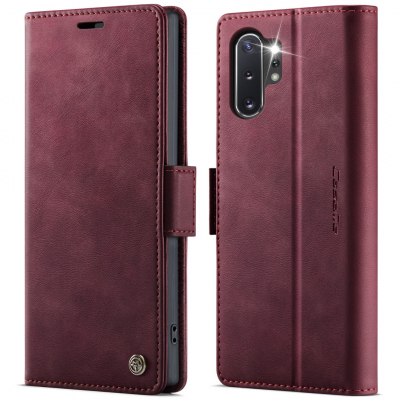 Husa pentru Samsung Galaxy Note 10 Plus - Slim tip portofel, cu stand si inchidere magnetica – textura neteda, aderenta sigura, usor de curatat, design curat si minimalist, CaseMe, Rosu burgundy