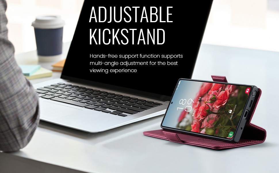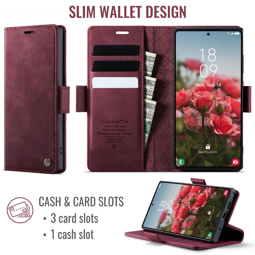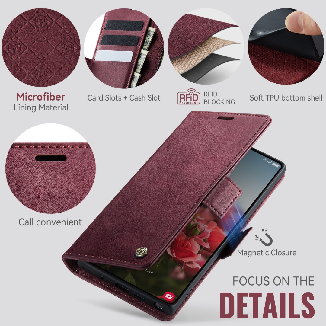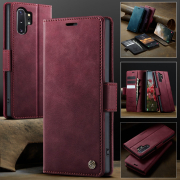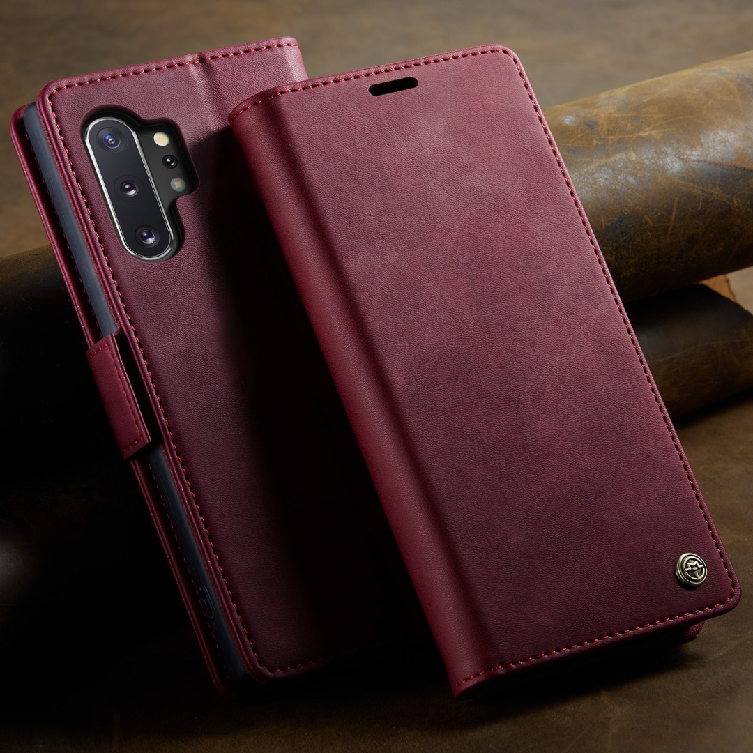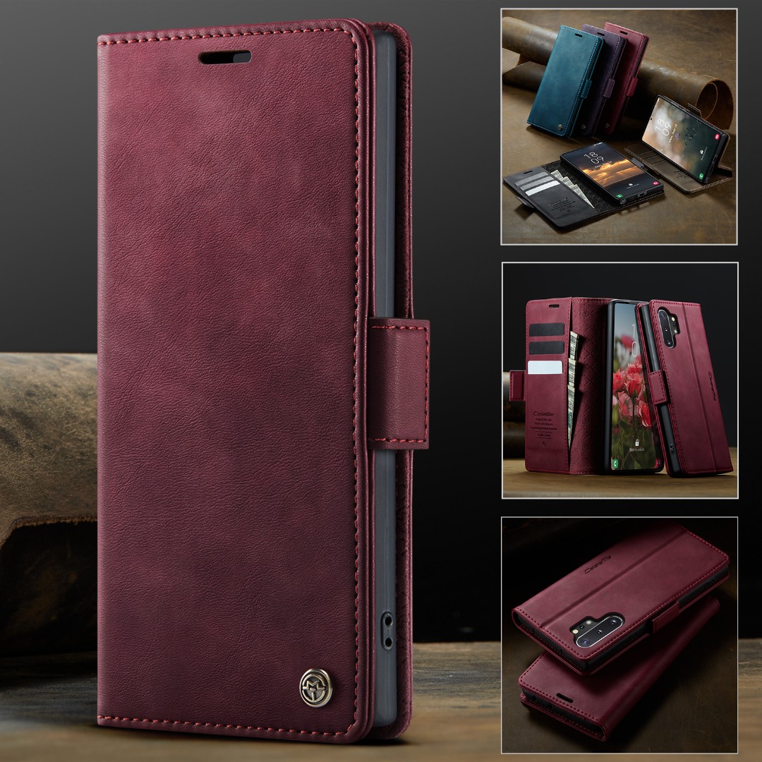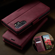Husa pentru Samsung Galaxy Note 10 Plus - Slim tip portofel, cu stand si inchidere magnetica – textura neteda, aderenta sigura, usor de curatat, design curat si minimalist, CaseMe, Rosu burgundy