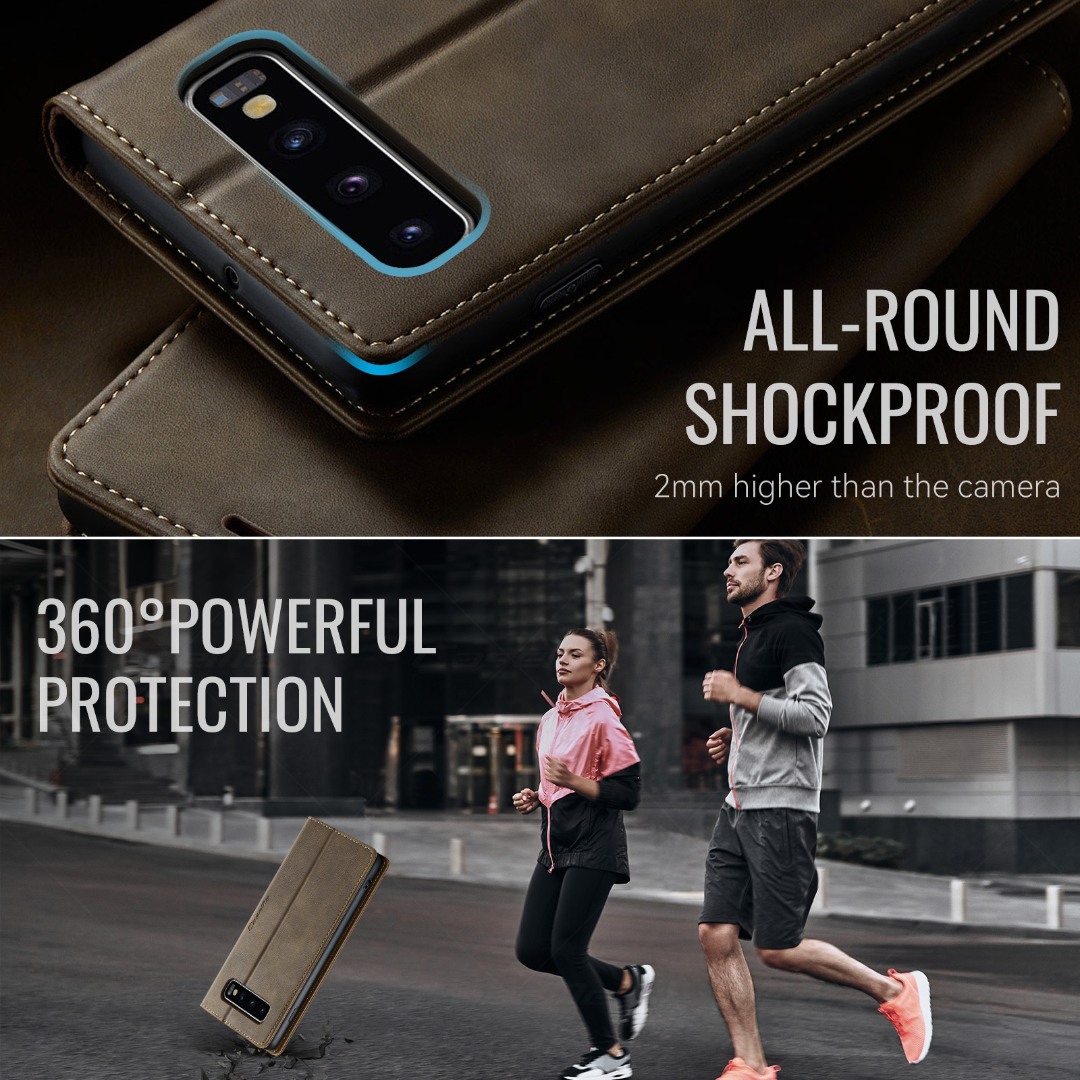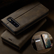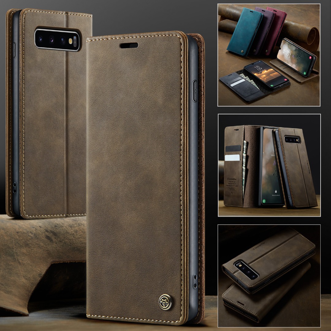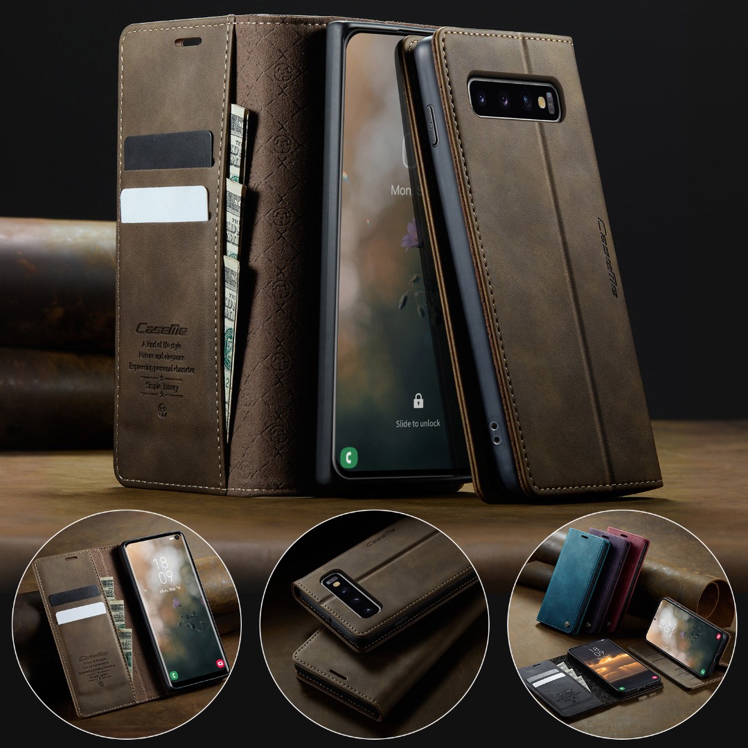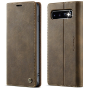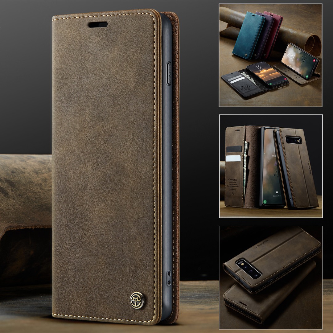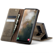 Husa pentru Samsung Galaxy S10 Plus - Slim tip portofel, cu stand si inchidere magnetica – textura neteda, aderenta sigura, usor de curatat, design curat si minimalist, CaseMe, Brun clasic