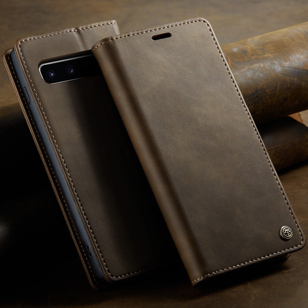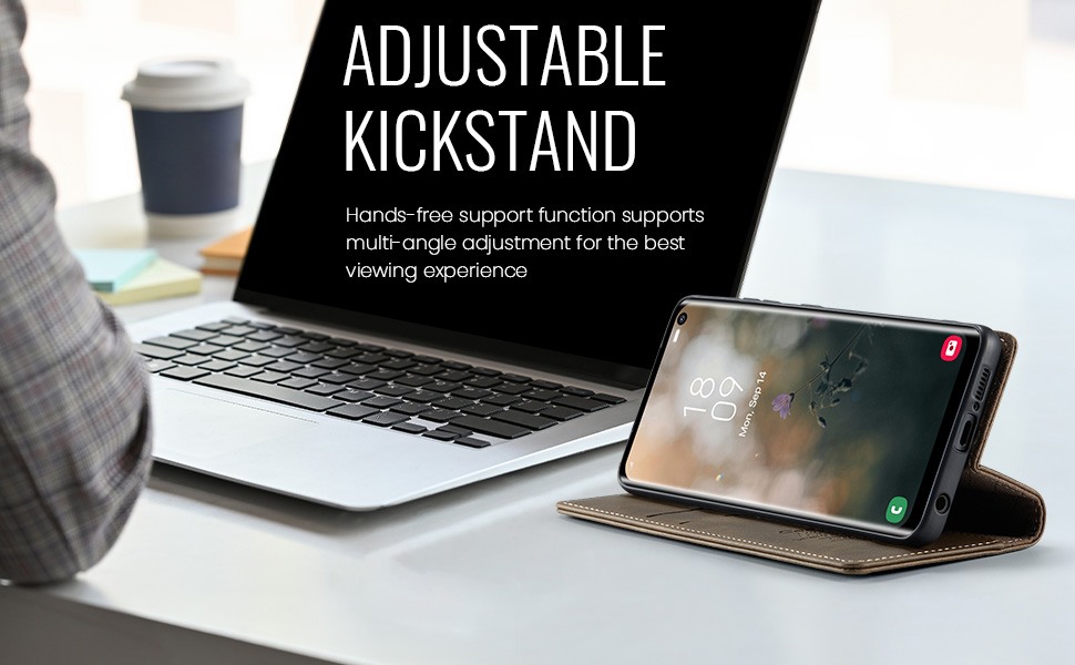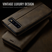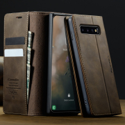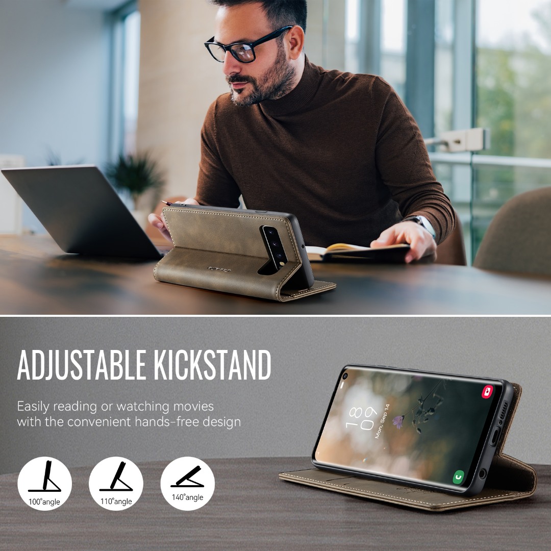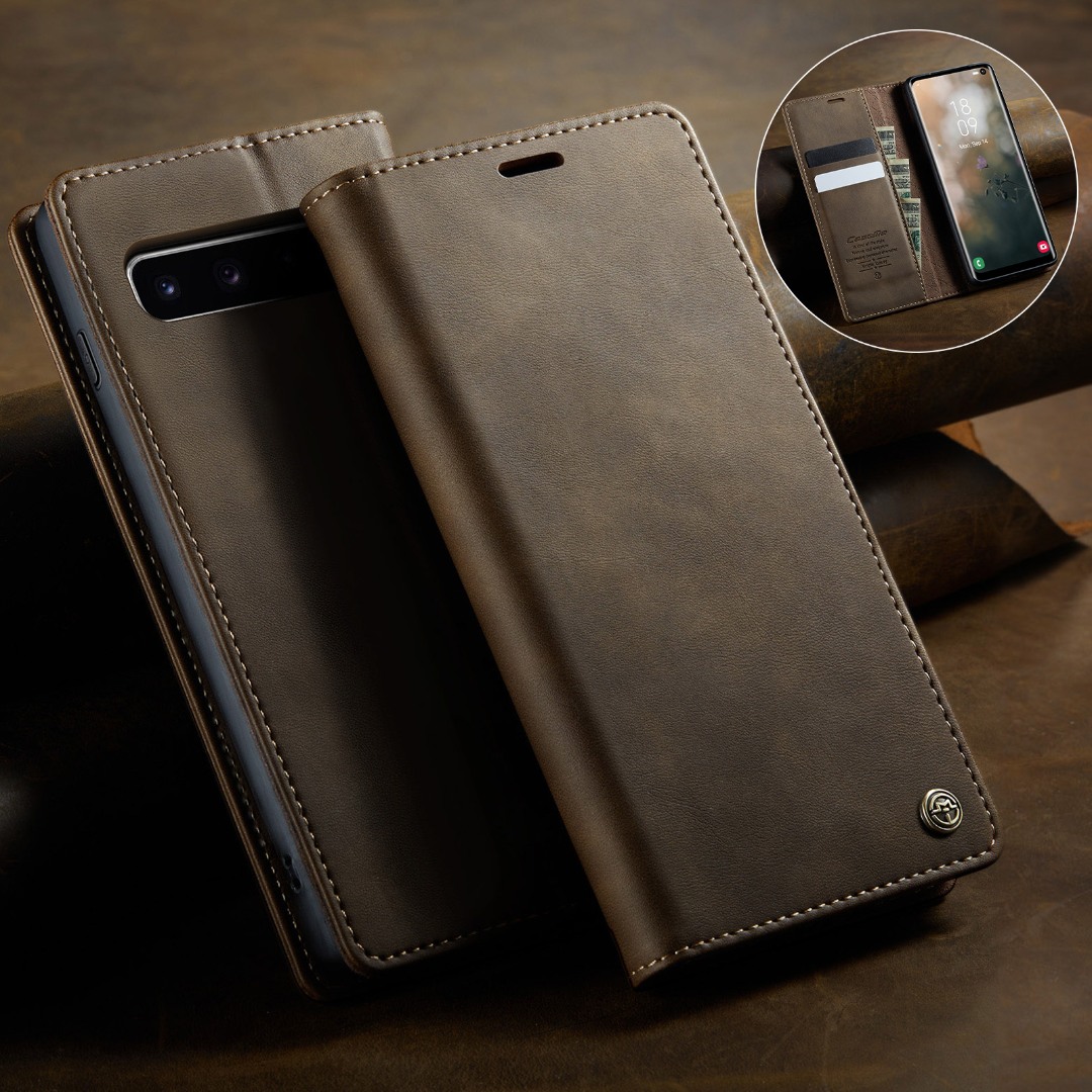 Husa pentru Samsung Galaxy S10 Plus - Slim tip portofel, cu stand si inchidere magnetica – textura neteda, aderenta sigura, usor de curatat, design curat si minimalist, CaseMe, Brun clasic