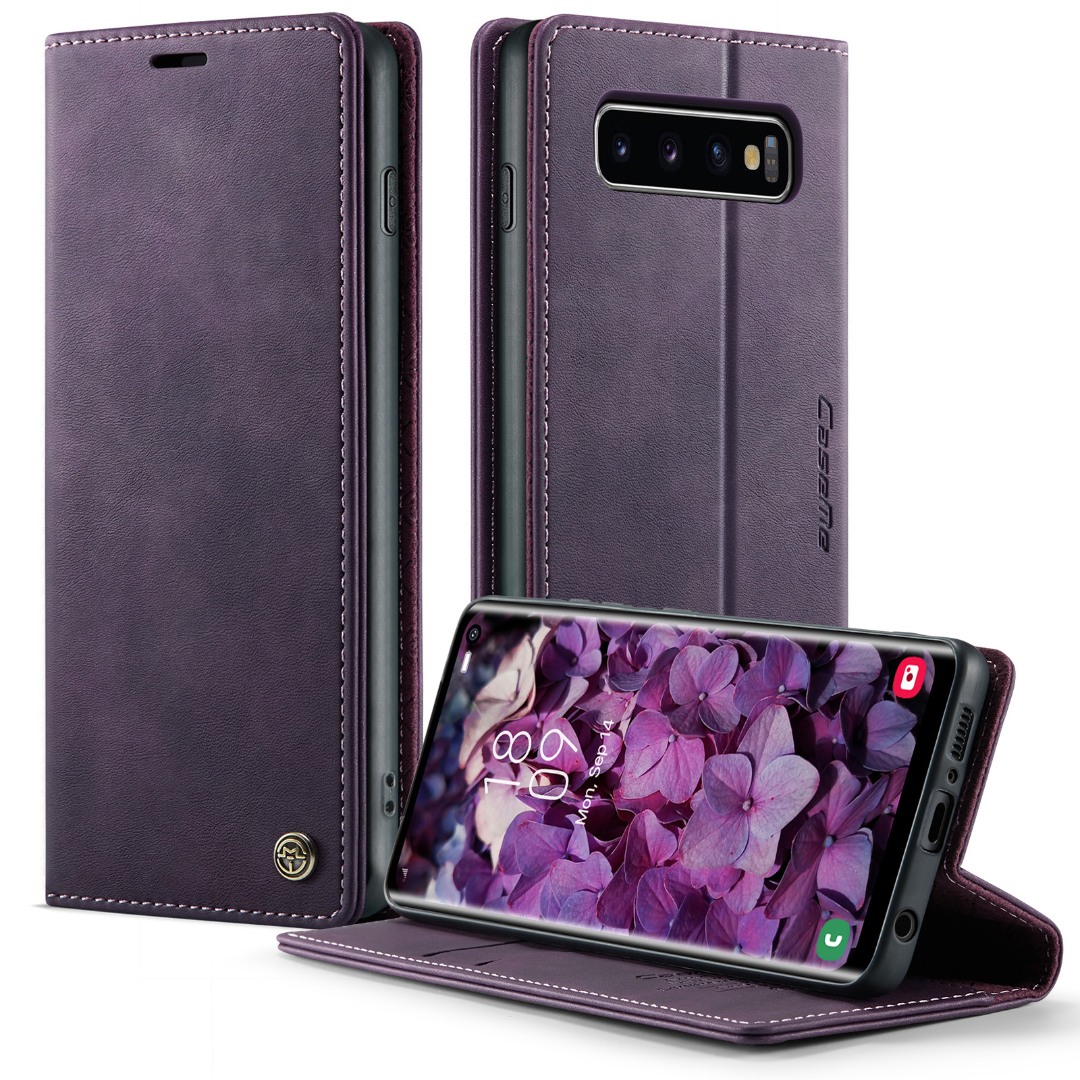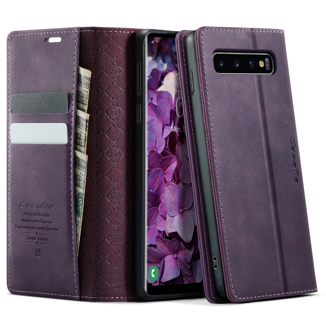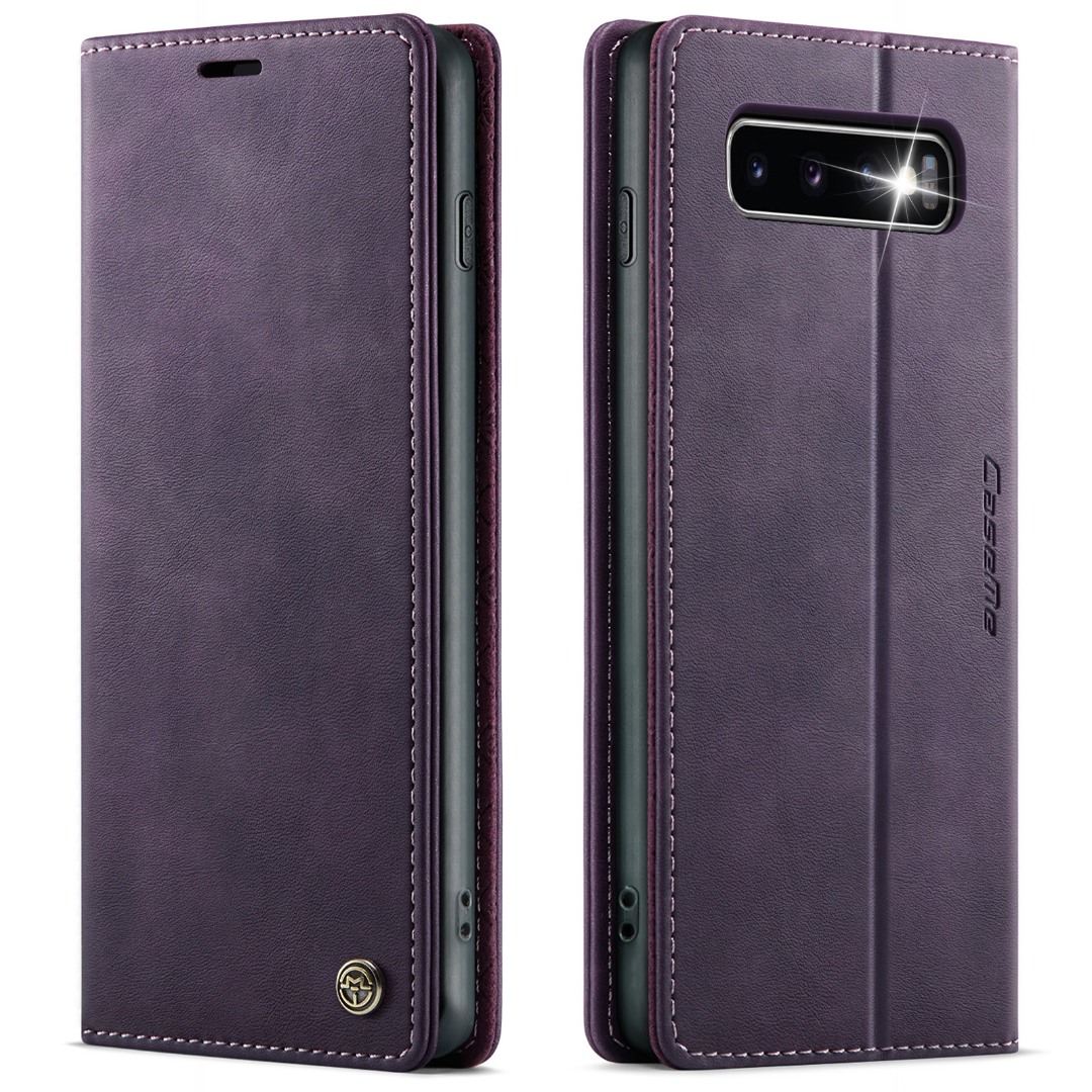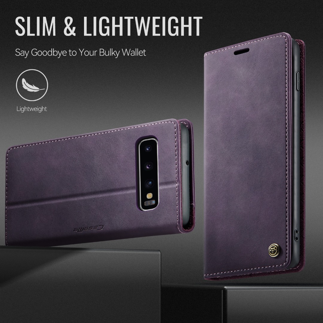 Husa pentru Samsung Galaxy S10 Plus - Slim tip portofel, cu stand si inchidere magnetica – textura neteda, aderenta sigura, usor de curatat, design curat si minimalist, CaseMe, Violet regal