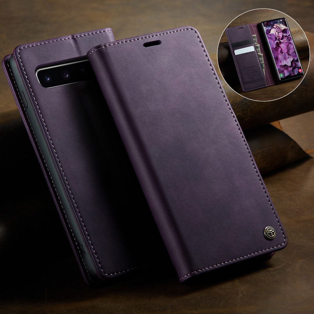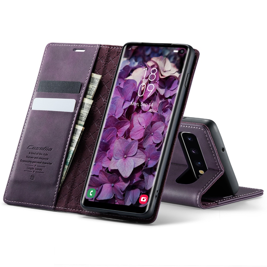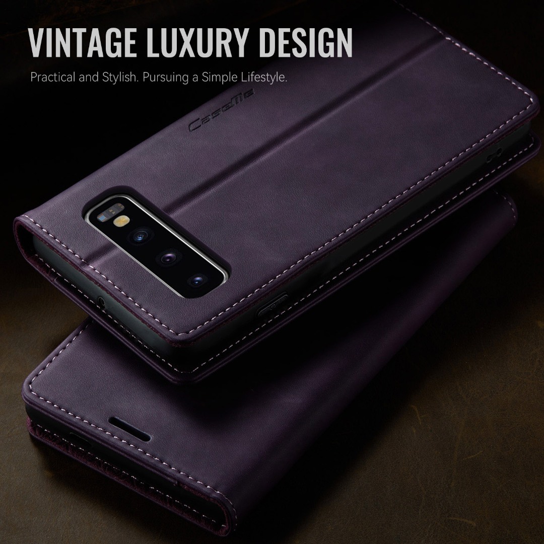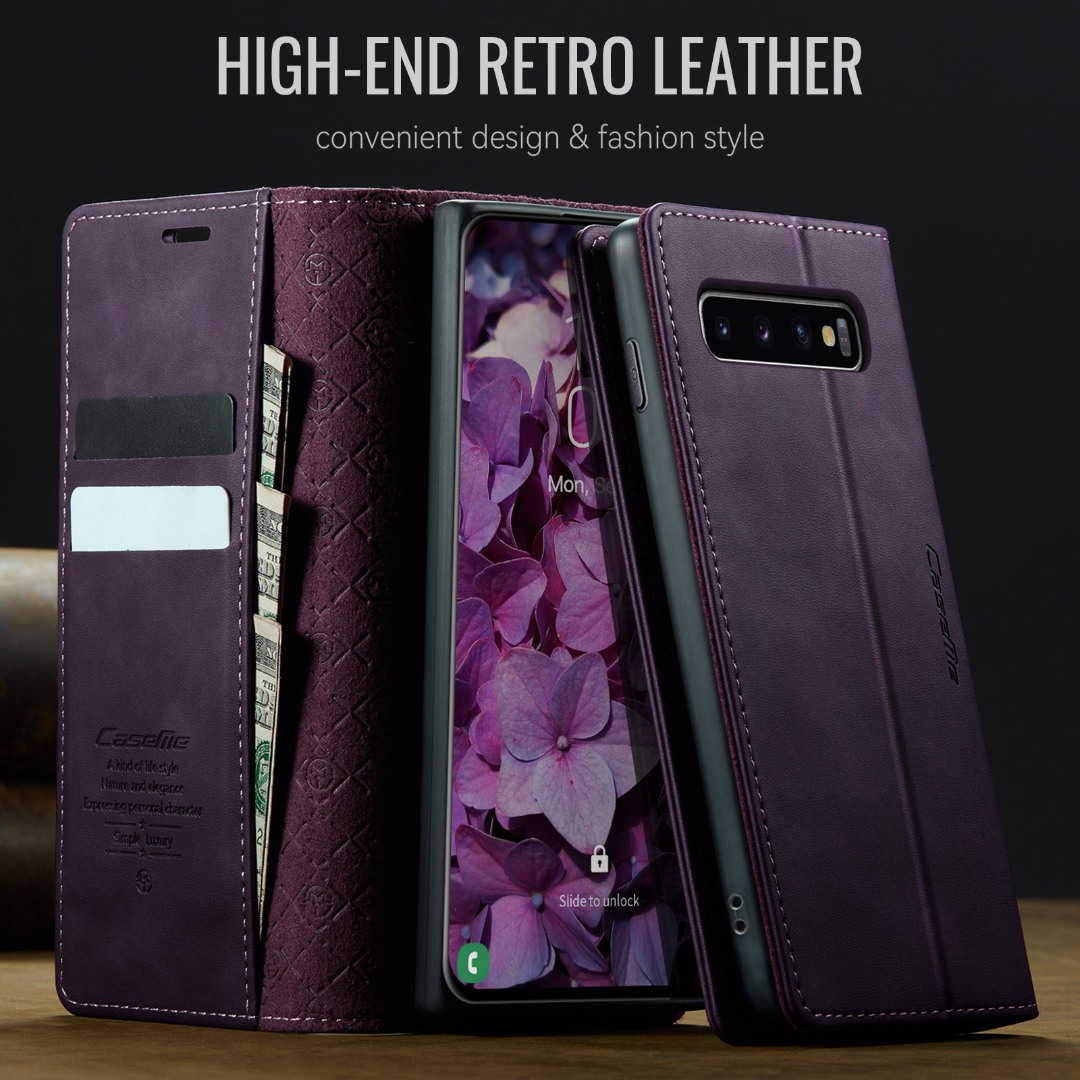 Husa pentru Samsung Galaxy S10 Plus - Slim tip portofel, cu stand si inchidere magnetica – textura neteda, aderenta sigura, usor de curatat, design curat si minimalist, CaseMe, Violet regal