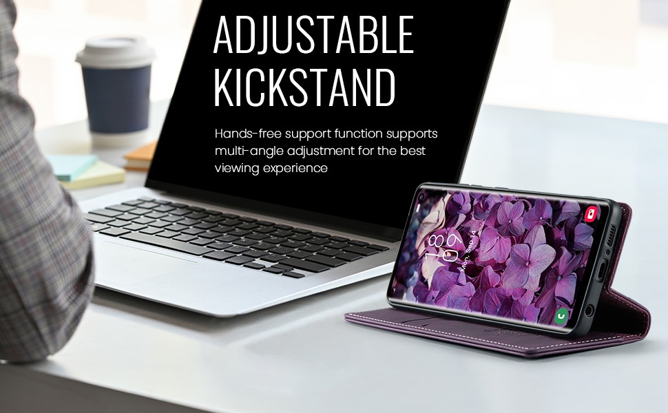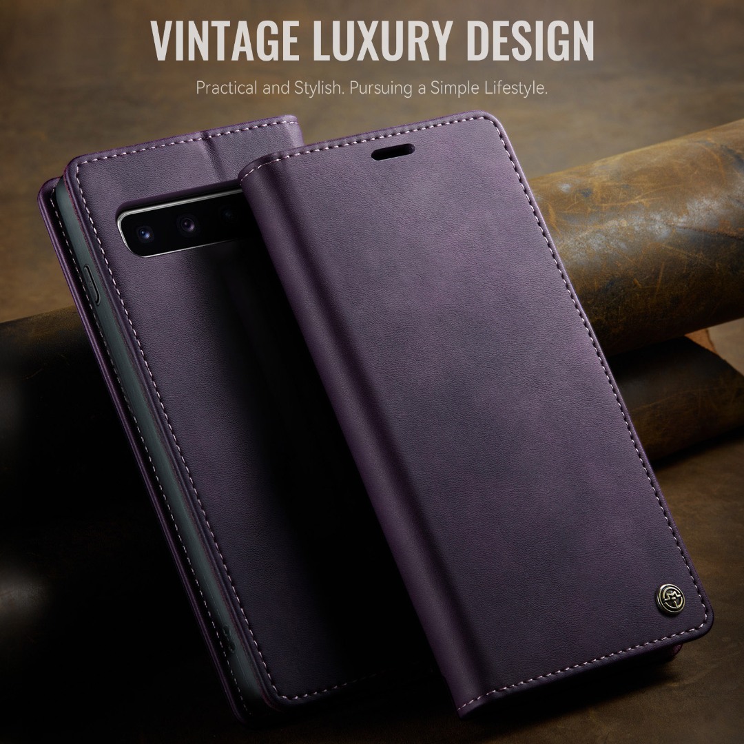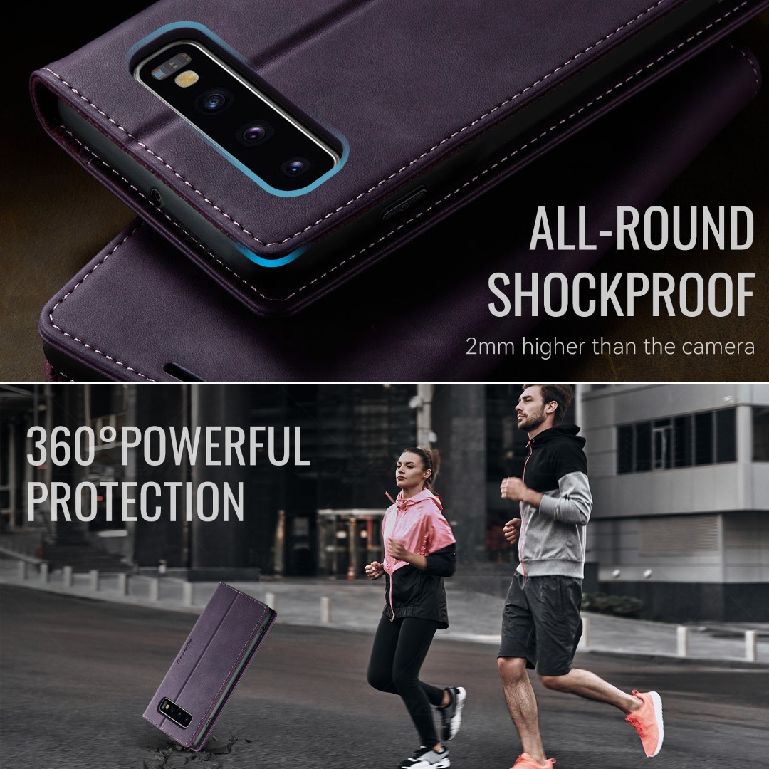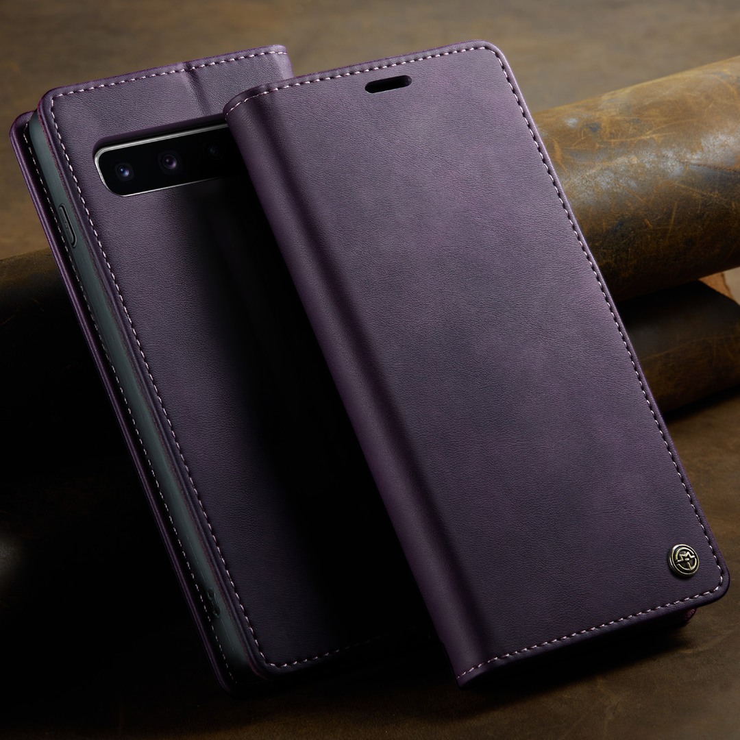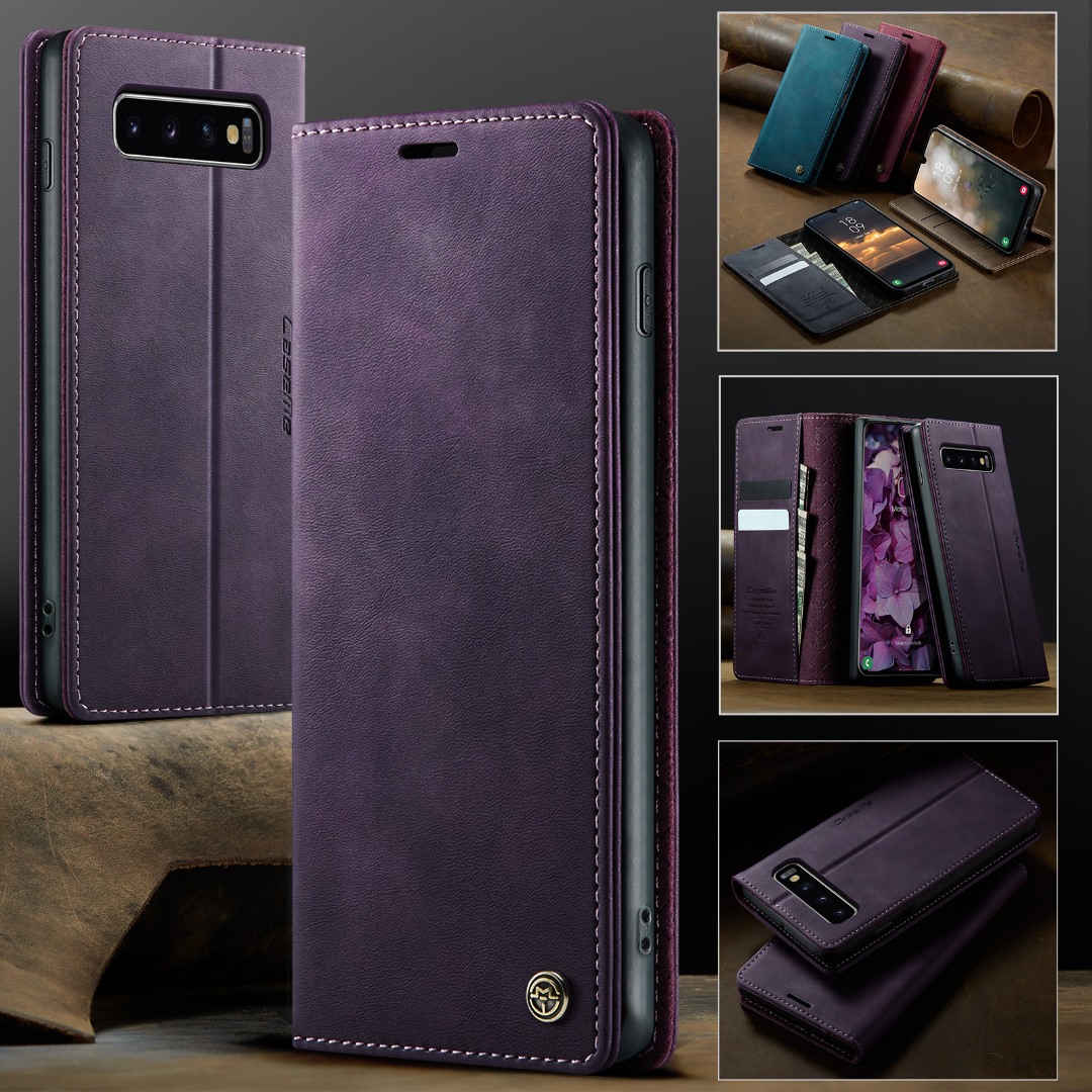 Husa pentru Samsung Galaxy S10 Plus - Slim tip portofel, cu stand si inchidere magnetica – textura neteda, aderenta sigura, usor de curatat, design curat si minimalist, CaseMe, Violet regal