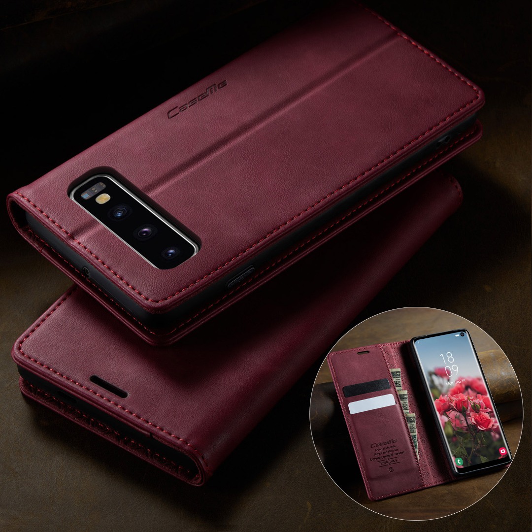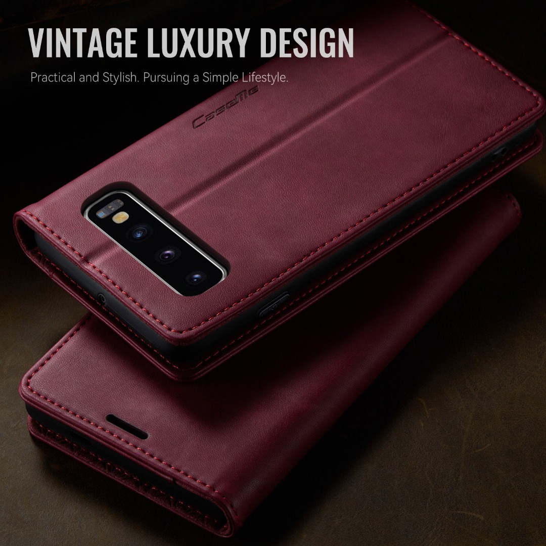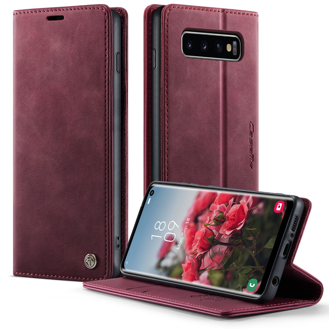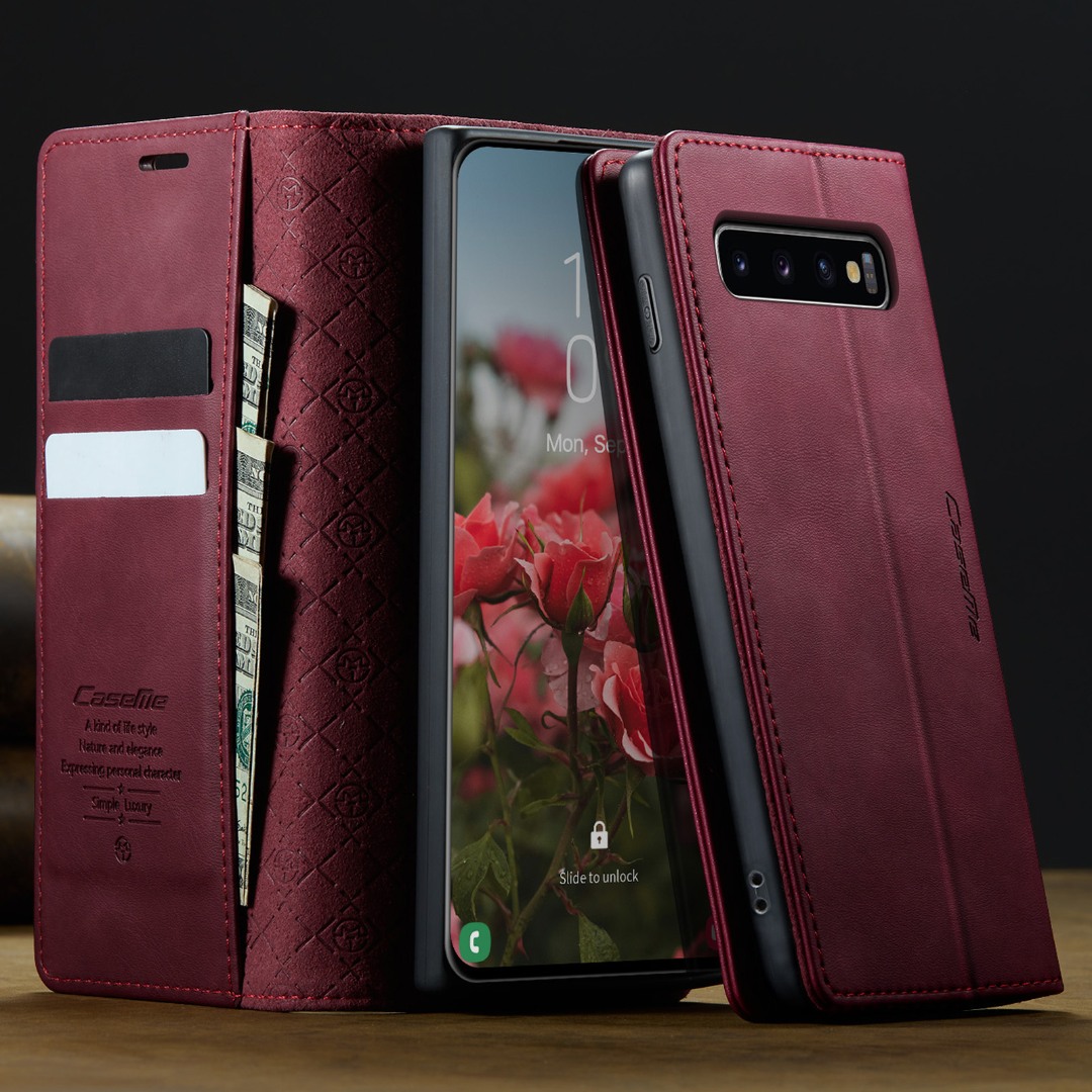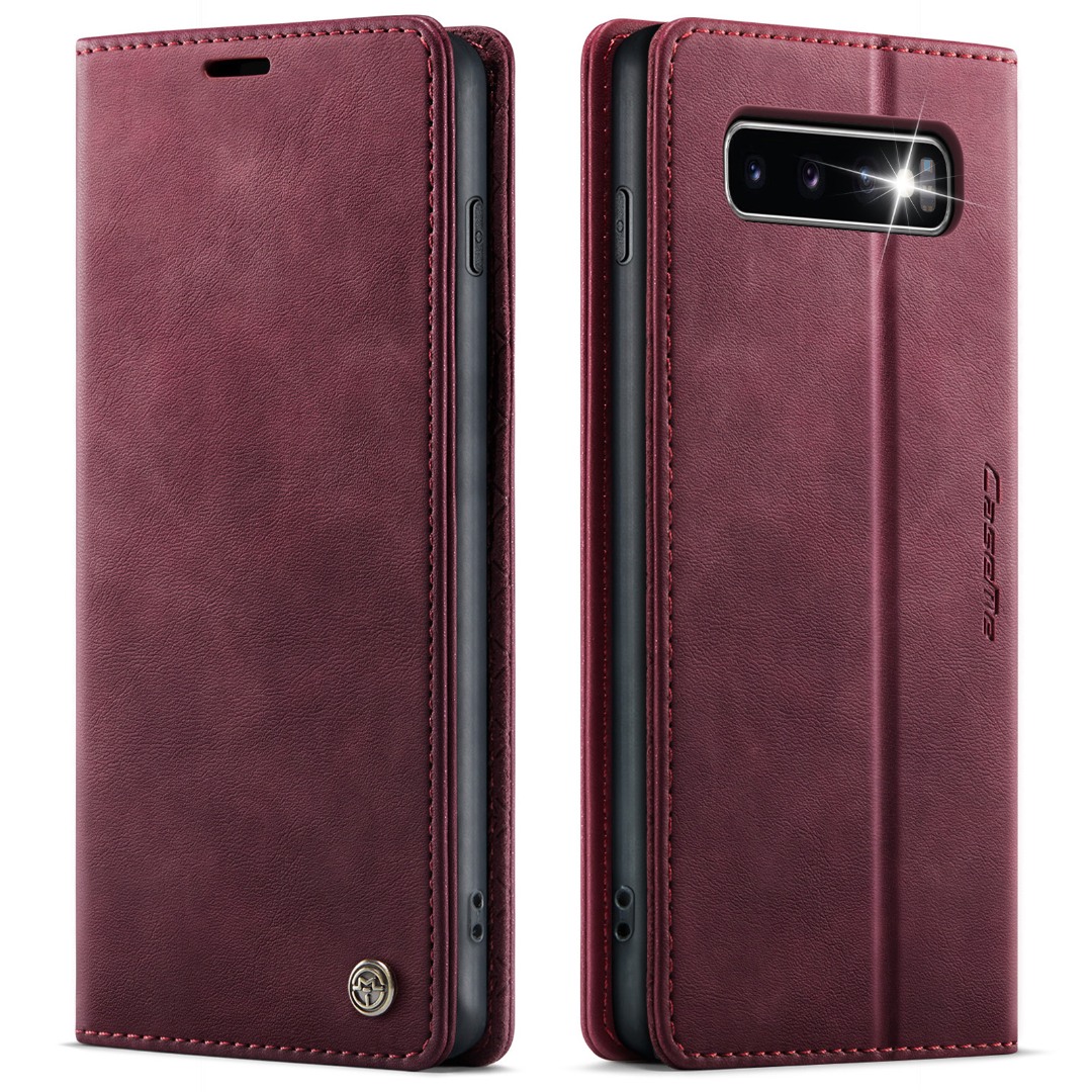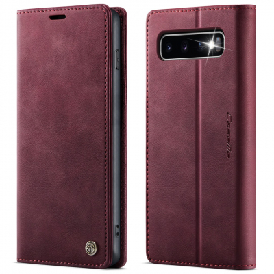 Husa pentru Samsung Galaxy S10 - Slim tip portofel, cu stand si inchidere magnetica – textura neteda, aderenta sigura, usor de curatat, design curat si minimalist, CaseMe, Rosu burgundy