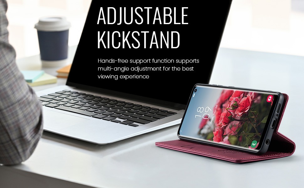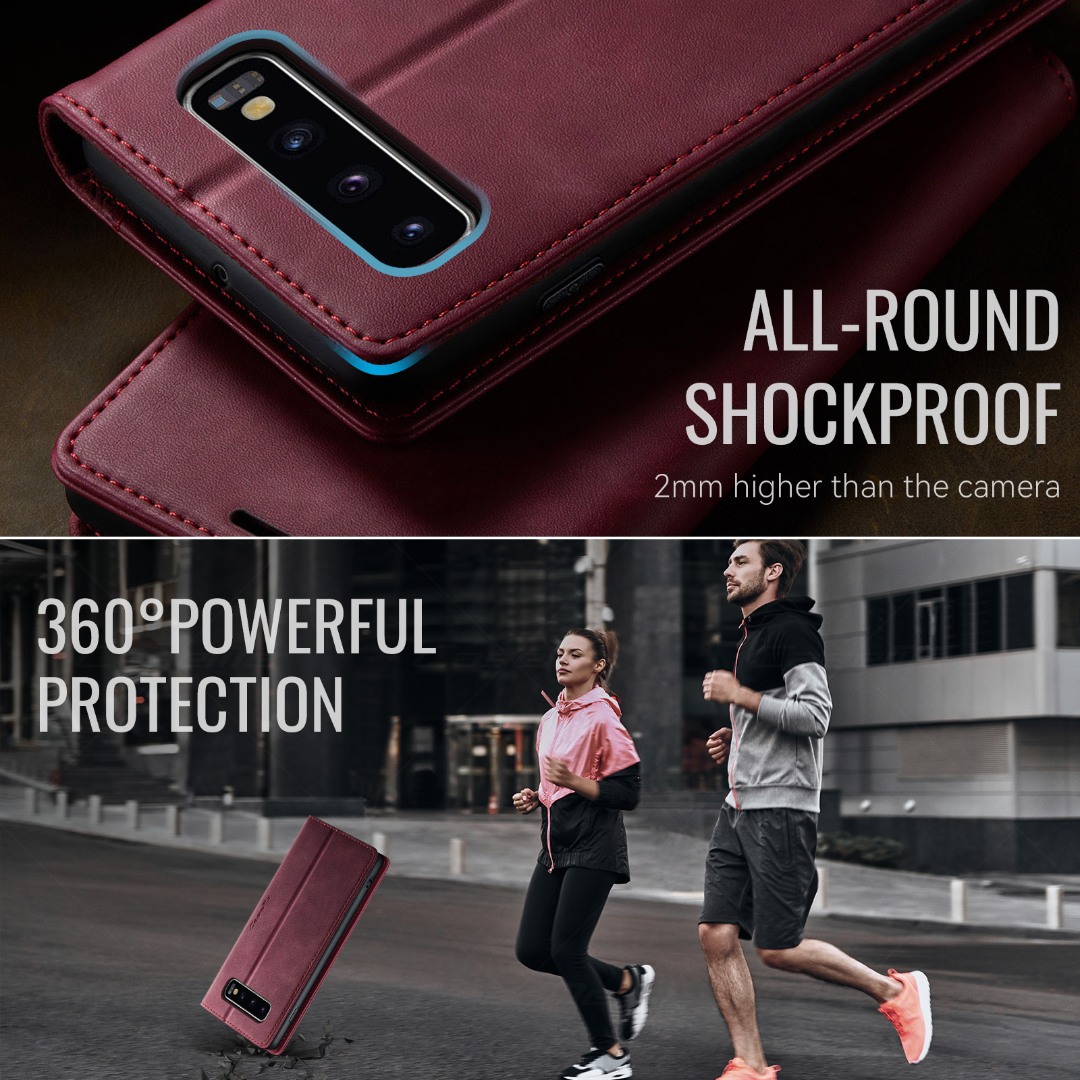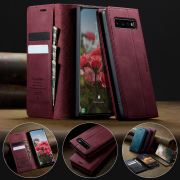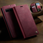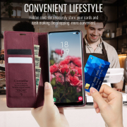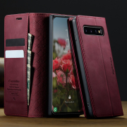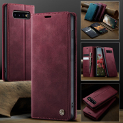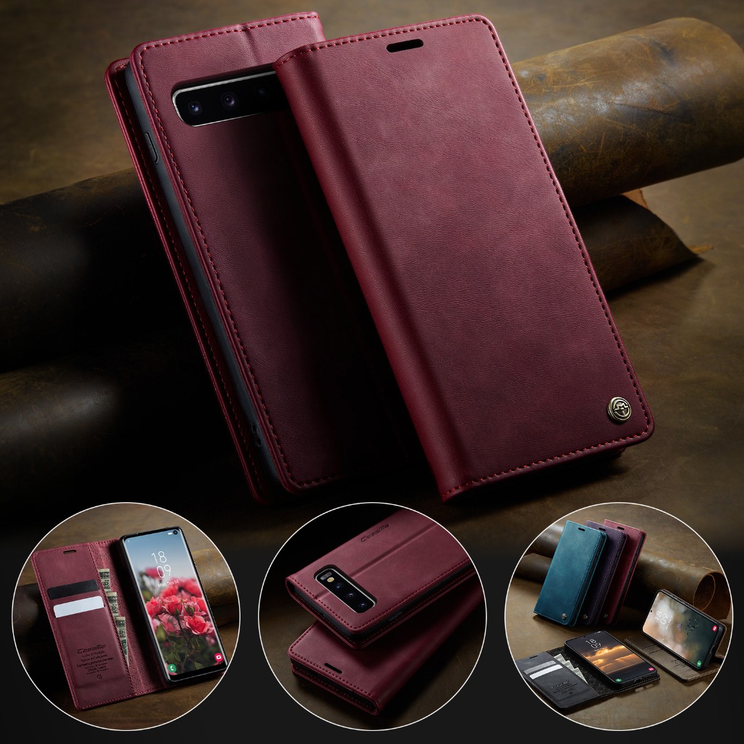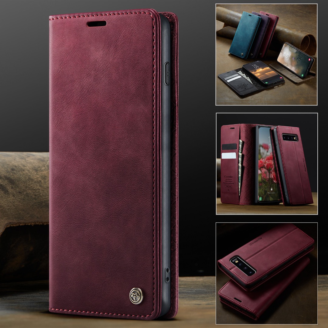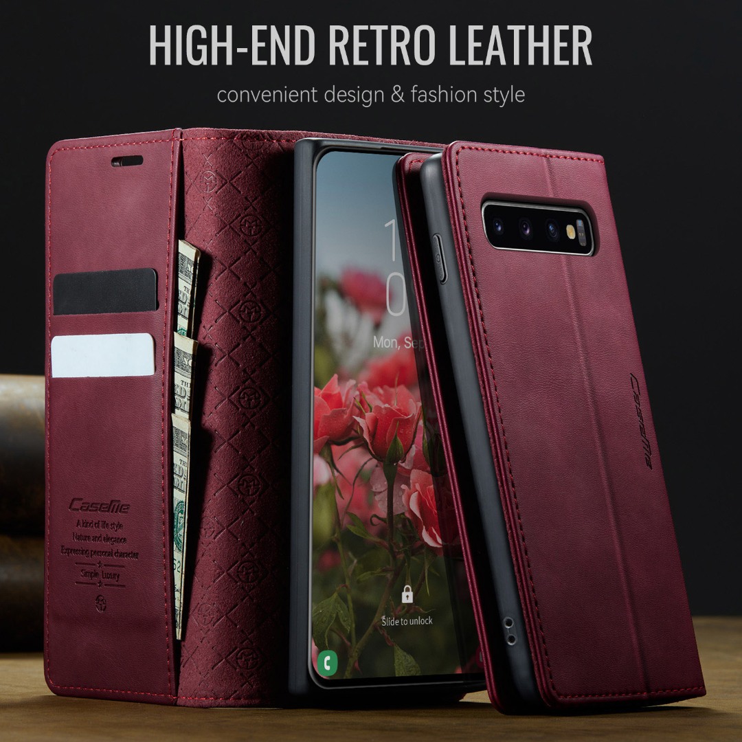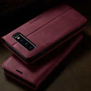 Husa pentru Samsung Galaxy S10 - Slim tip portofel, cu stand si inchidere magnetica – textura neteda, aderenta sigura, usor de curatat, design curat si minimalist, CaseMe, Rosu burgundy