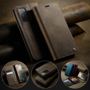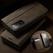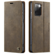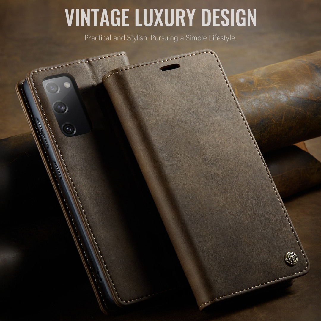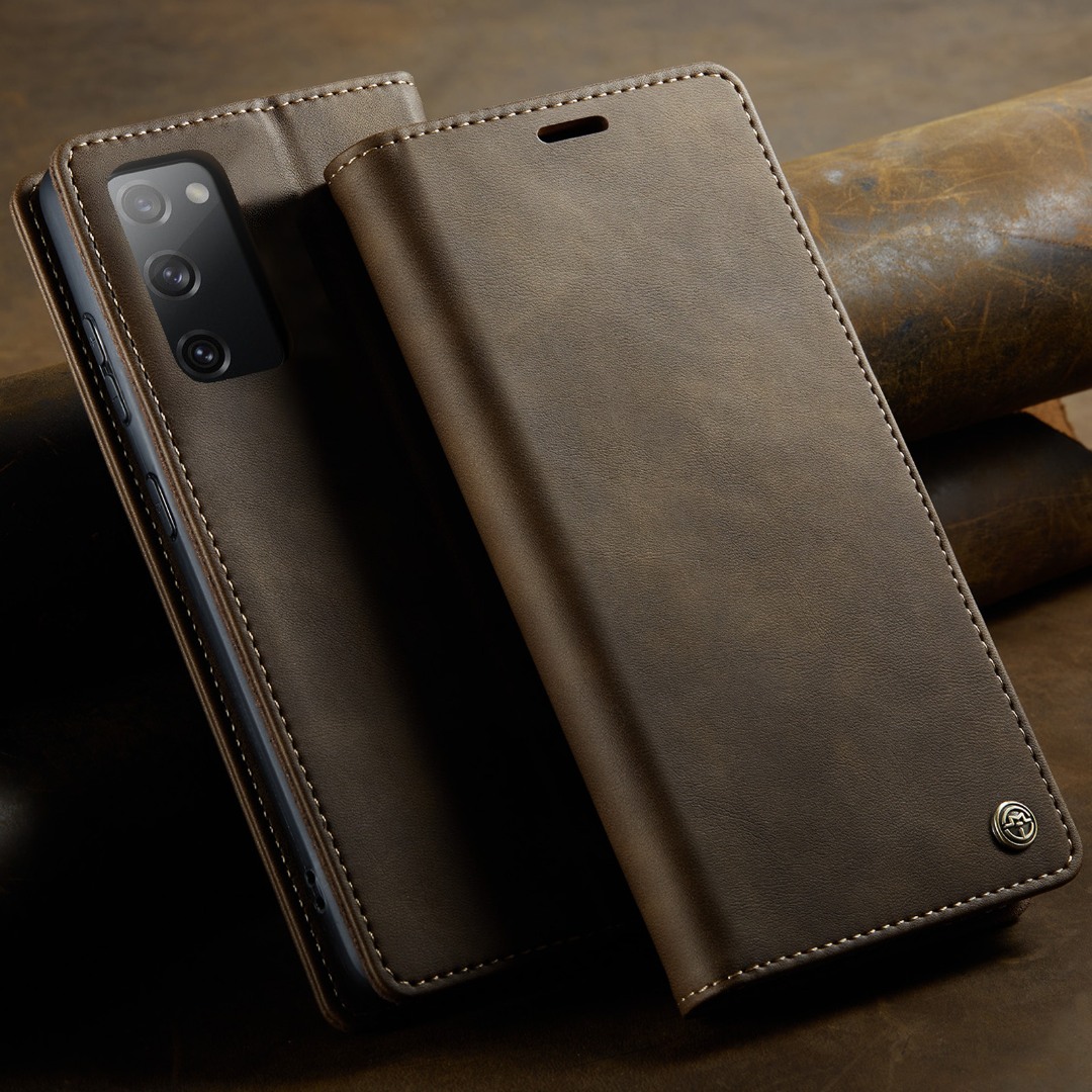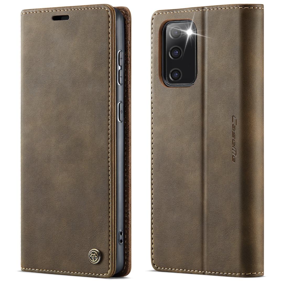 Husa pentru Samsung Galaxy S20 FE - Slim tip portofel, cu stand si inchidere magnetica – textura neteda, aderenta sigura, usor de curatat, design curat si minimalist, CaseMe, Brun clasic