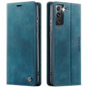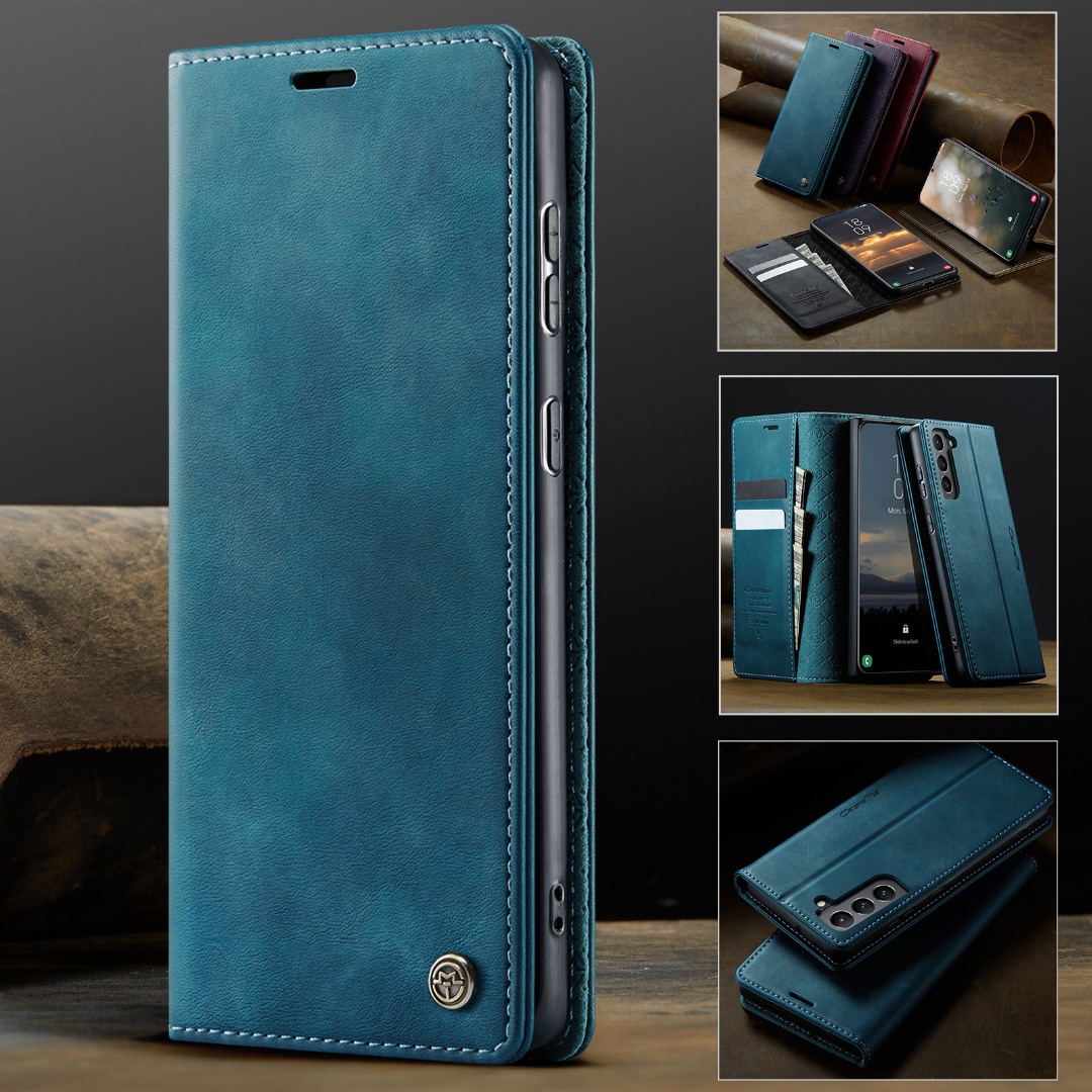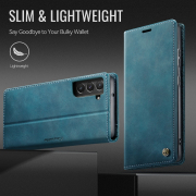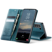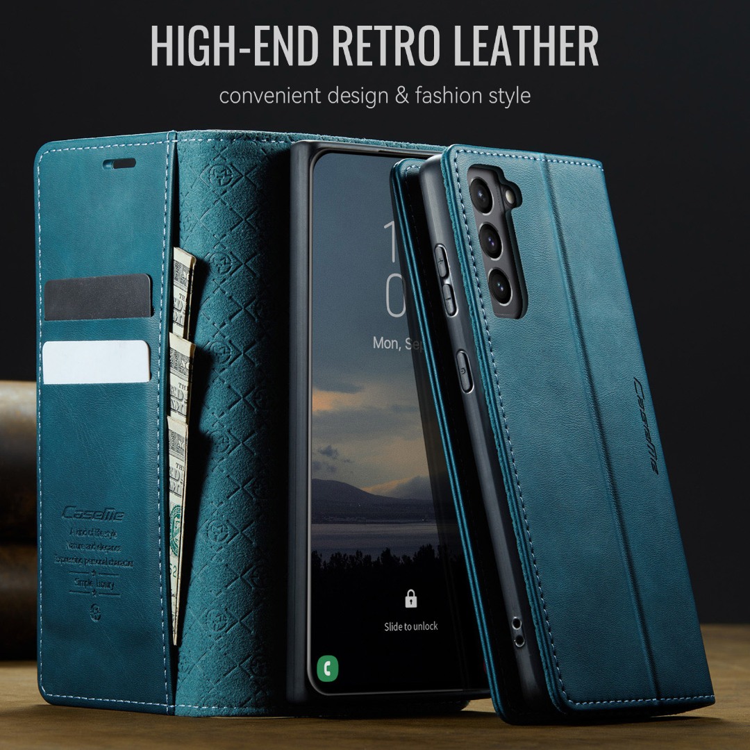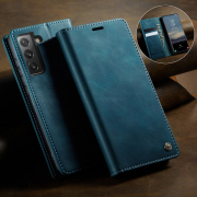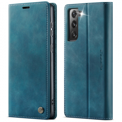 Husa pentru Samsung Galaxy S21 FE - Slim tip portofel, cu stand si inchidere magnetica – textura neteda, aderenta sigura, usor de curatat, design curat si minimalist, CaseMe, Teal - Albastru verzui