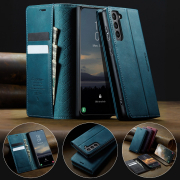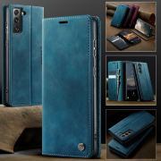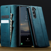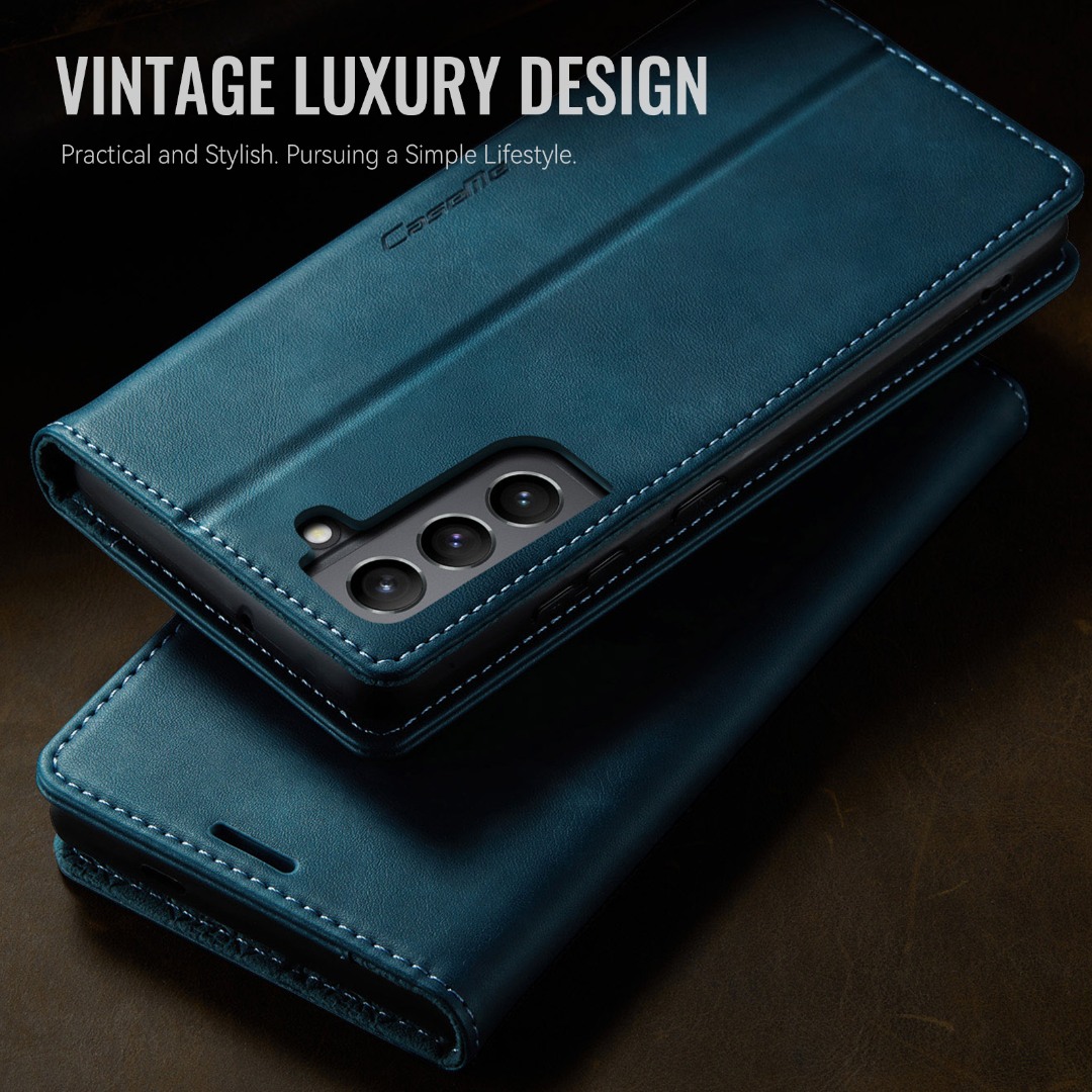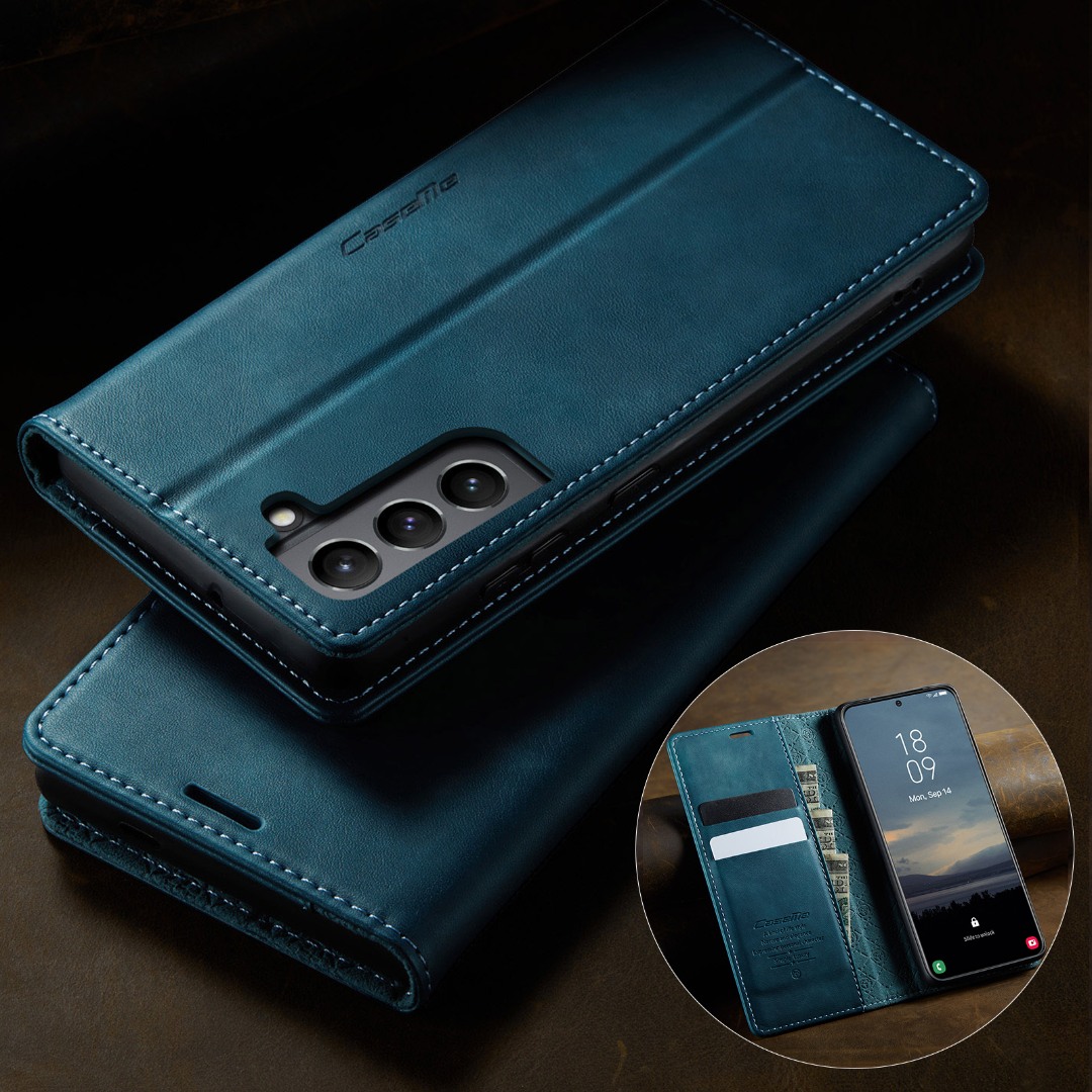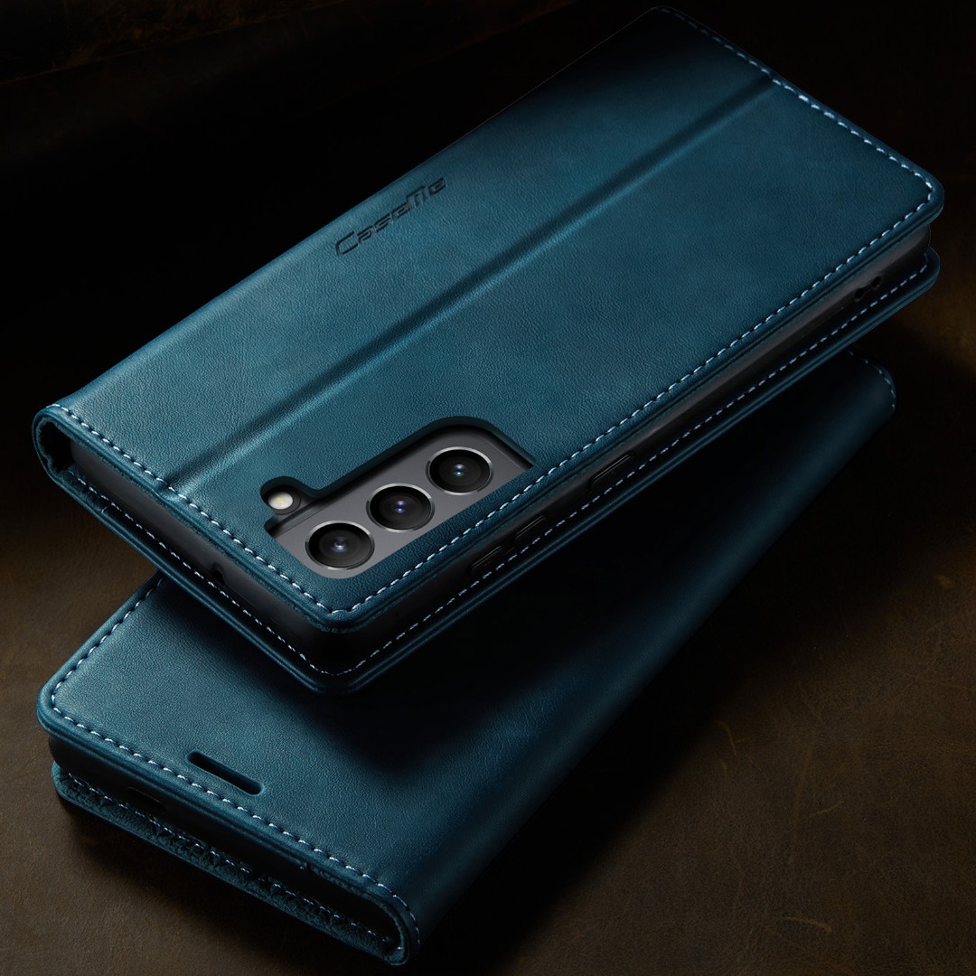 Husa pentru Samsung Galaxy S21 FE - Slim tip portofel, cu stand si inchidere magnetica – textura neteda, aderenta sigura, usor de curatat, design curat si minimalist, CaseMe, Teal - Albastru verzui