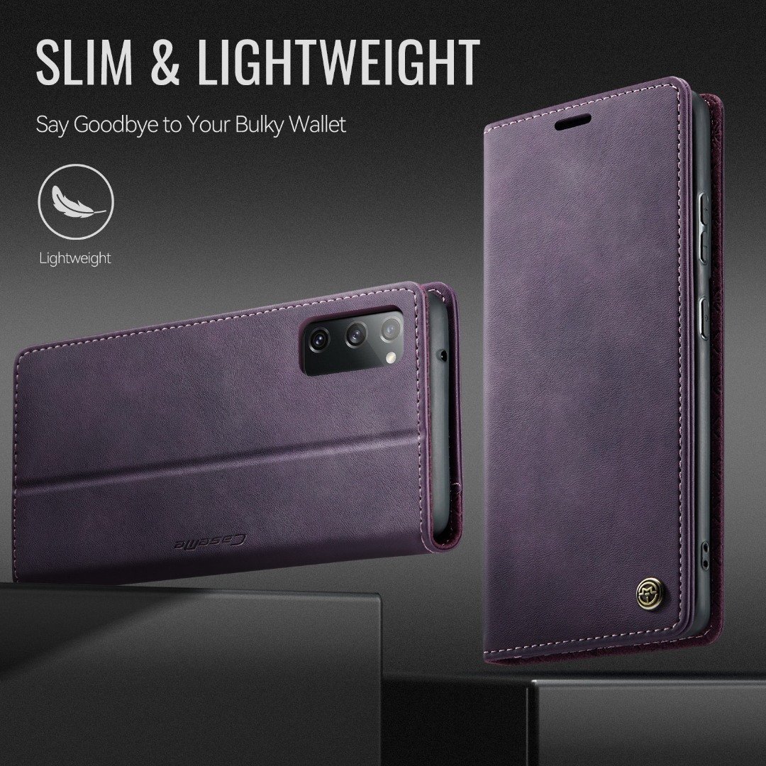 Husa pentru Samsung Galaxy S21 FE - Slim tip portofel, cu stand si inchidere magnetica – textura neteda, aderenta sigura, usor de curatat, design curat si minimalist, CaseMe, Violet regal
