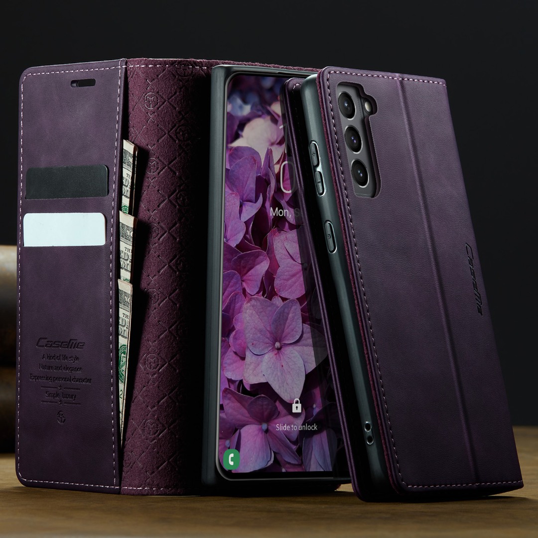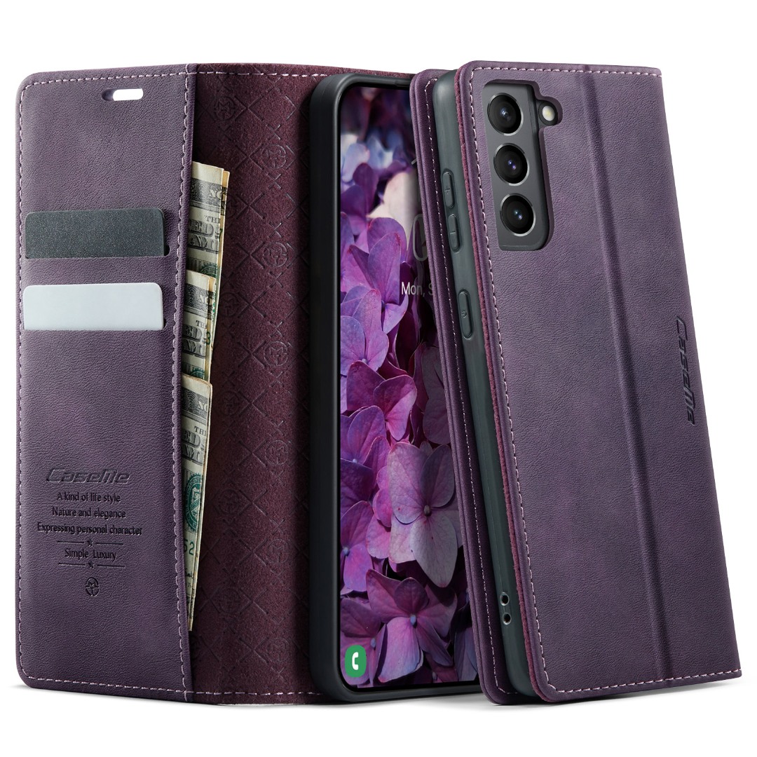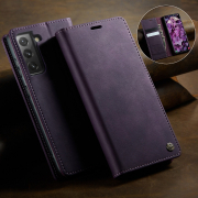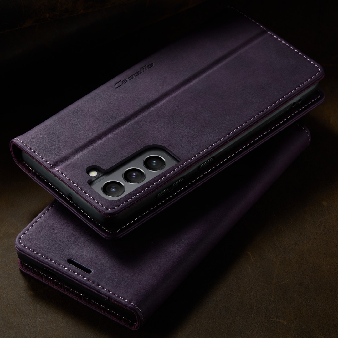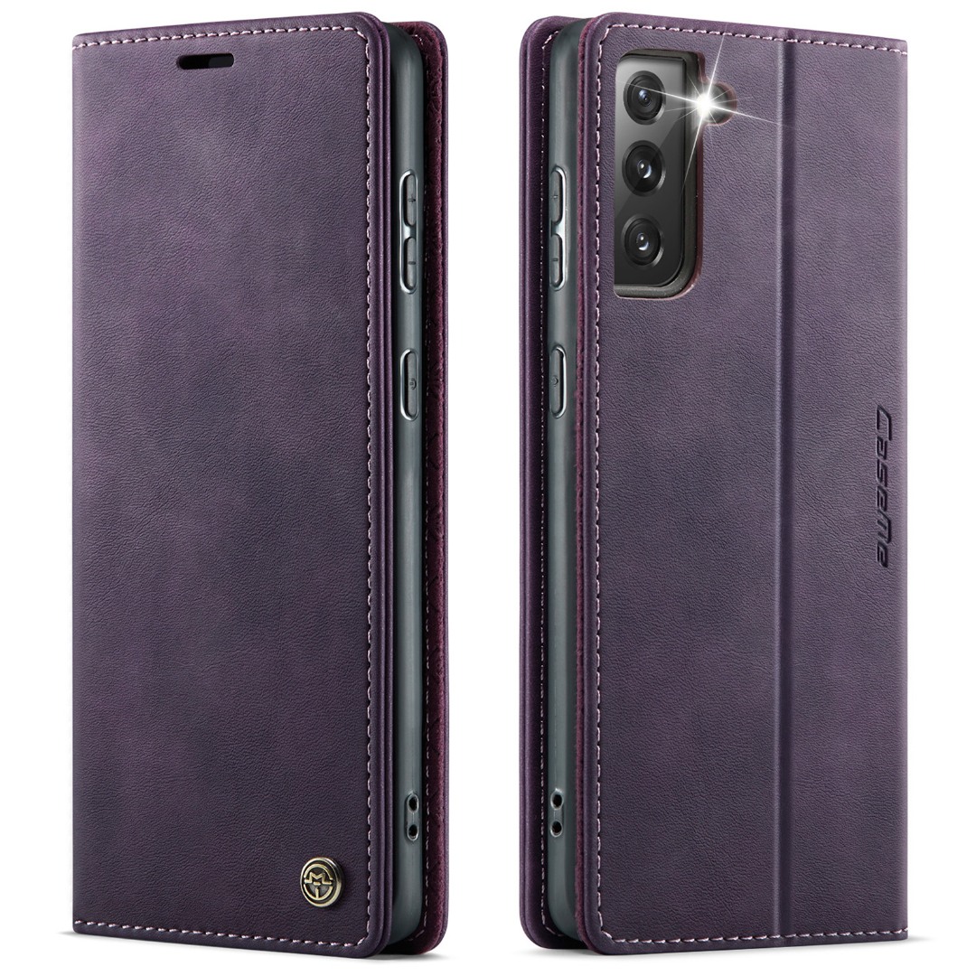 Husa pentru Samsung Galaxy S21 - Slim tip portofel, cu stand si inchidere magnetica – textura neteda, aderenta sigura, usor de curatat, design curat si minimalist, CaseMe, Violet regal