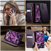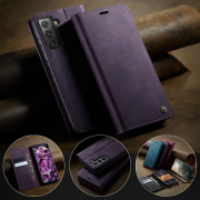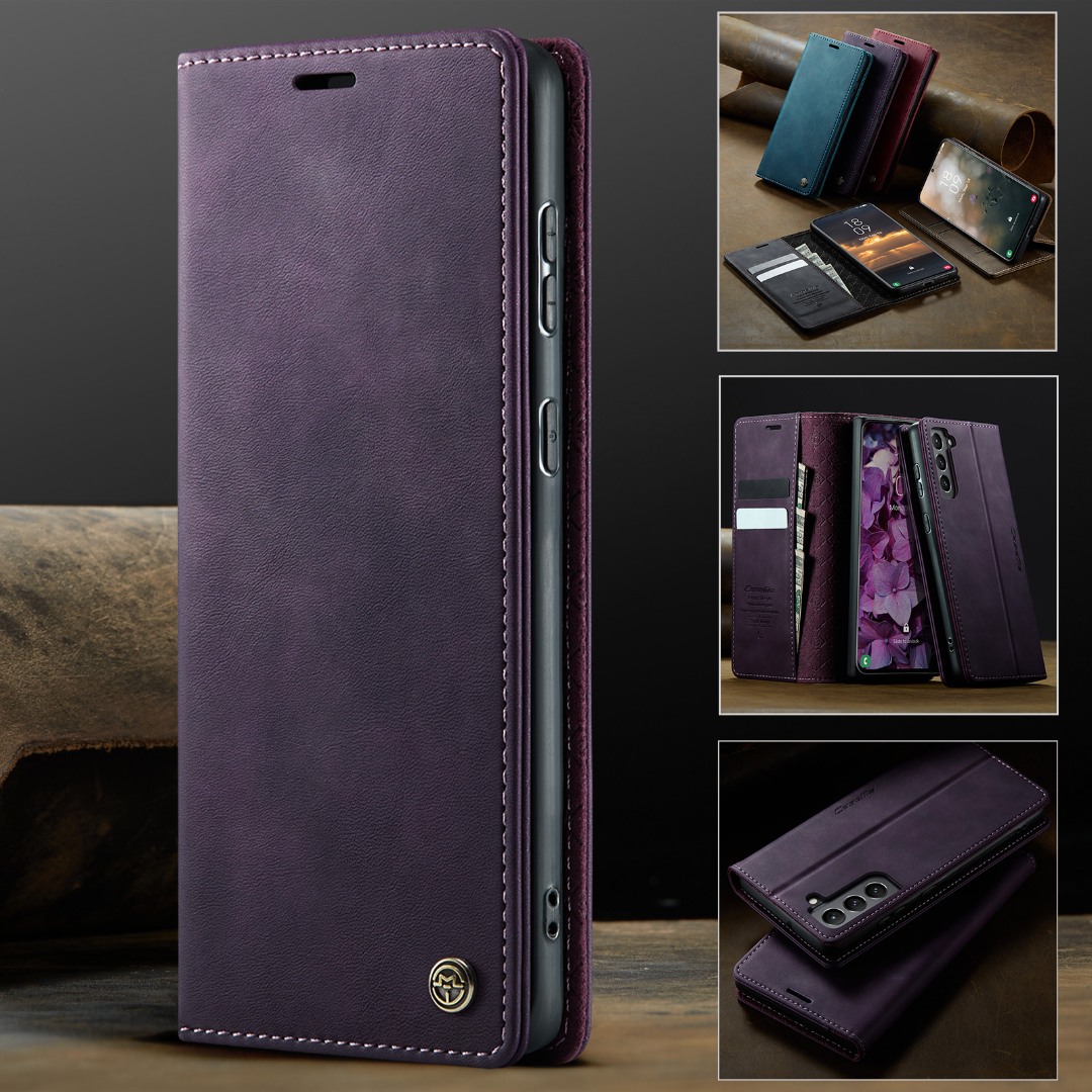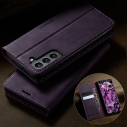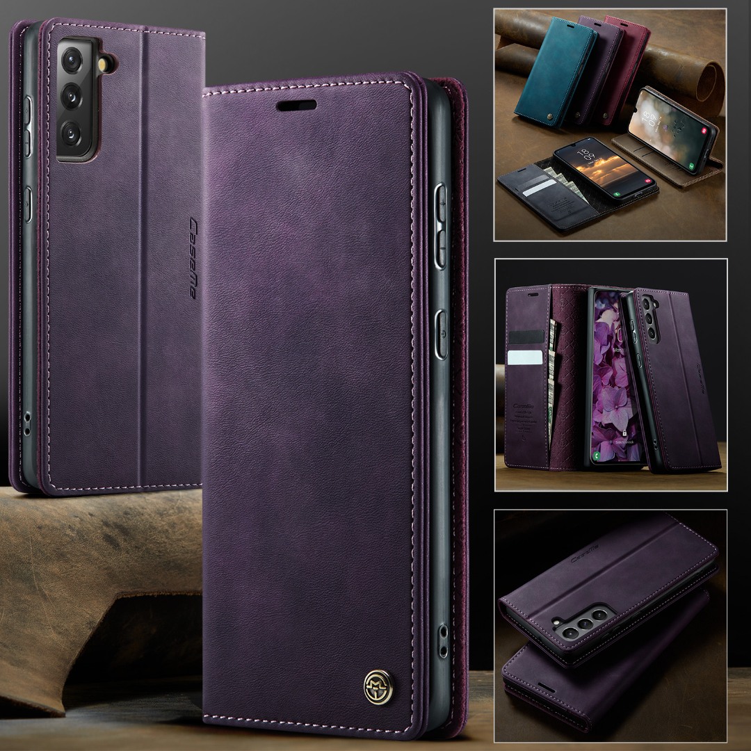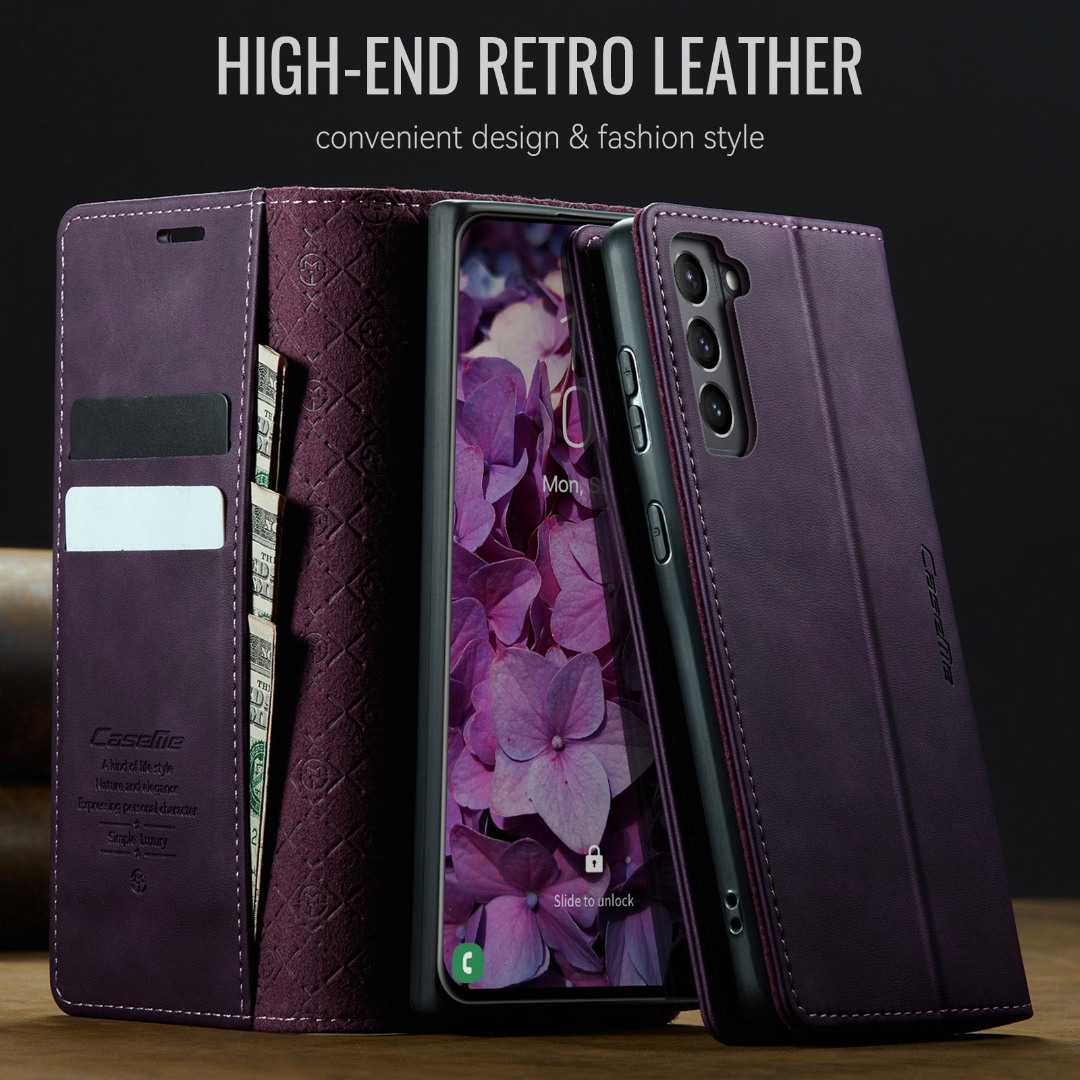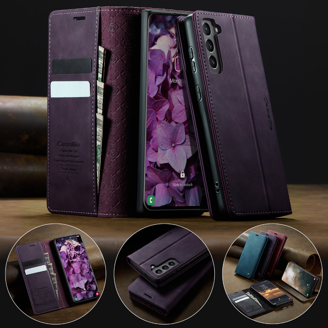 Husa pentru Samsung Galaxy S21 - Slim tip portofel, cu stand si inchidere magnetica – textura neteda, aderenta sigura, usor de curatat, design curat si minimalist, CaseMe, Violet regal