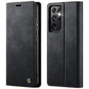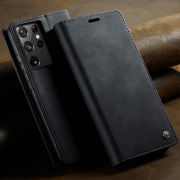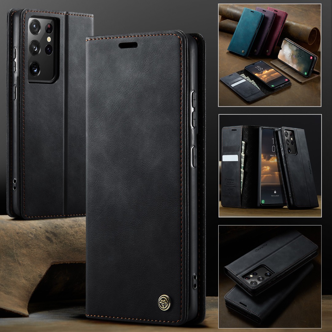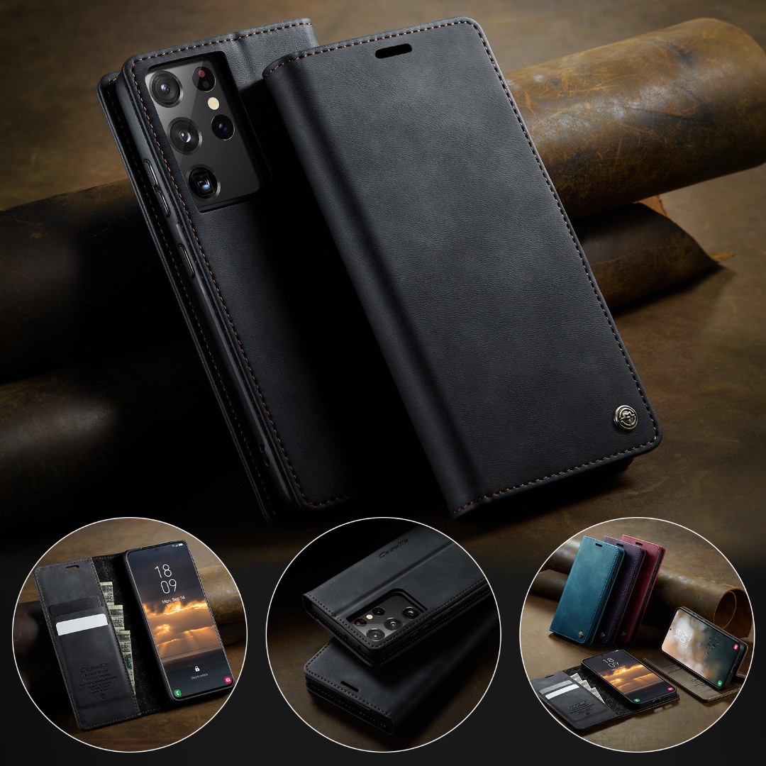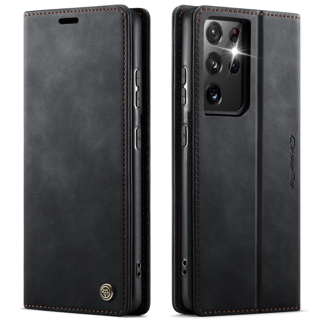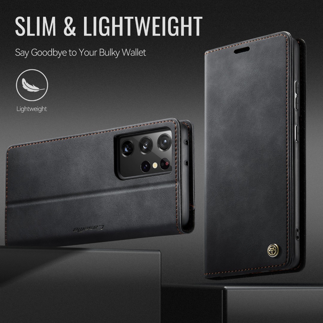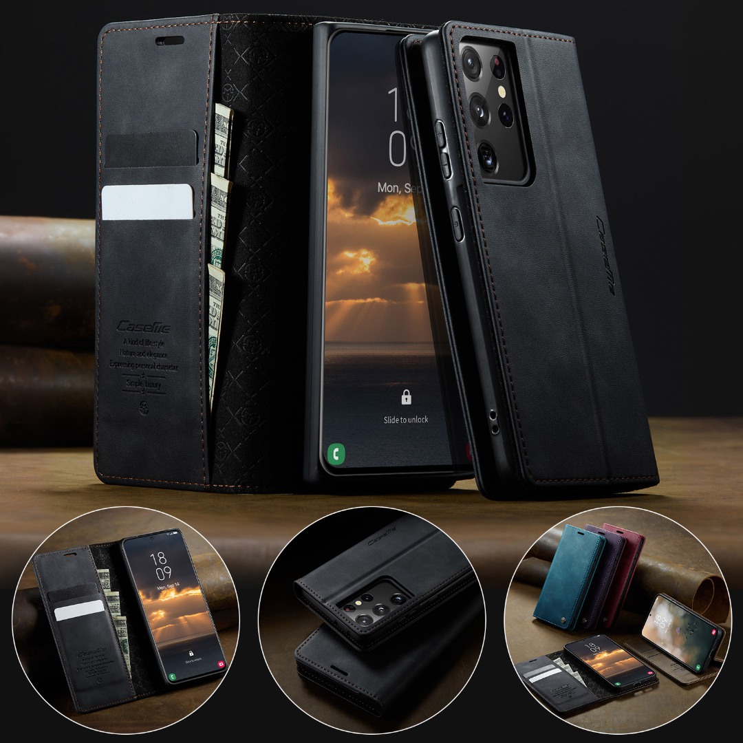 Husa pentru Samsung Galaxy S21 Ultra - Slim tip portofel, cu stand si inchidere magnetica – textura neteda, aderenta sigura, usor de curatat, design curat si minimalist, CaseMe, Negru carbon