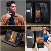 Include 2 sloturi pentru carduri si un compartiment separat pentru bancnote – ideal pentru cei care vor sa renunte la portofelul clasic.