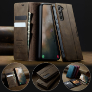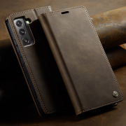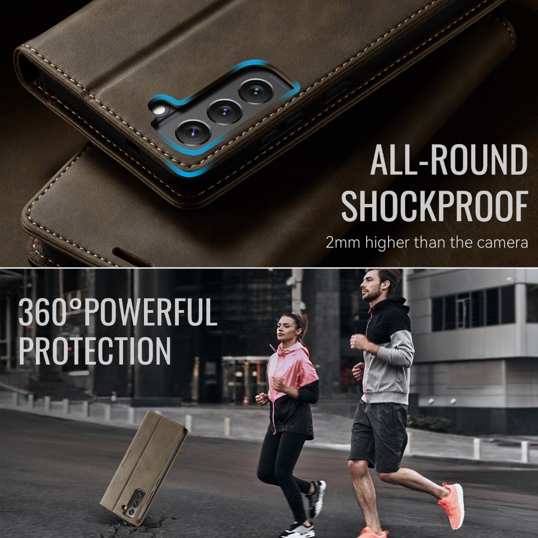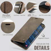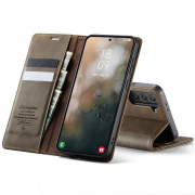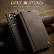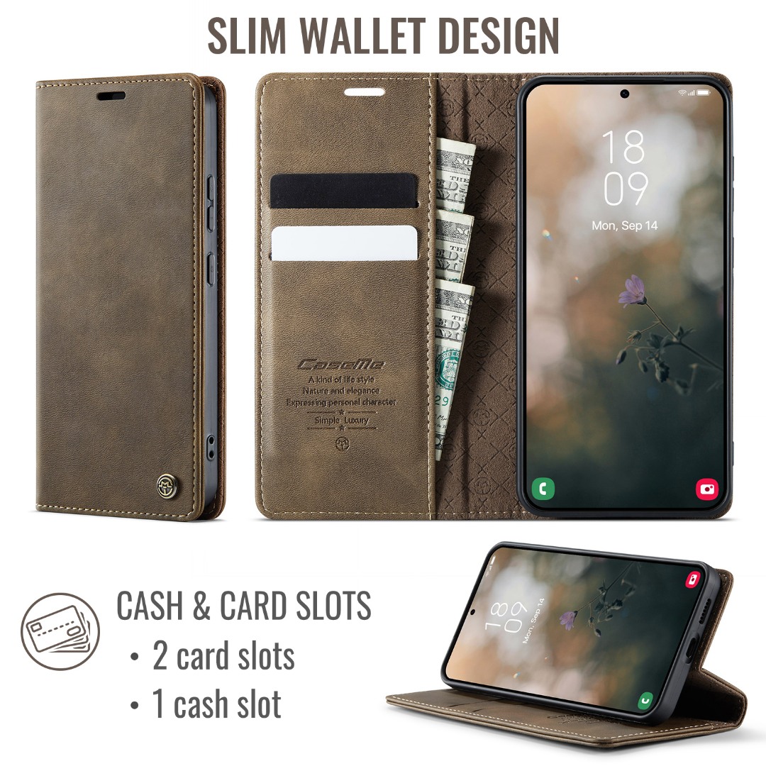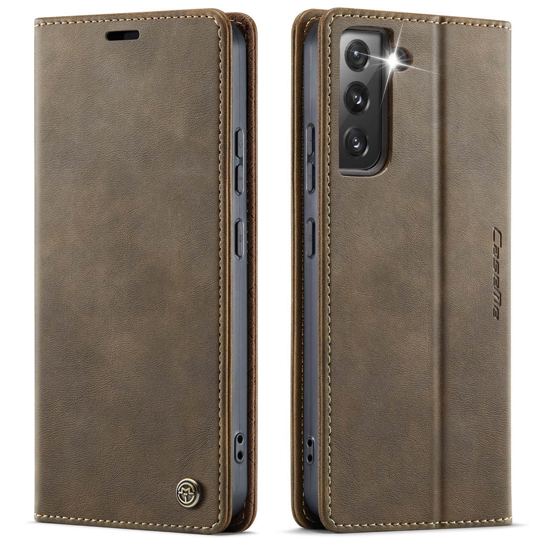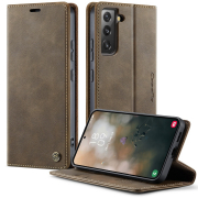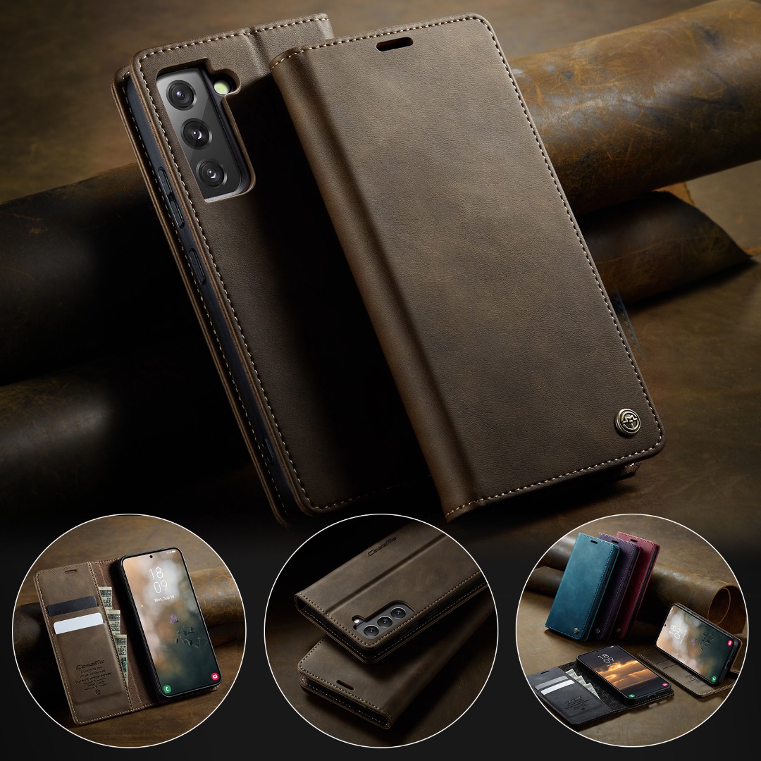 Husa pentru Samsung Galaxy S22 - Slim tip portofel, cu stand si inchidere magnetica – textura neteda, aderenta sigura, usor de curatat, design curat si minimalist, CaseMe, Brun clasic