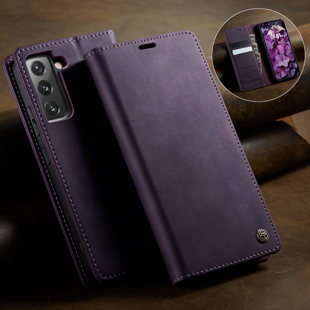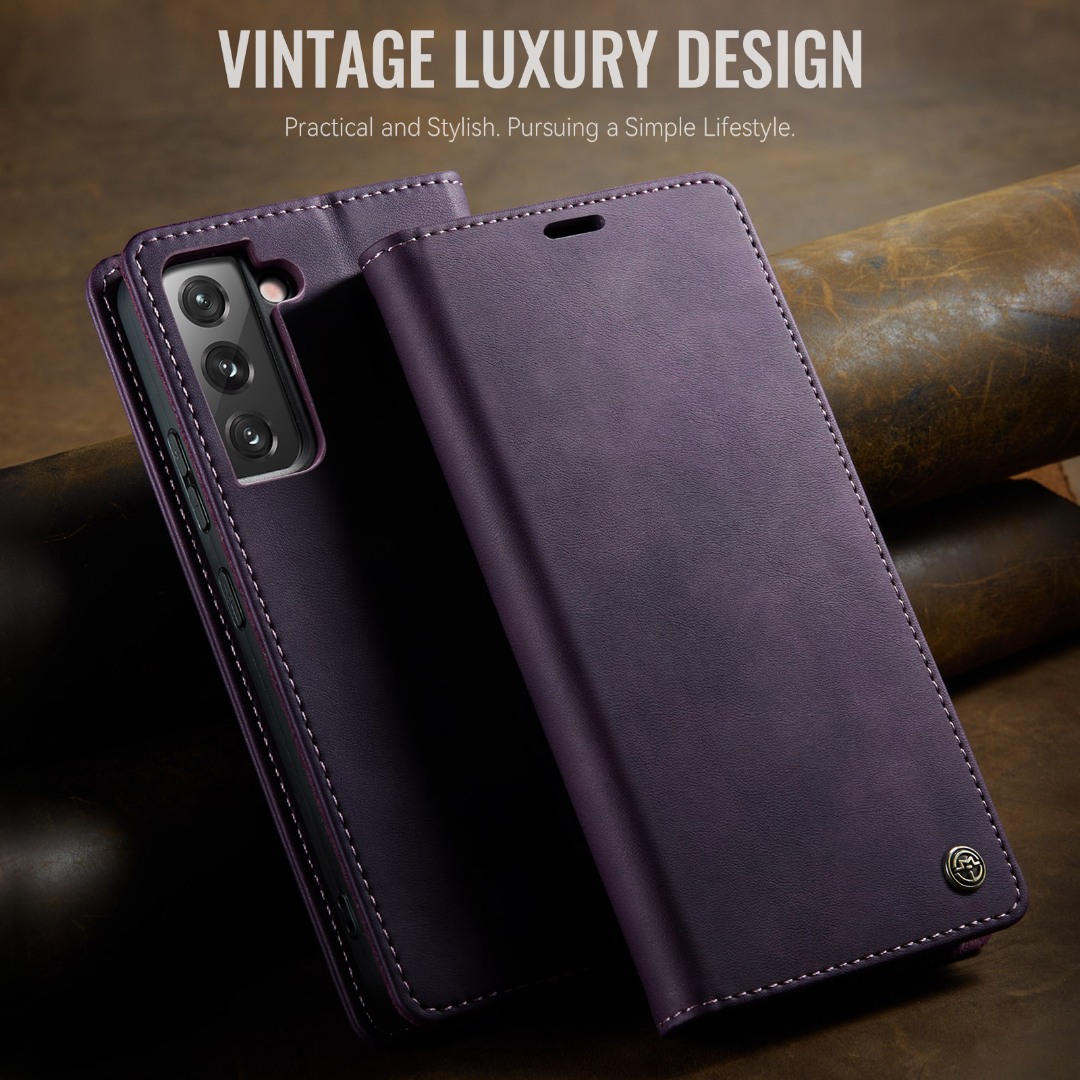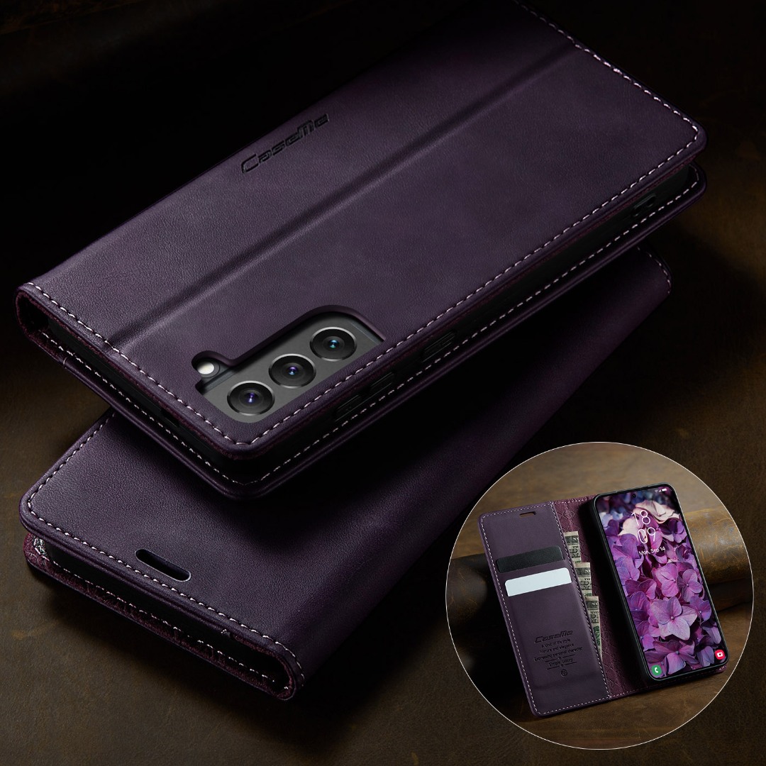 Husa pentru Samsung Galaxy S22 - Slim tip portofel, cu stand si inchidere magnetica – textura neteda, aderenta sigura, usor de curatat, design curat si minimalist, CaseMe, Violet regal