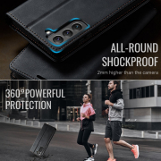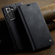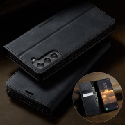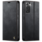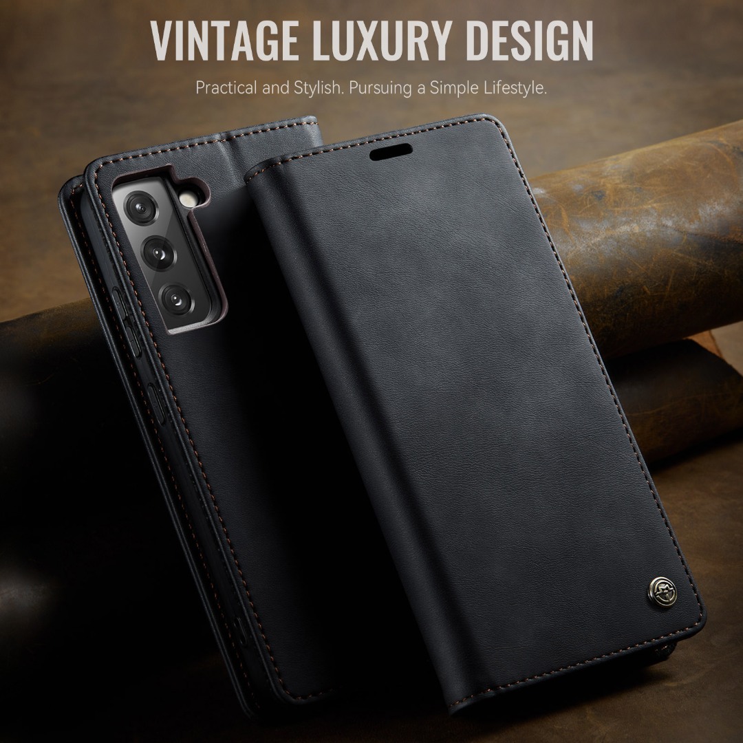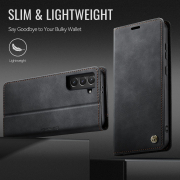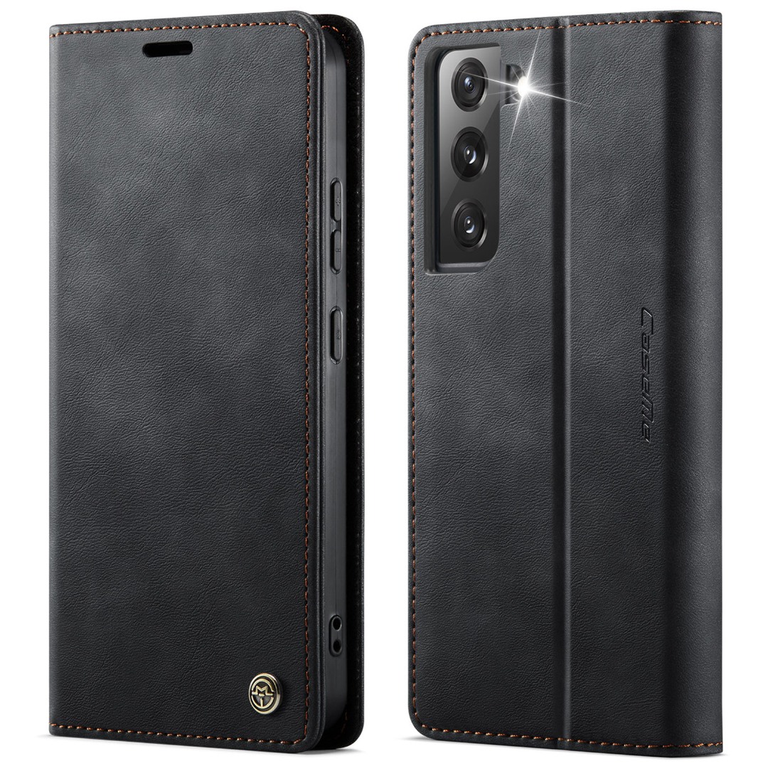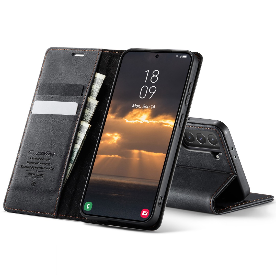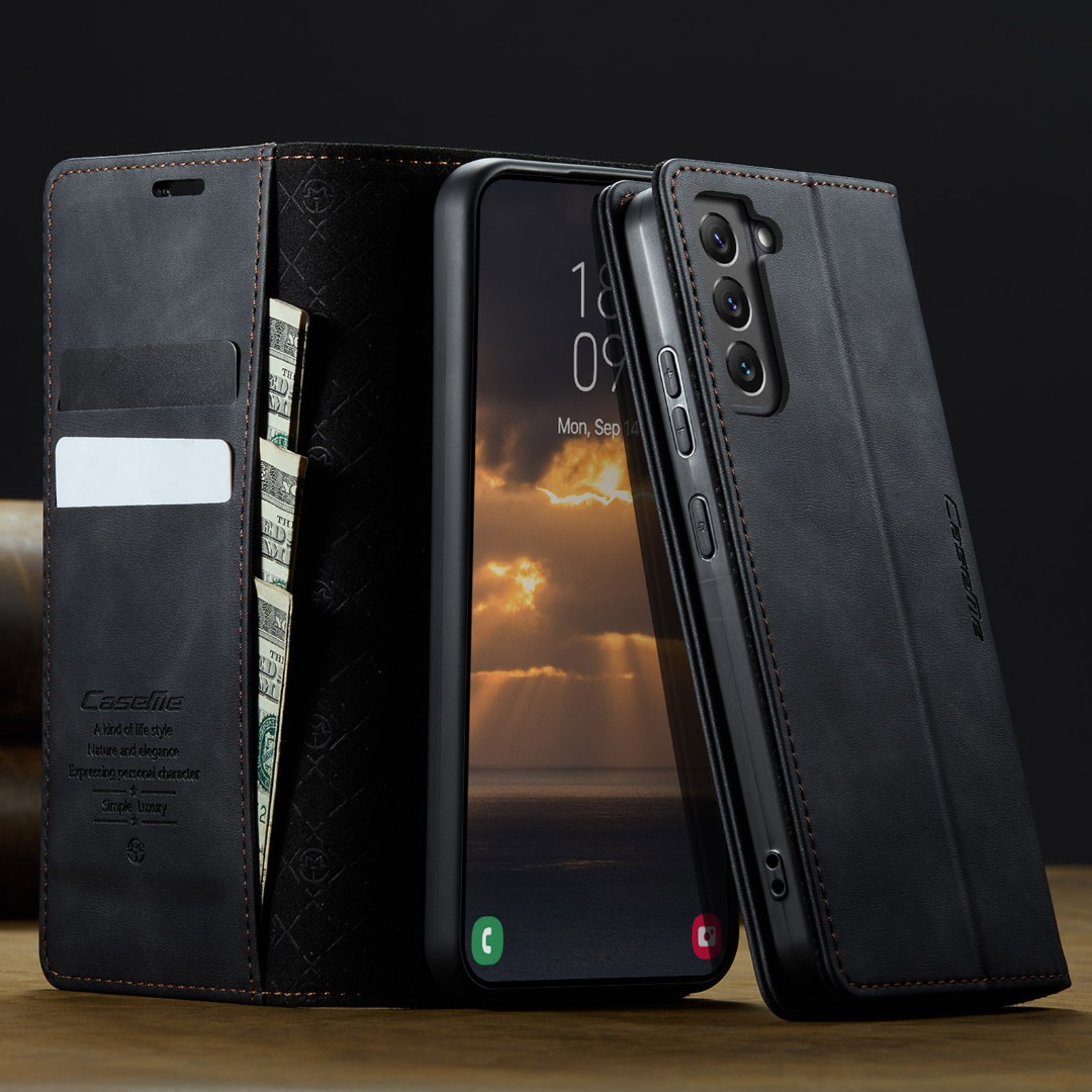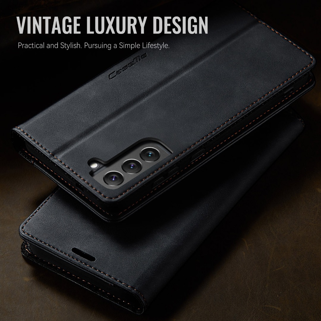 Husa pentru Samsung Galaxy S22 - Slim tip portofel, cu stand si inchidere magnetica – textura neteda, aderenta sigura, usor de curatat, design curat si minimalist, CaseMe, Negru carbon