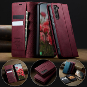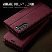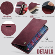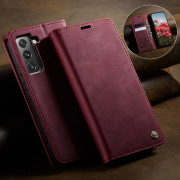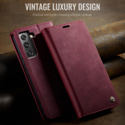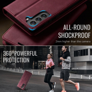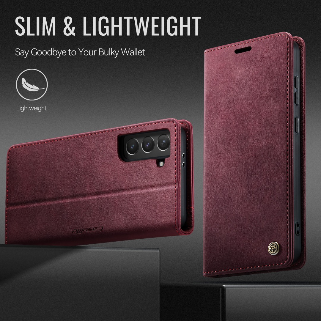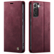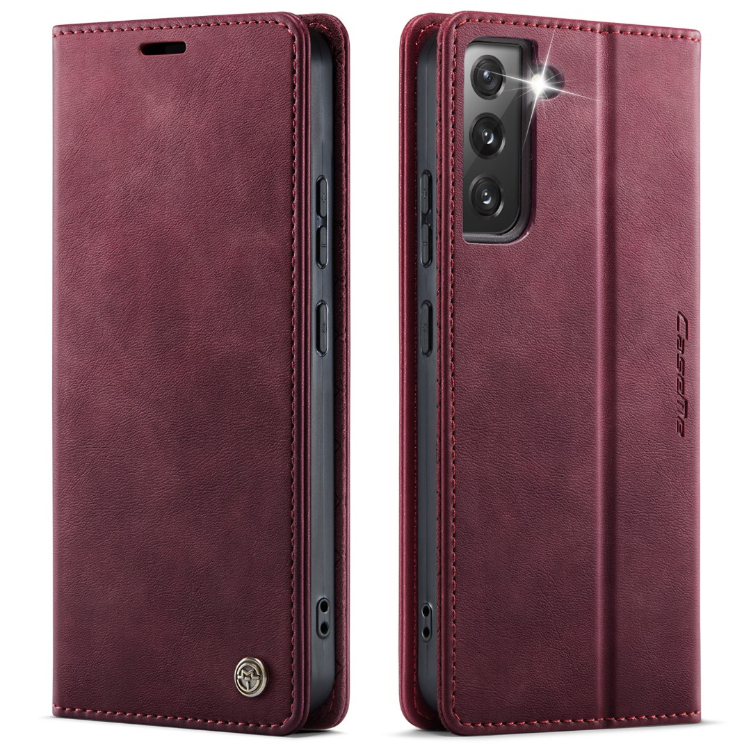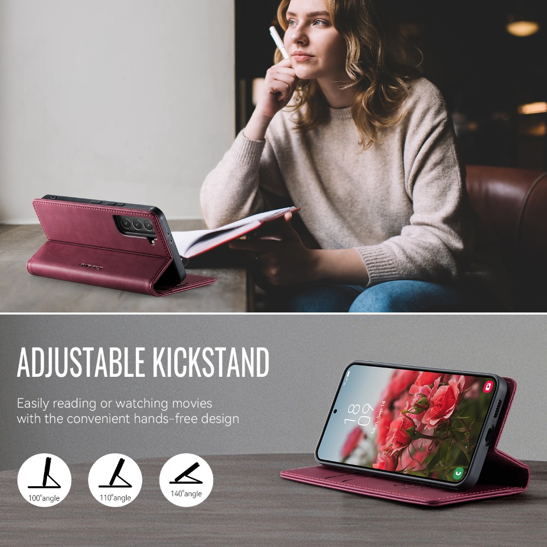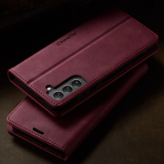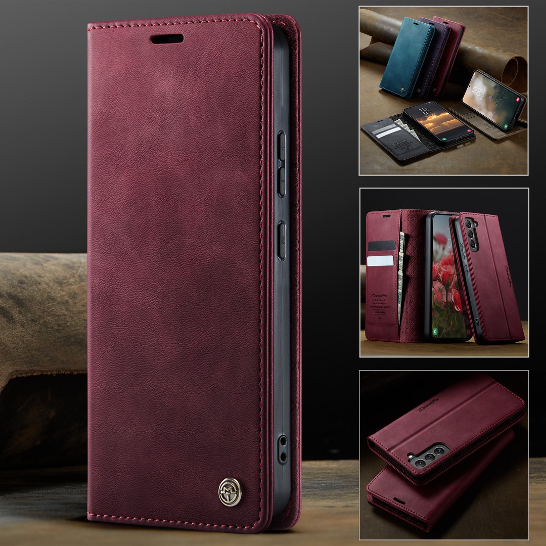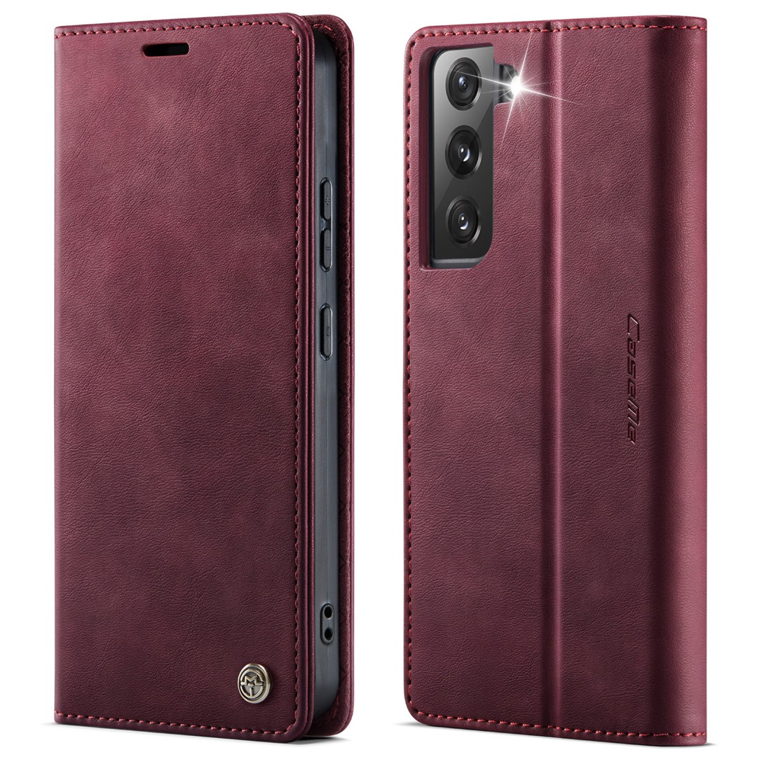 Husa pentru Samsung Galaxy S22 - Slim tip portofel, cu stand si inchidere magnetica – textura neteda, aderenta sigura, usor de curatat, design curat si minimalist, CaseMe, Rosu burgundy