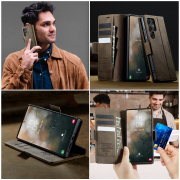 Include 2 sloturi pentru carduri si un compartiment separat pentru bancnote – ideal pentru cei care vor sa renunte la portofelul clasic.