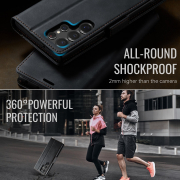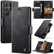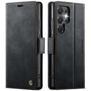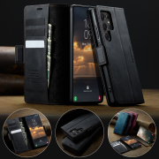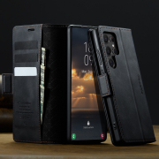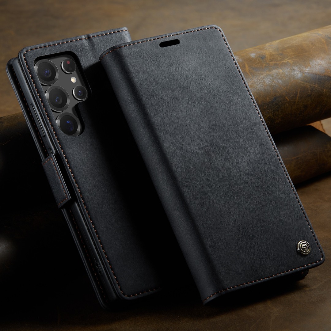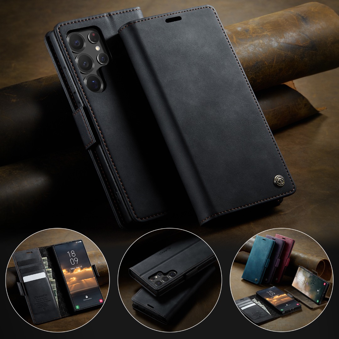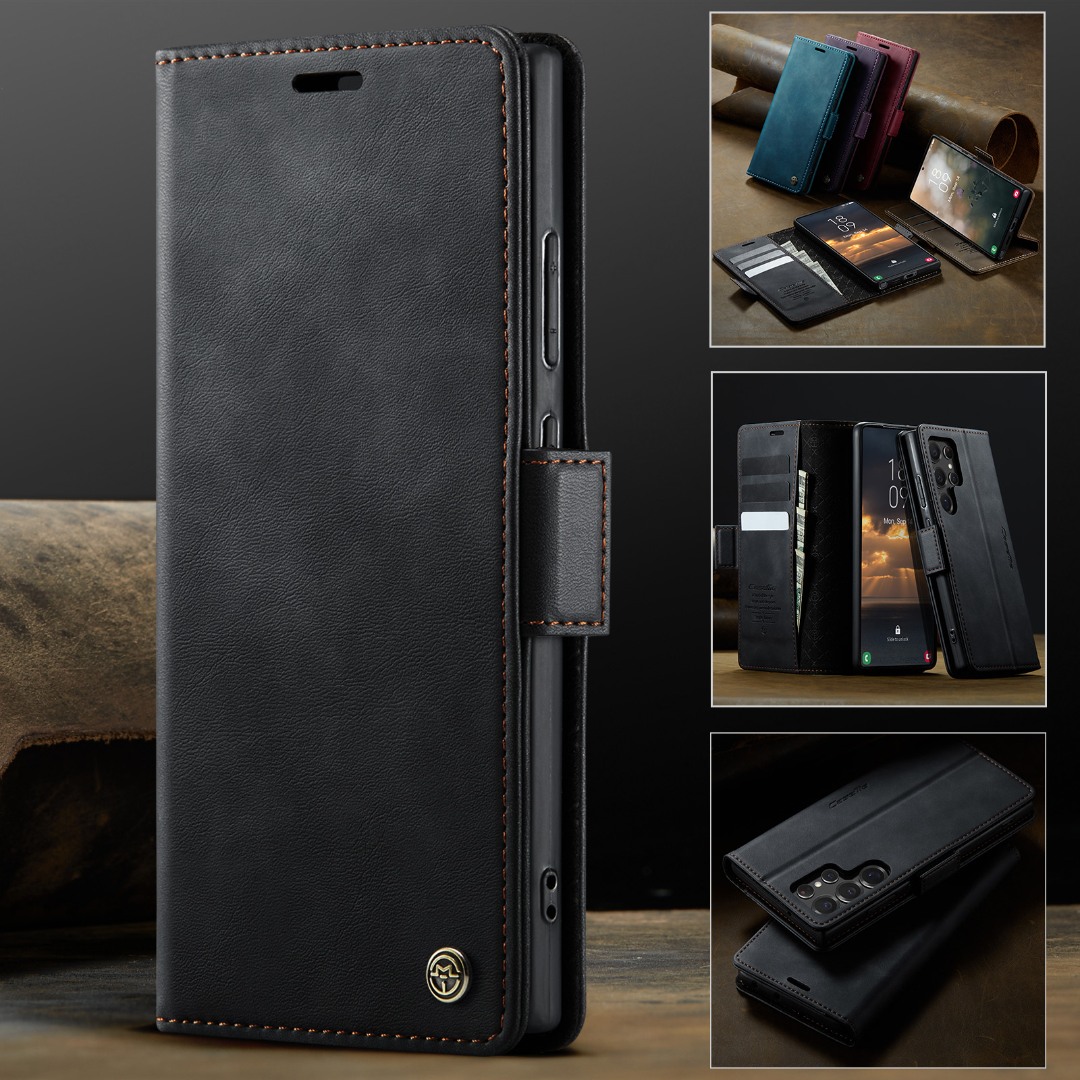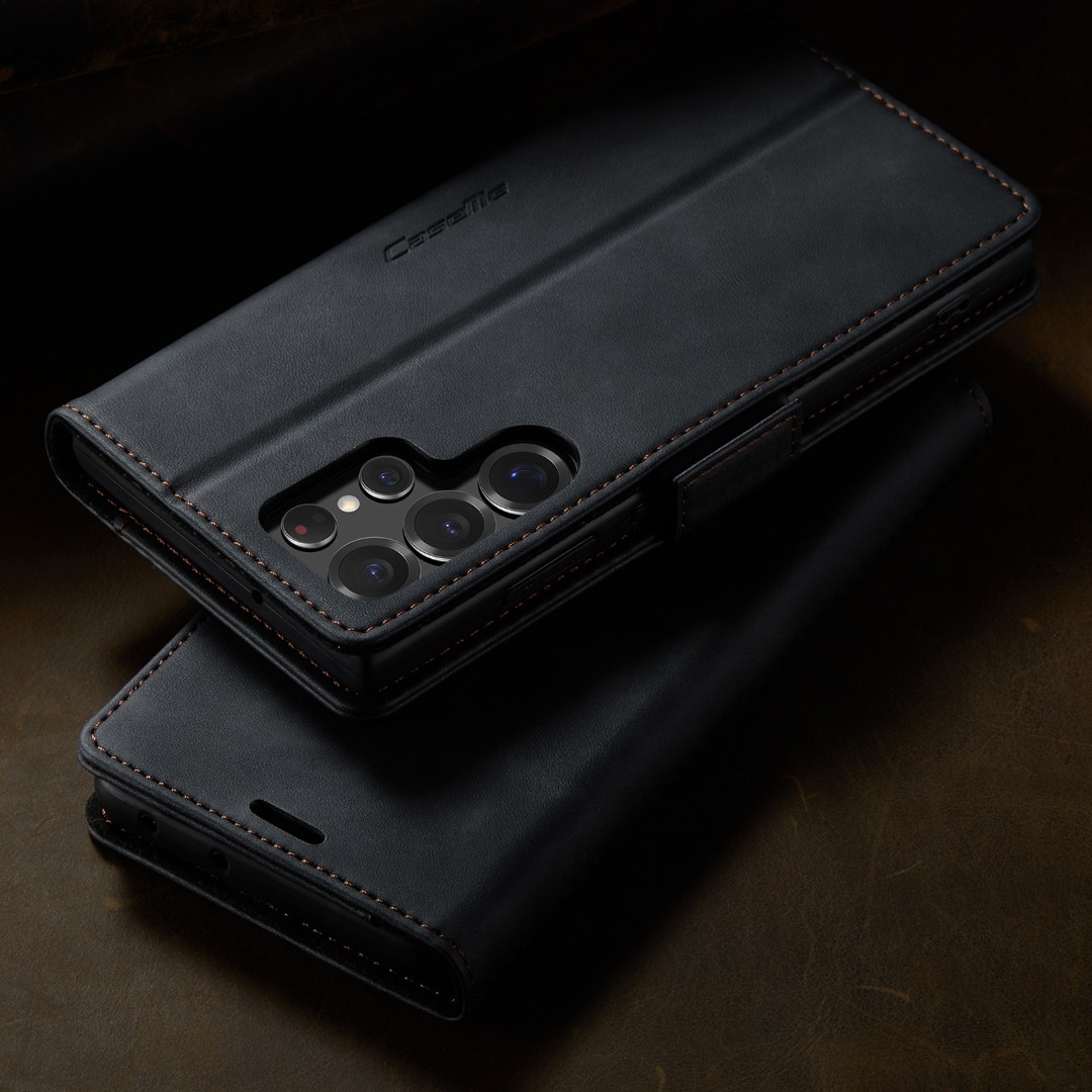 Husa pentru Samsung Galaxy S22 Ultra - Slim tip portofel, cu stand si inchidere magnetica – textura neteda, aderenta sigura, usor de curatat, design curat si minimalist, CaseMe, Negru carbon