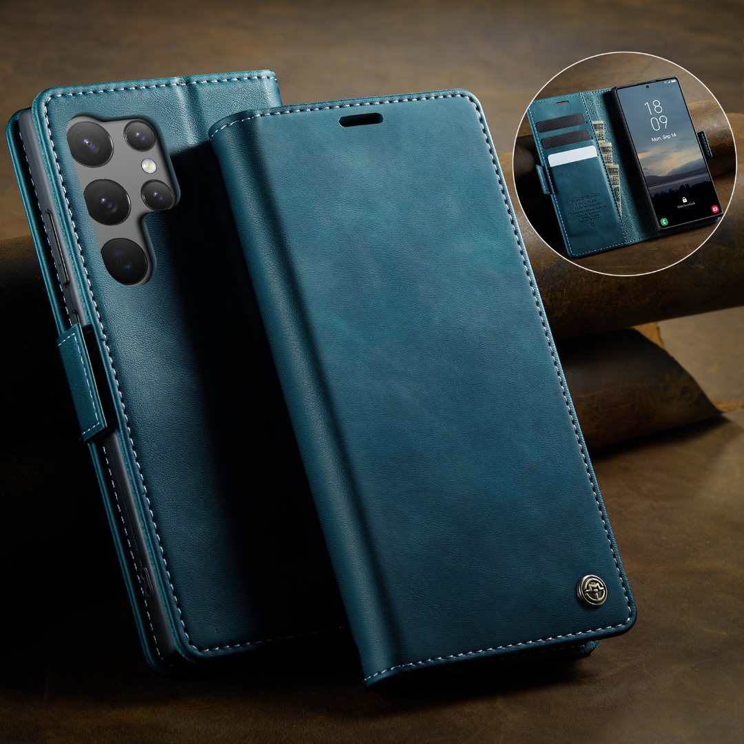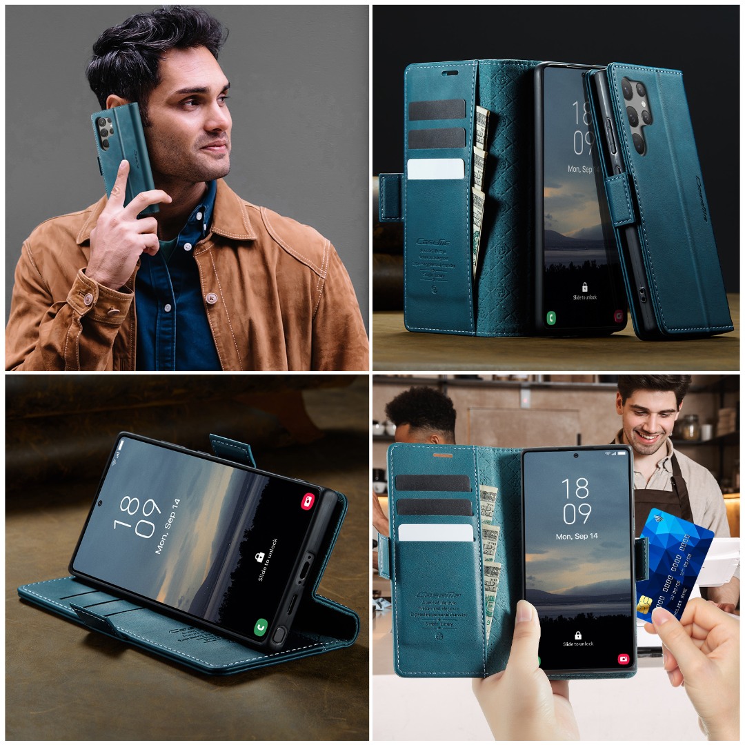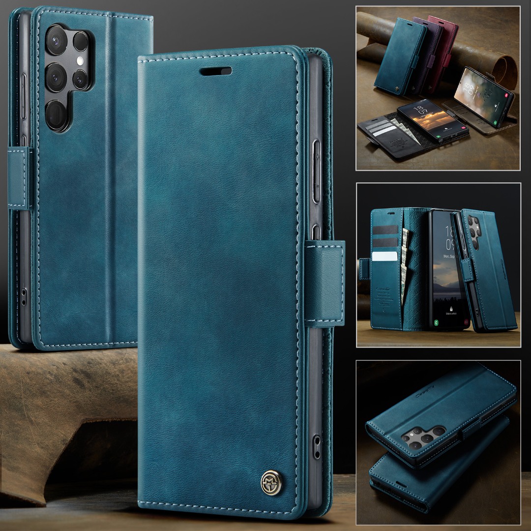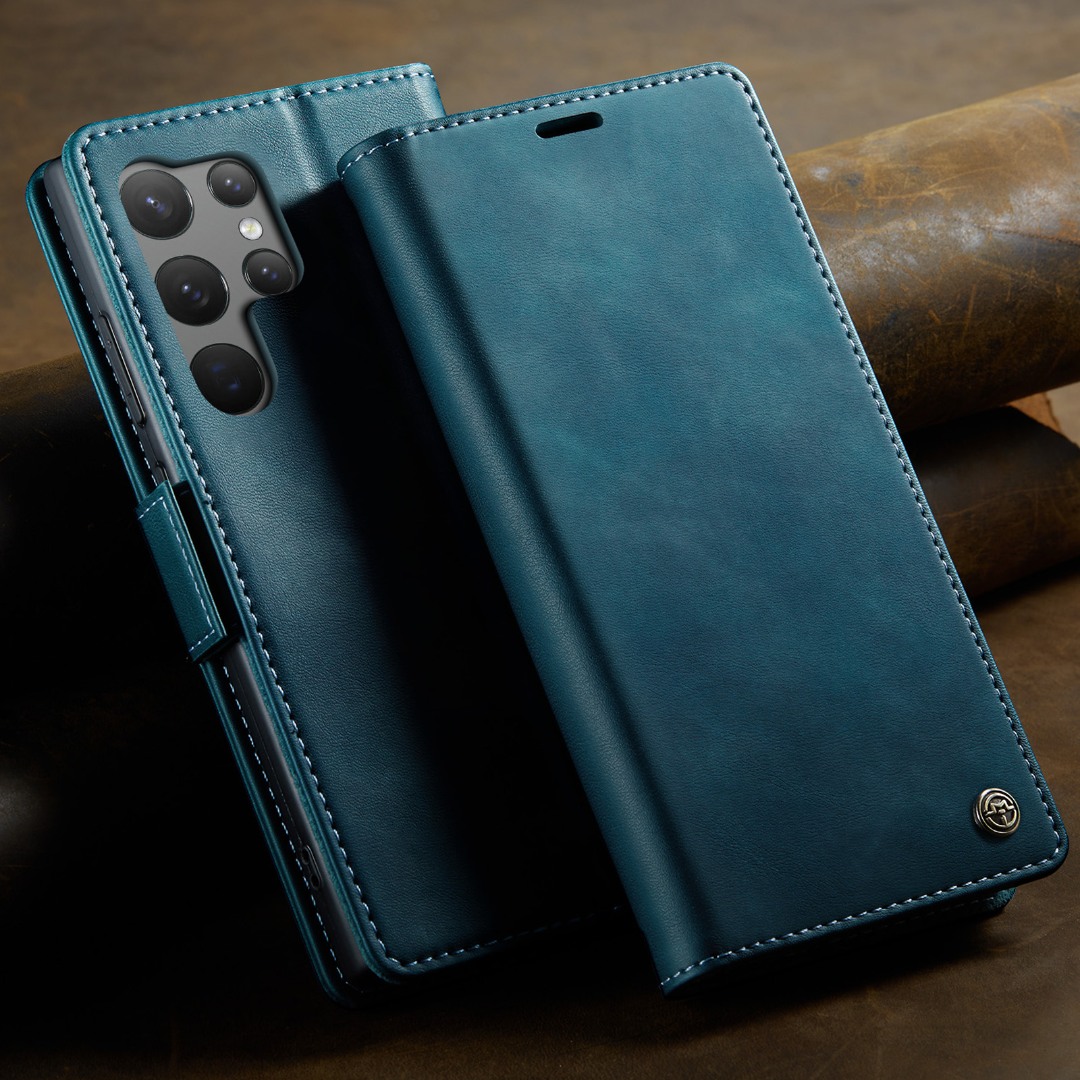 Husa pentru Samsung Galaxy S23 Ultra - Slim tip portofel, cu stand si inchidere magnetica – textura neteda, aderenta sigura, usor de curatat, design curat si minimalist, CaseMe, Teal - Albastru verzui