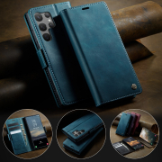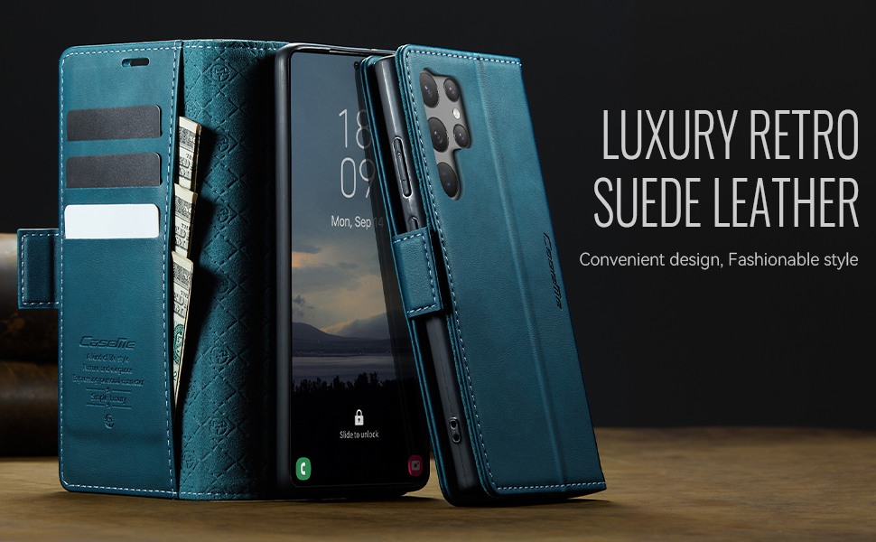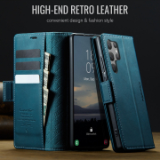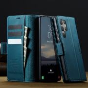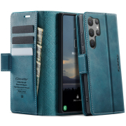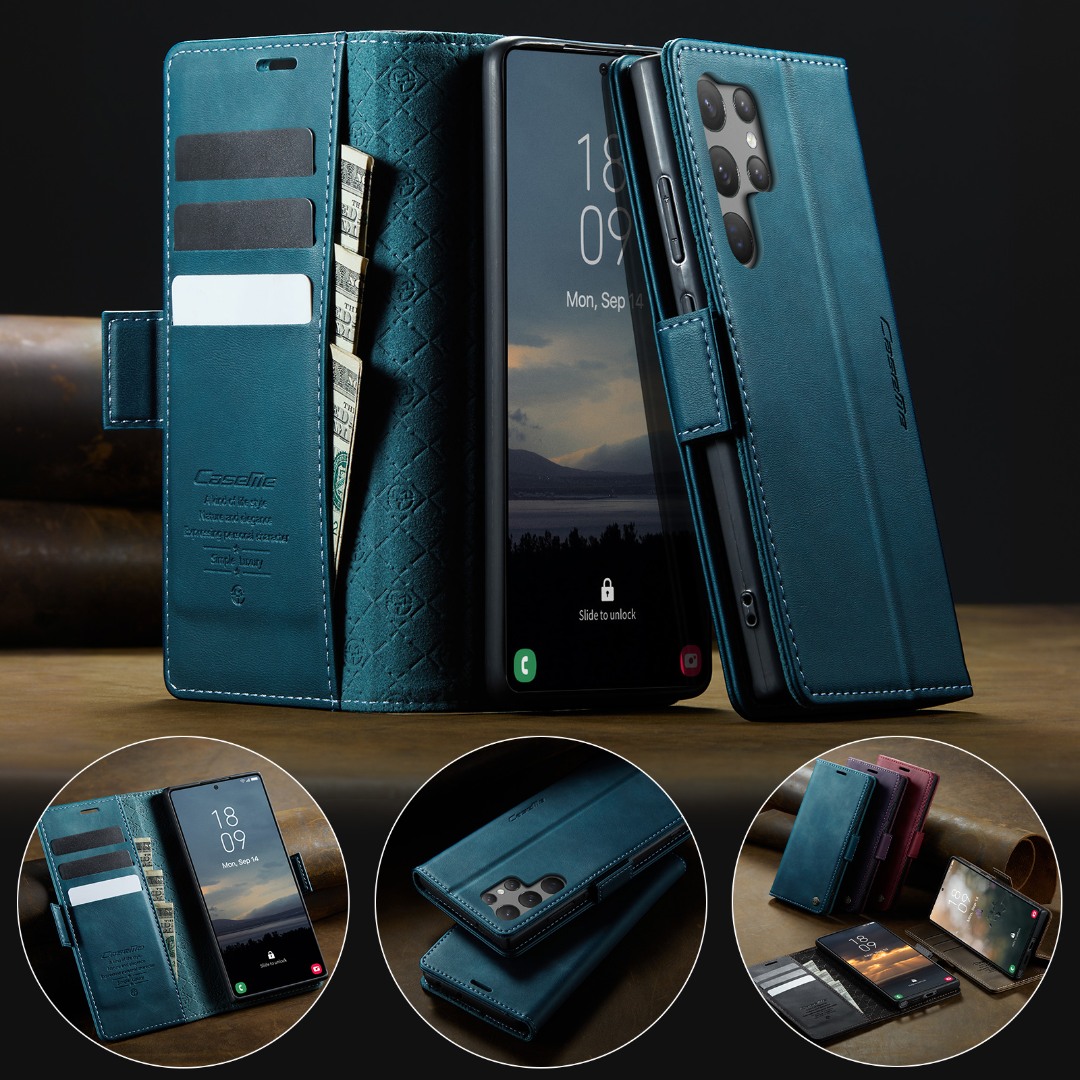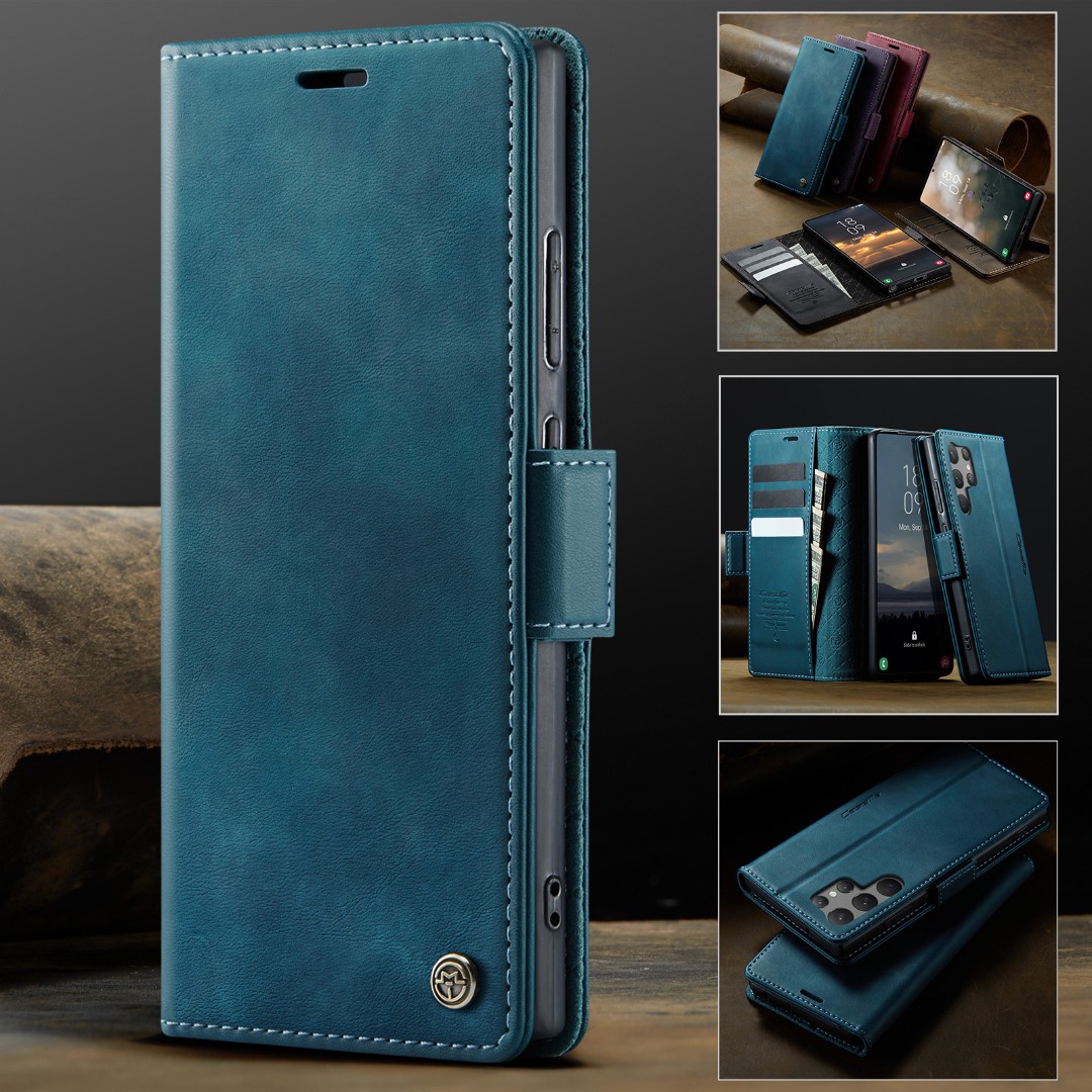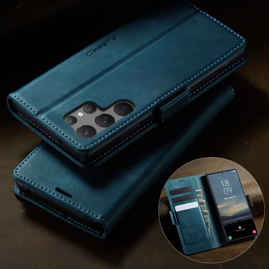 Husa pentru Samsung Galaxy S23 Ultra - Slim tip portofel, cu stand si inchidere magnetica – textura neteda, aderenta sigura, usor de curatat, design curat si minimalist, CaseMe, Teal - Albastru verzui
