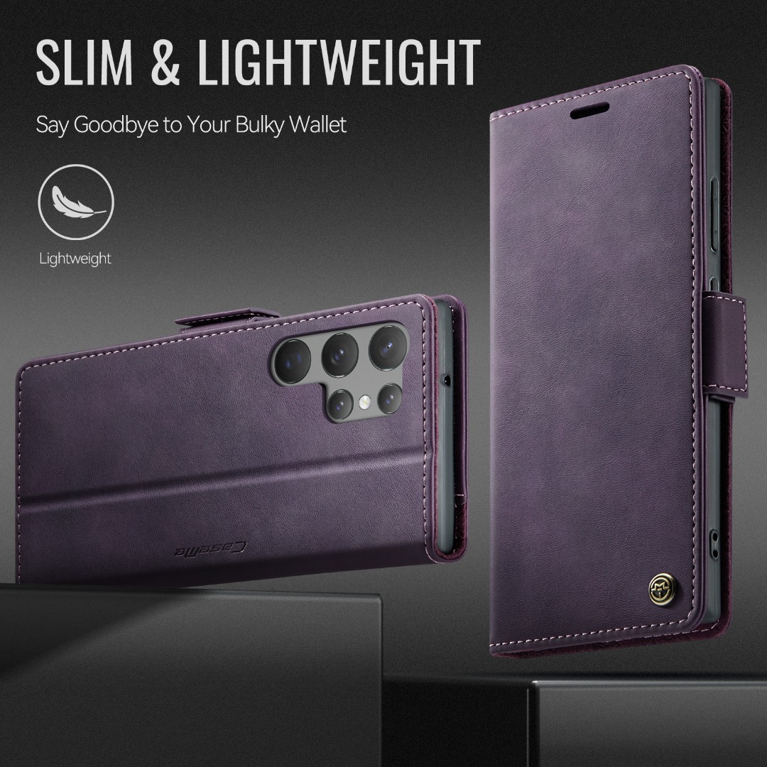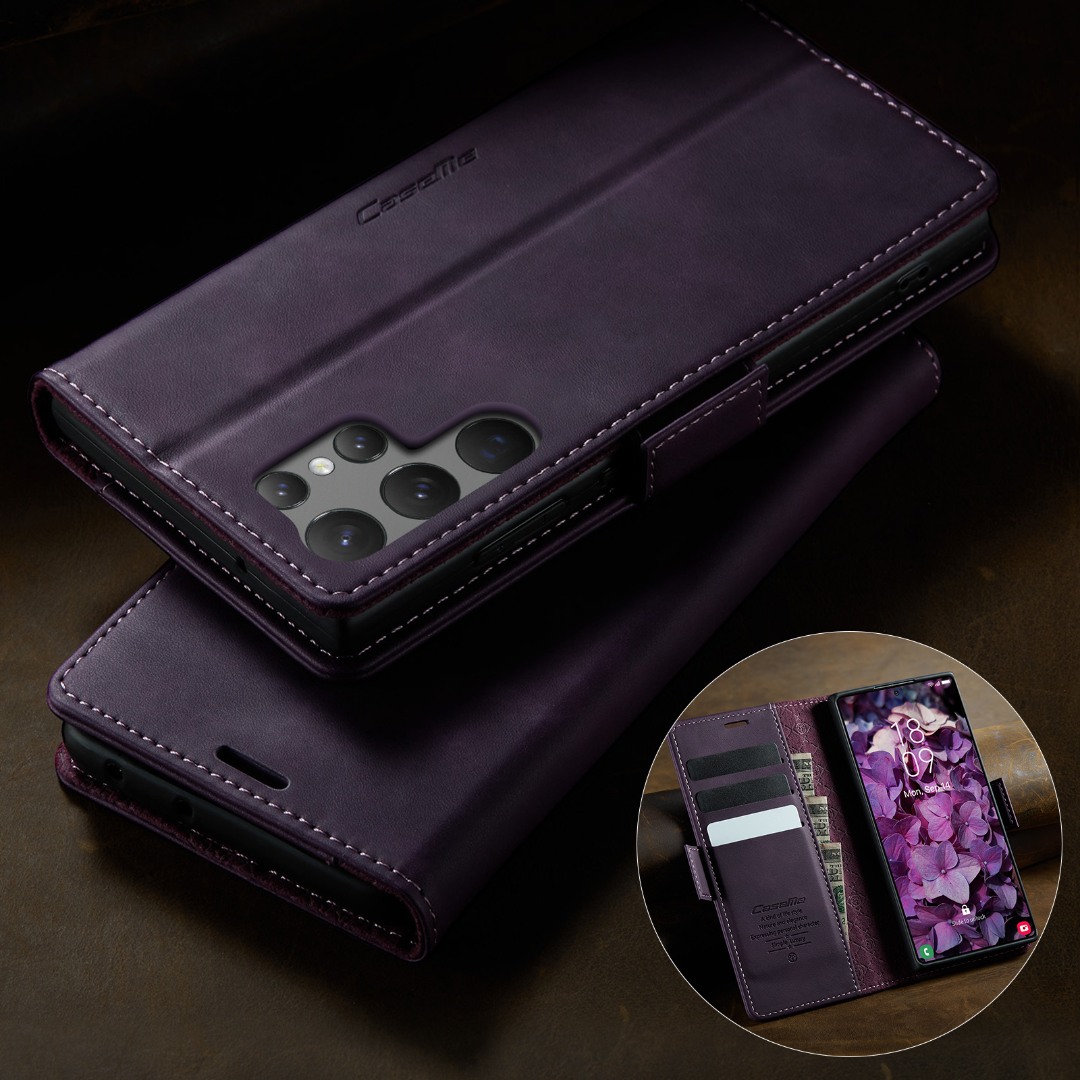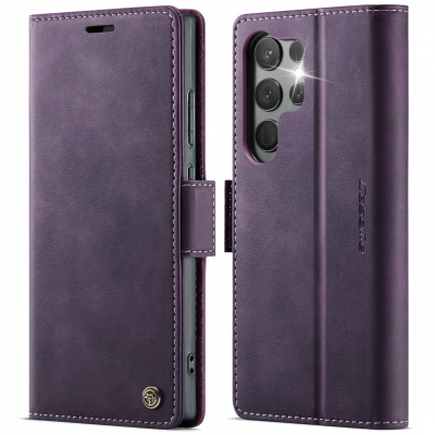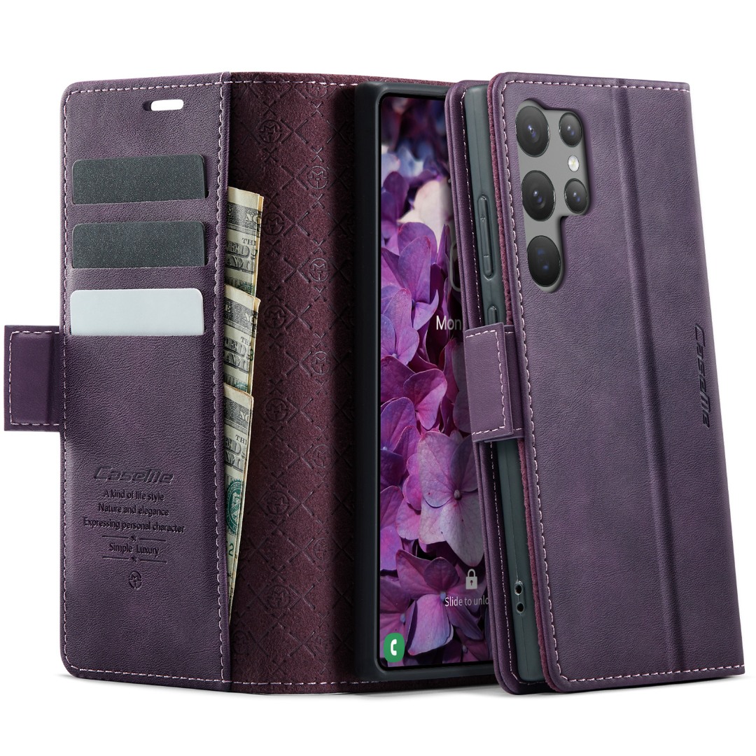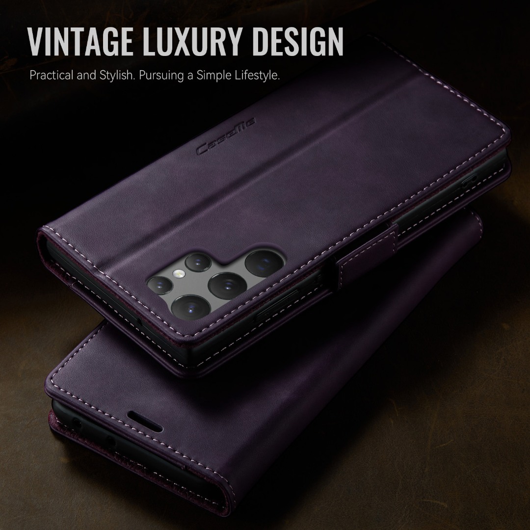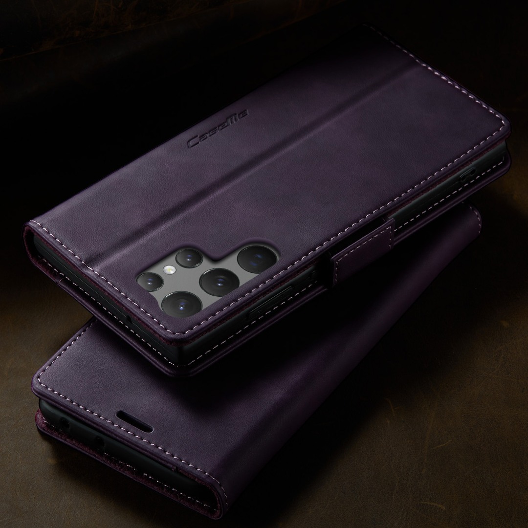 Husa pentru Samsung Galaxy S23 Ultra - Slim tip portofel, cu stand si inchidere magnetica – textura neteda, aderenta sigura, usor de curatat, design curat si minimalist, CaseMe, Violet regal