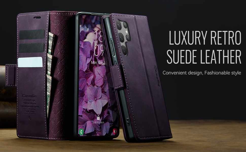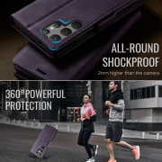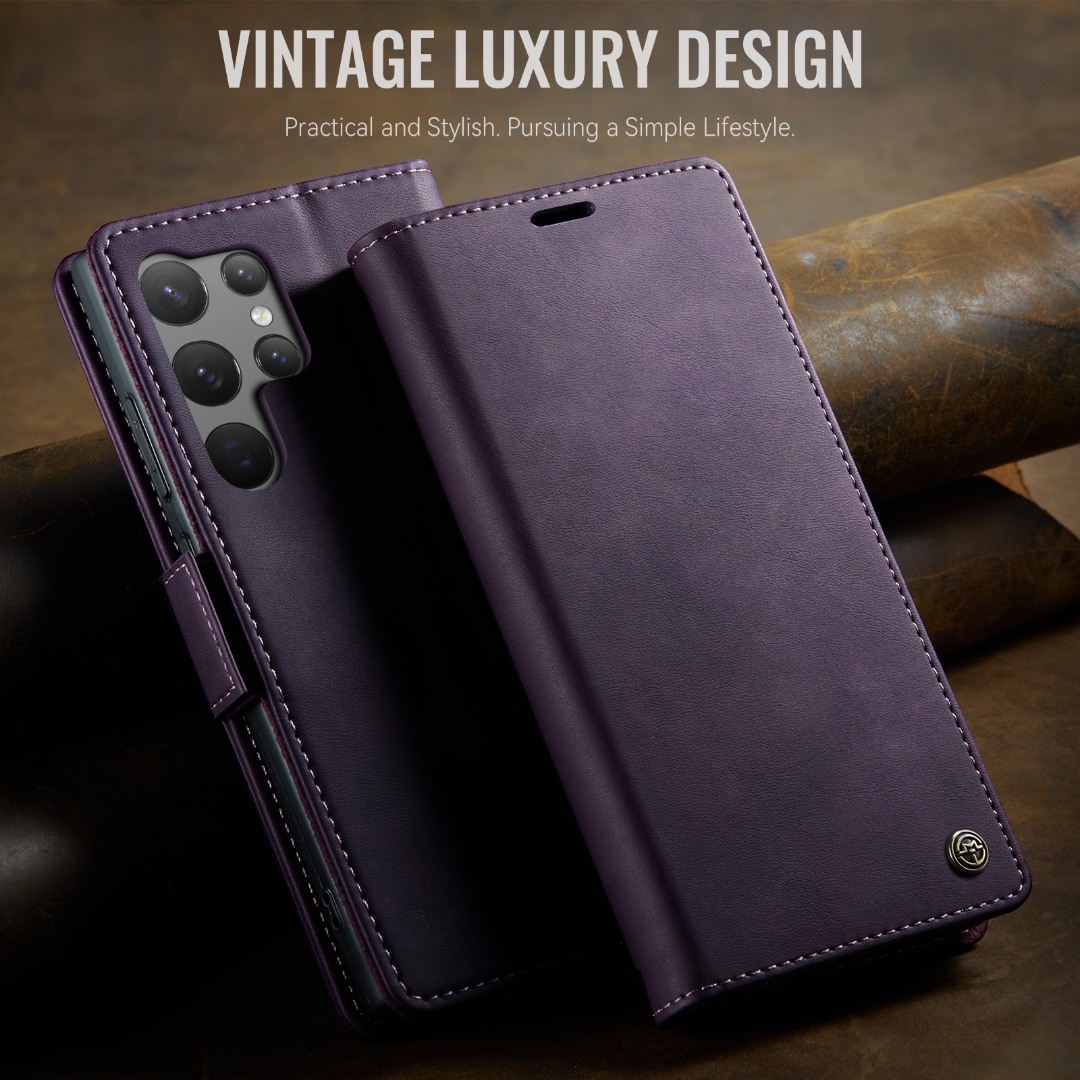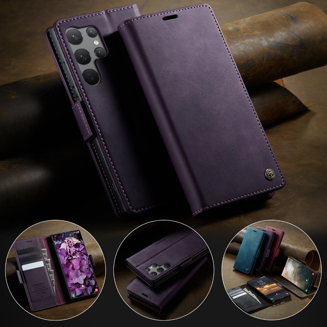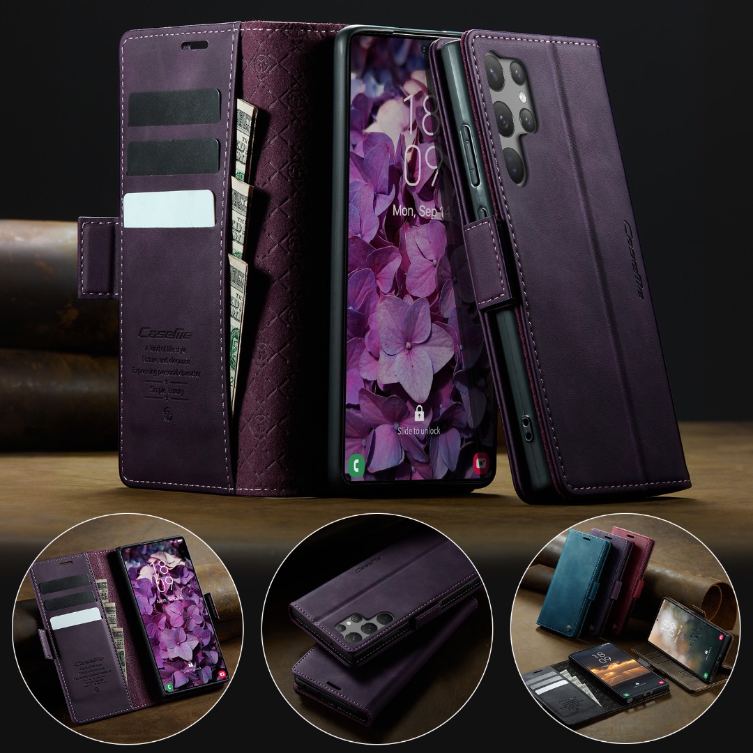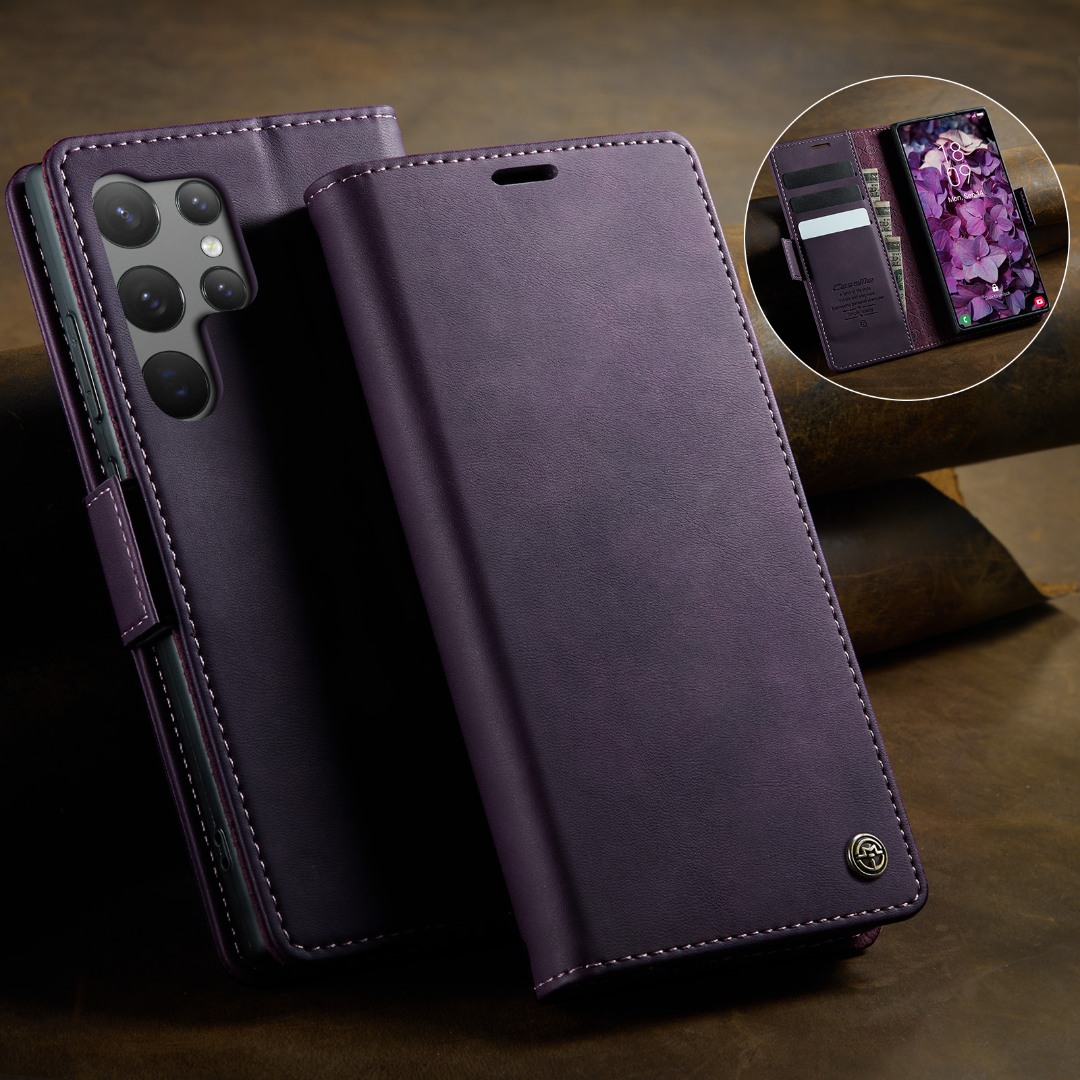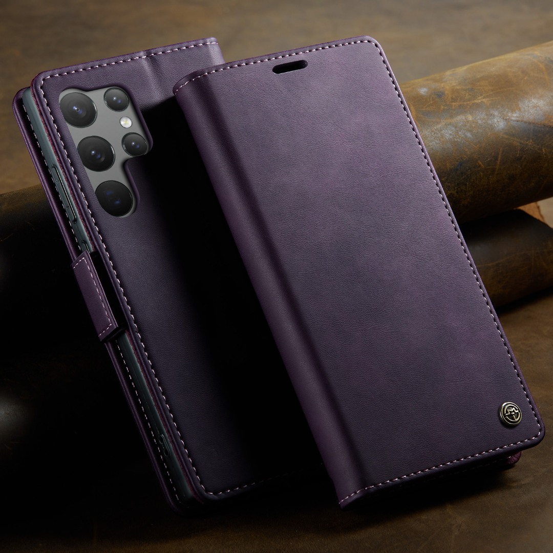 Husa pentru Samsung Galaxy S23 Ultra - Slim tip portofel, cu stand si inchidere magnetica – textura neteda, aderenta sigura, usor de curatat, design curat si minimalist, CaseMe, Violet regal