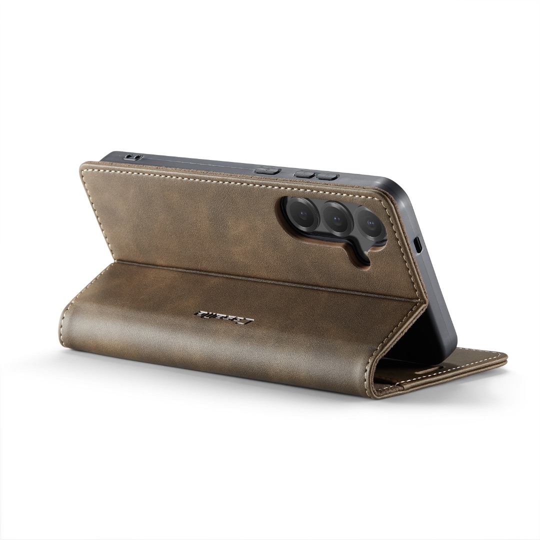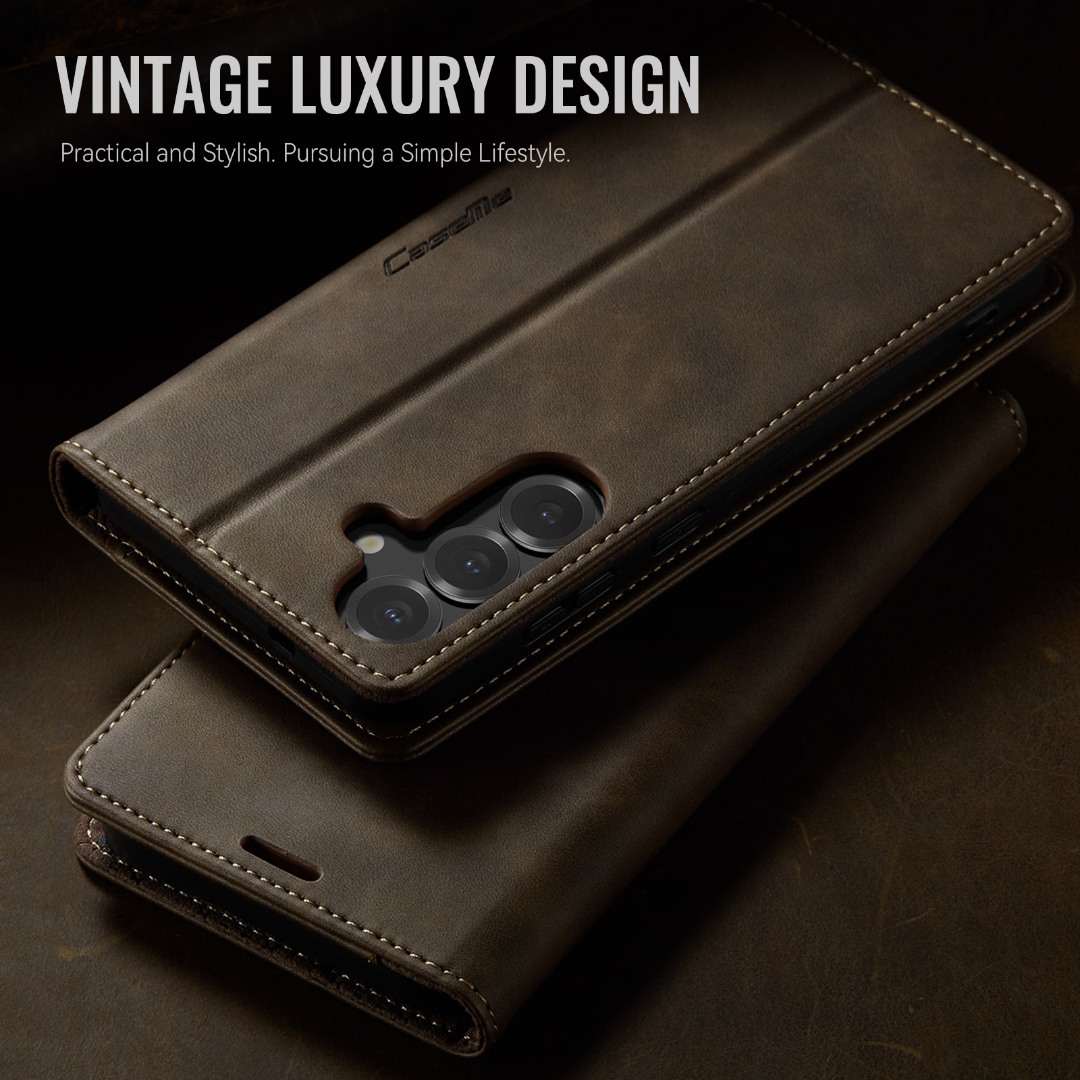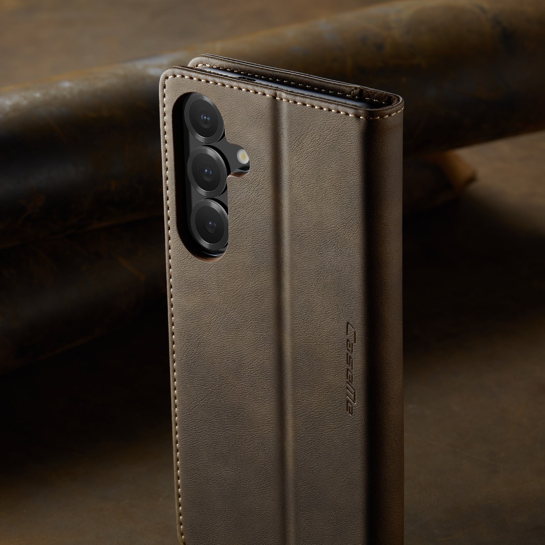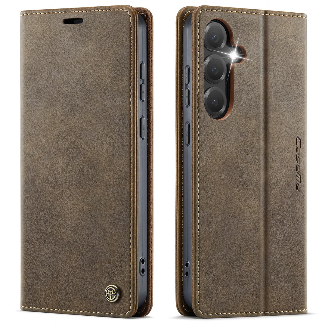 Husa pentru Samsung Galaxy S25 FE - Slim tip portofel, cu stand si inchidere magnetica – textura neteda, aderenta sigura, usor de curatat, design curat si minimalist, CaseMe, Brun clasic