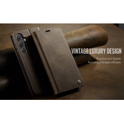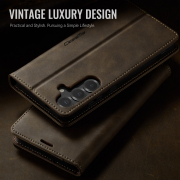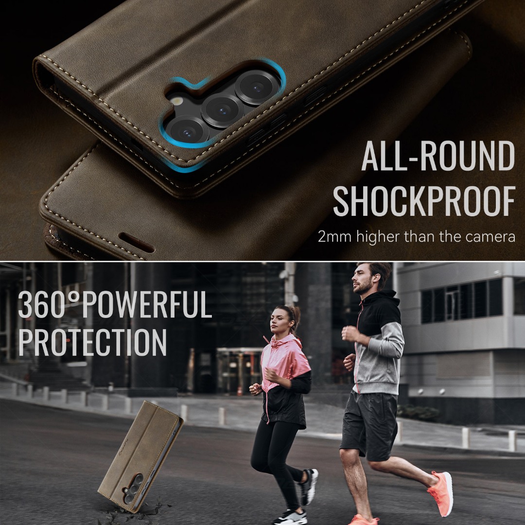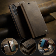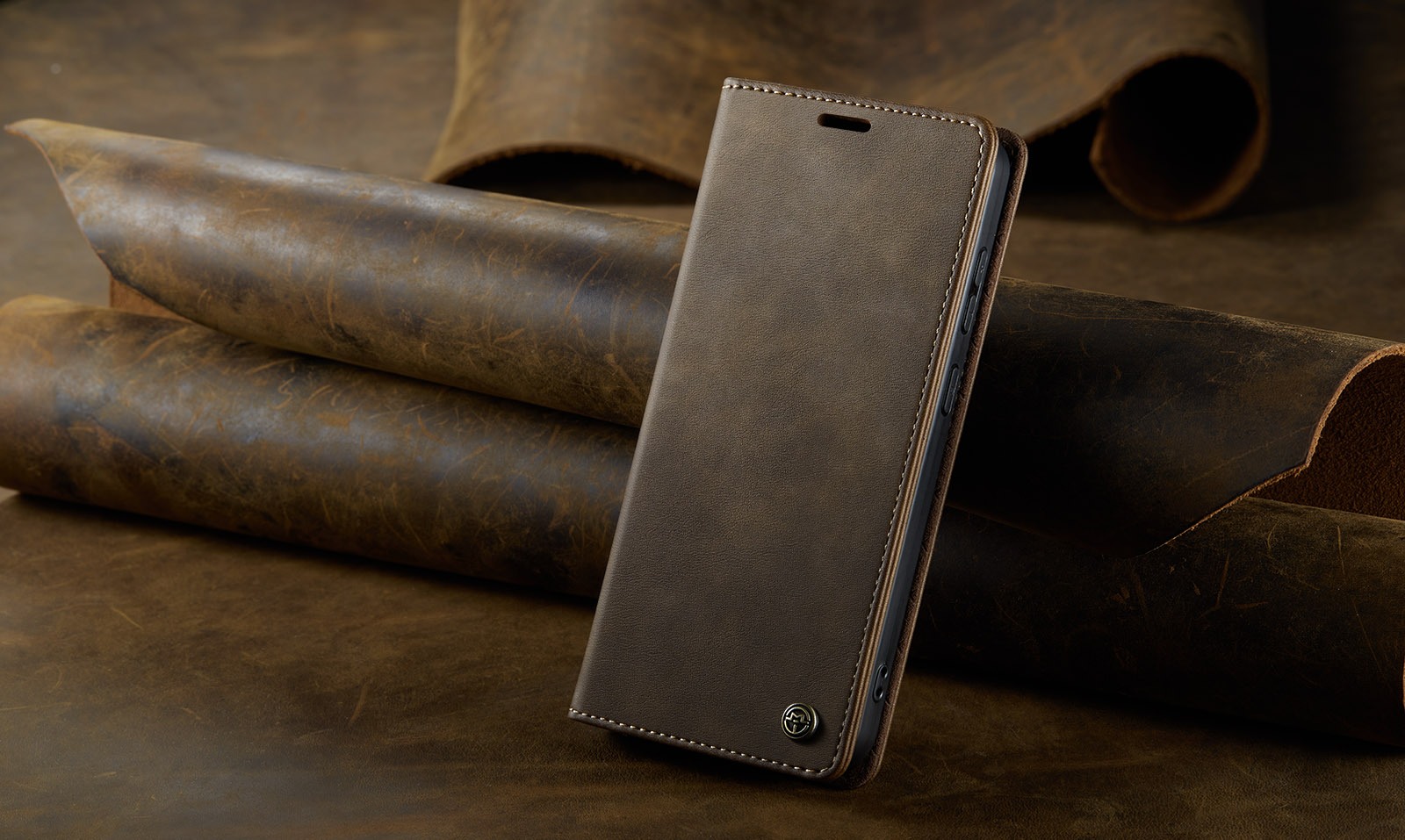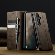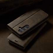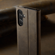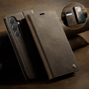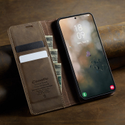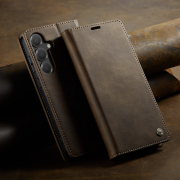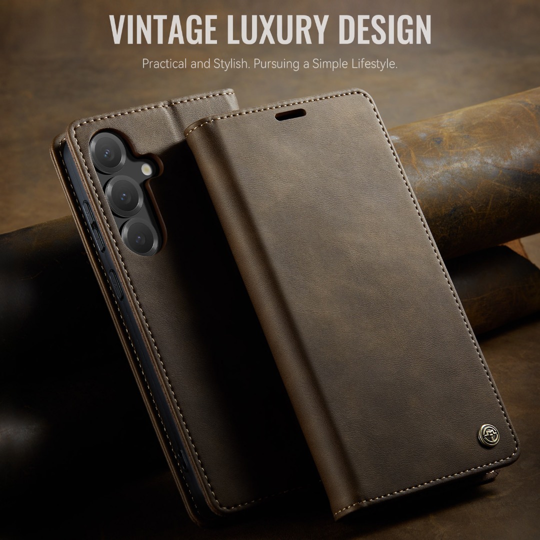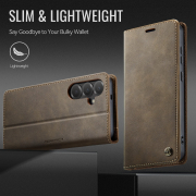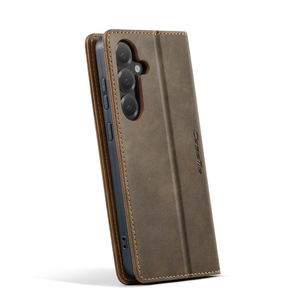 Husa pentru Samsung Galaxy S25 FE - Slim tip portofel, cu stand si inchidere magnetica – textura neteda, aderenta sigura, usor de curatat, design curat si minimalist, CaseMe, Brun clasic