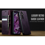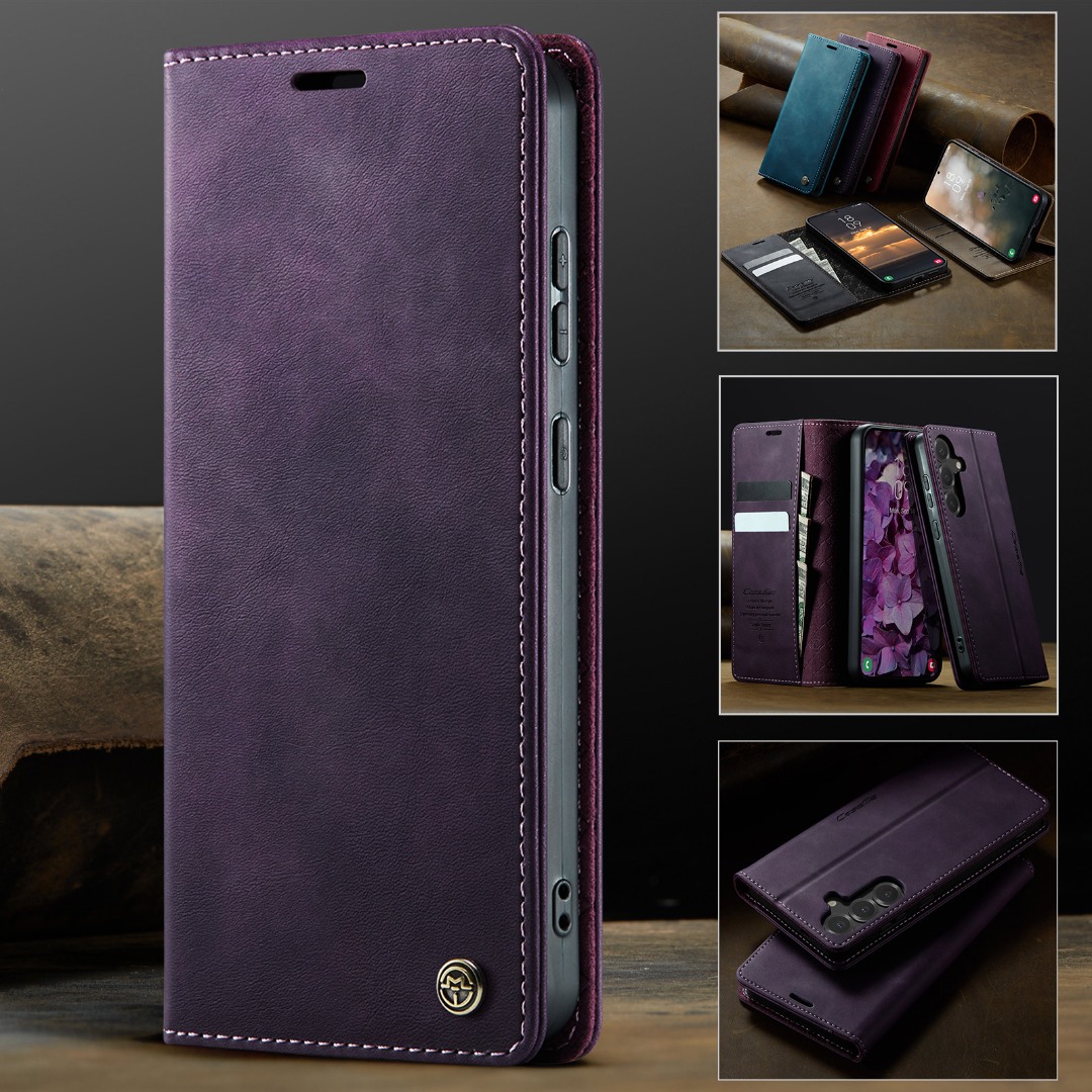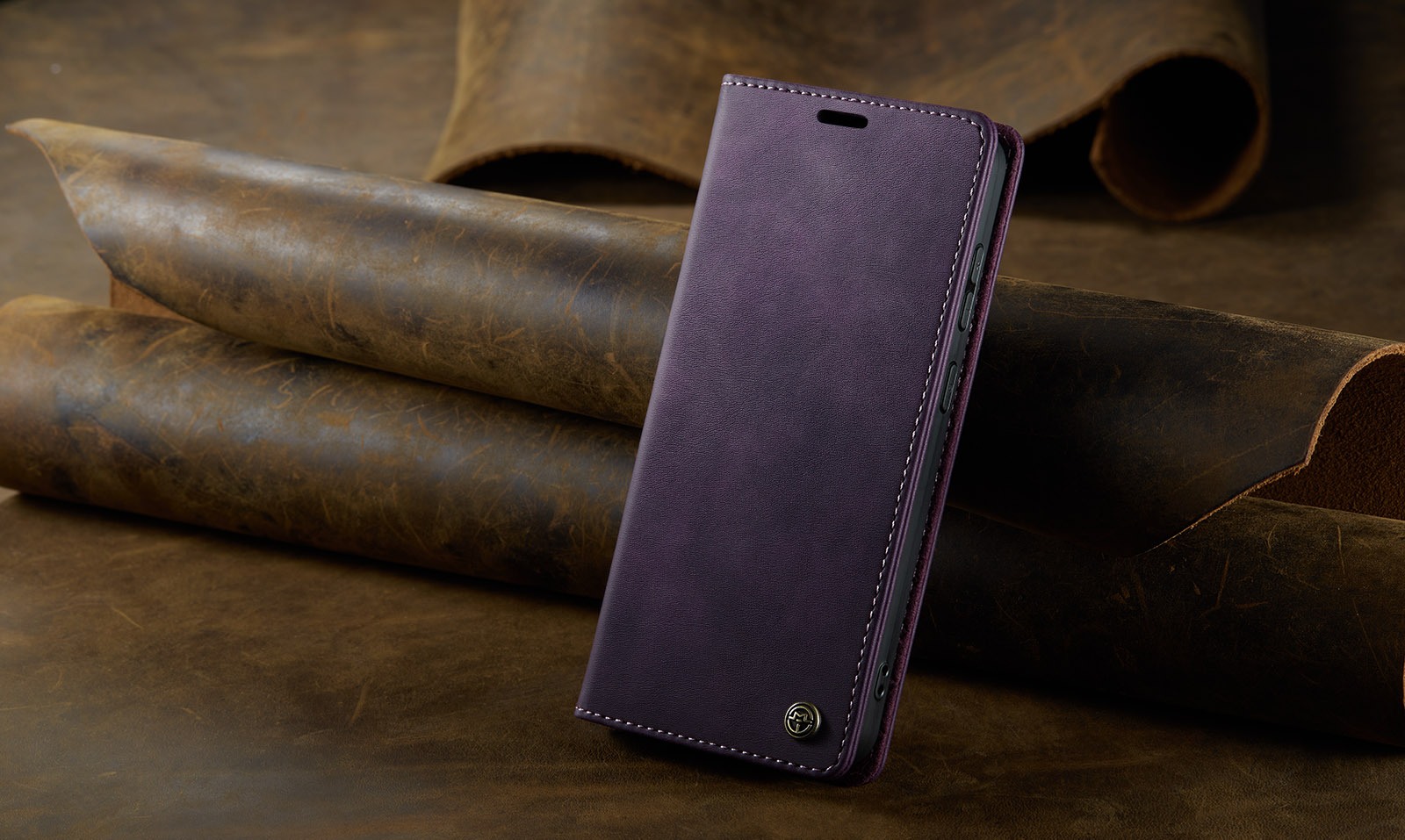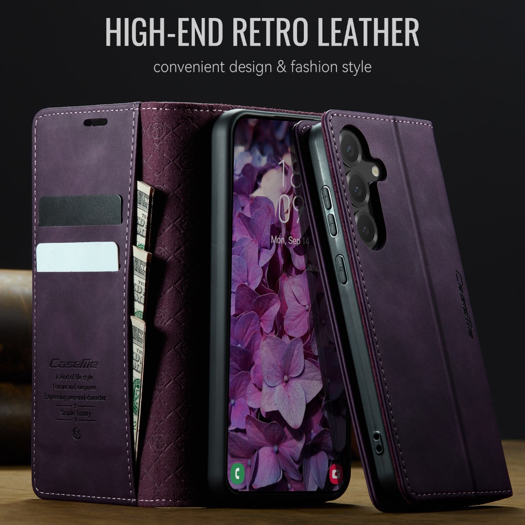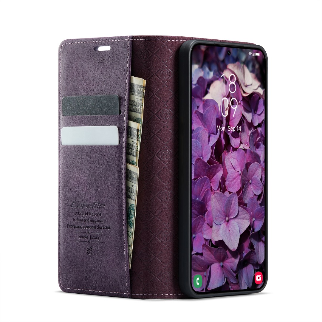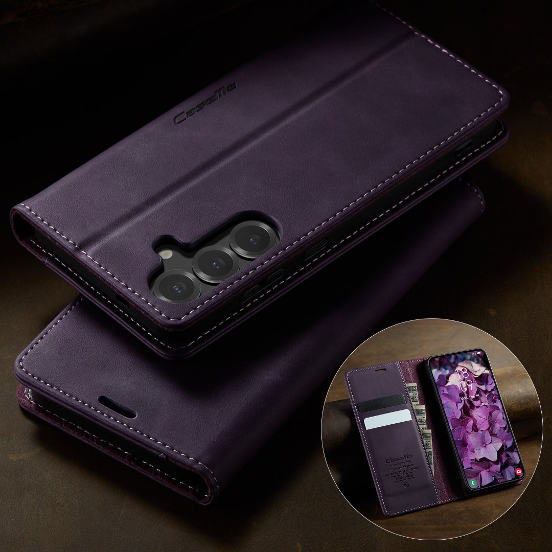 Husa pentru Samsung Galaxy S25 FE - Slim tip portofel, cu stand si inchidere magnetica – textura neteda, aderenta sigura, usor de curatat, design curat si minimalist, CaseMe, Violet regal