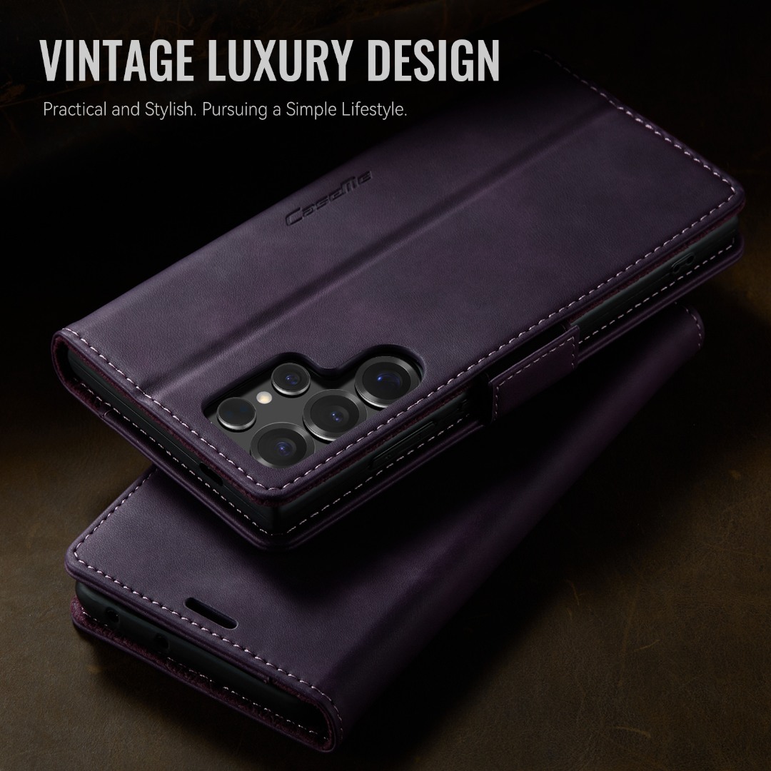 Husa pentru Samsung Galaxy S25 Ultra - Slim tip portofel, cu stand si inchidere magnetica – textura neteda, aderenta sigura, usor de curatat, design curat si minimalist, CaseMe, Violet regal