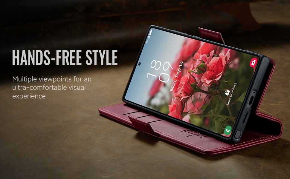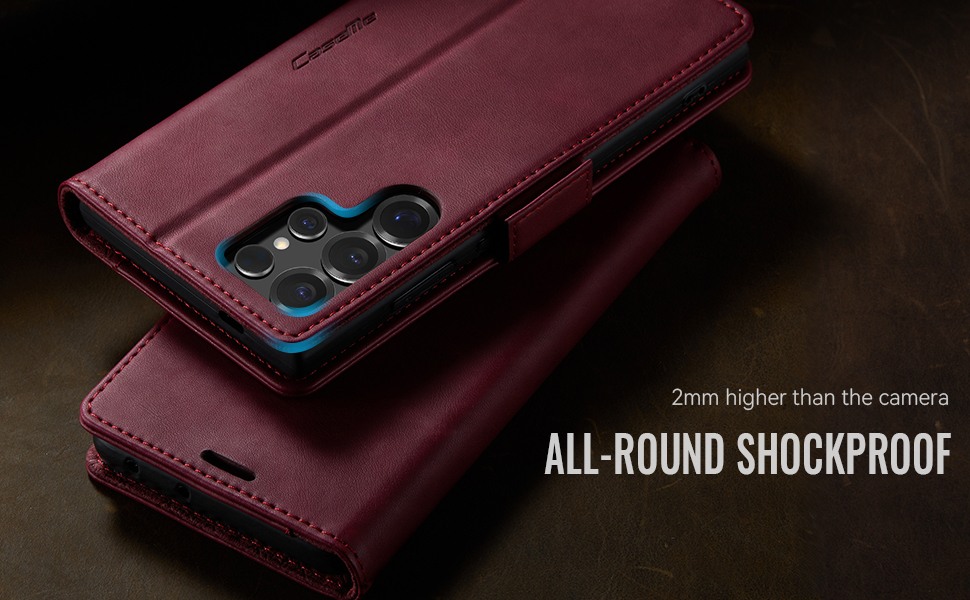 Husa pentru Samsung Galaxy S25 Ultra - Slim tip portofel, cu stand si inchidere magnetica – textura neteda, aderenta sigura, usor de curatat, design curat si minimalist, CaseMe, Rosu burgundy