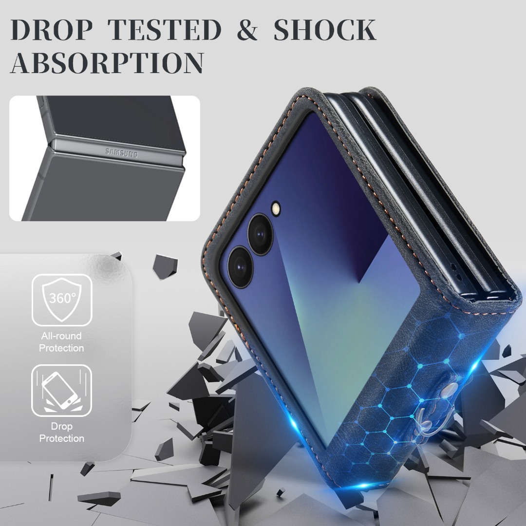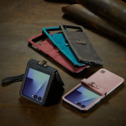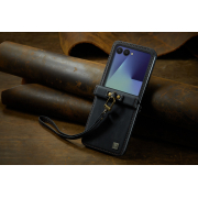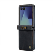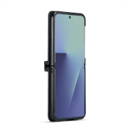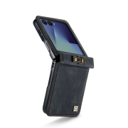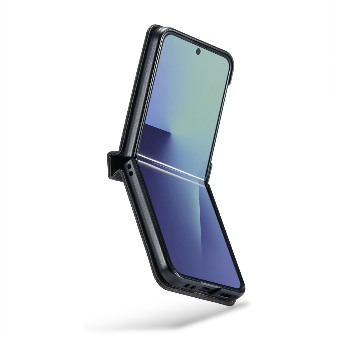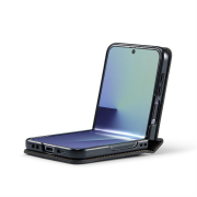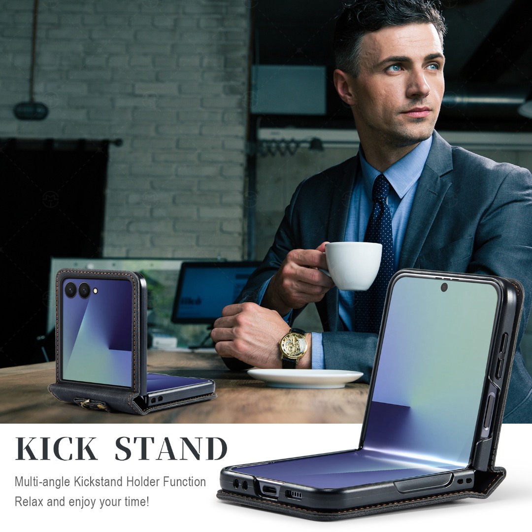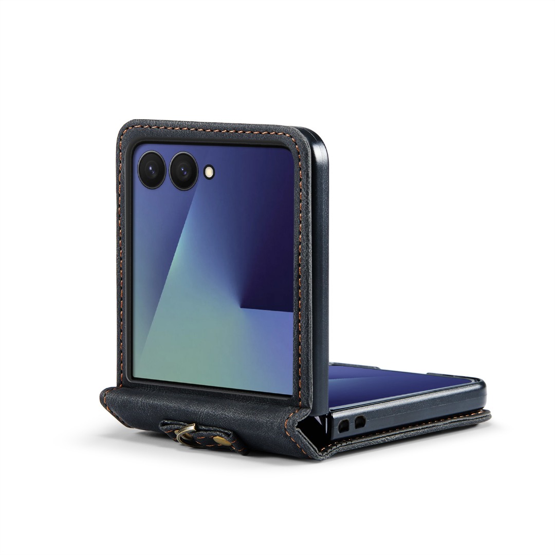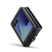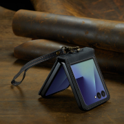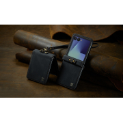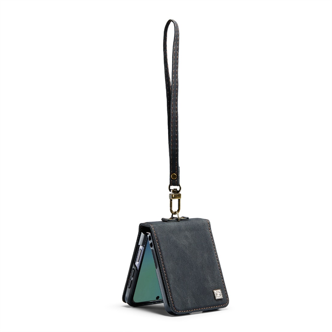 Husa pentru Samsung Galaxy Z Flip7, piele cu textura moale, carcasa cu curelusa de mana detasabila, protectie pentru balama si colturi, CaseMe Retro, Negru - Ash Black