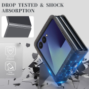 Husa este conceputa pentru a proteja colturile telefonului si zona balamalei, ajutand la reducerea riscului de deteriorare in cazul socurilor sau utilizarii frecvente.