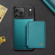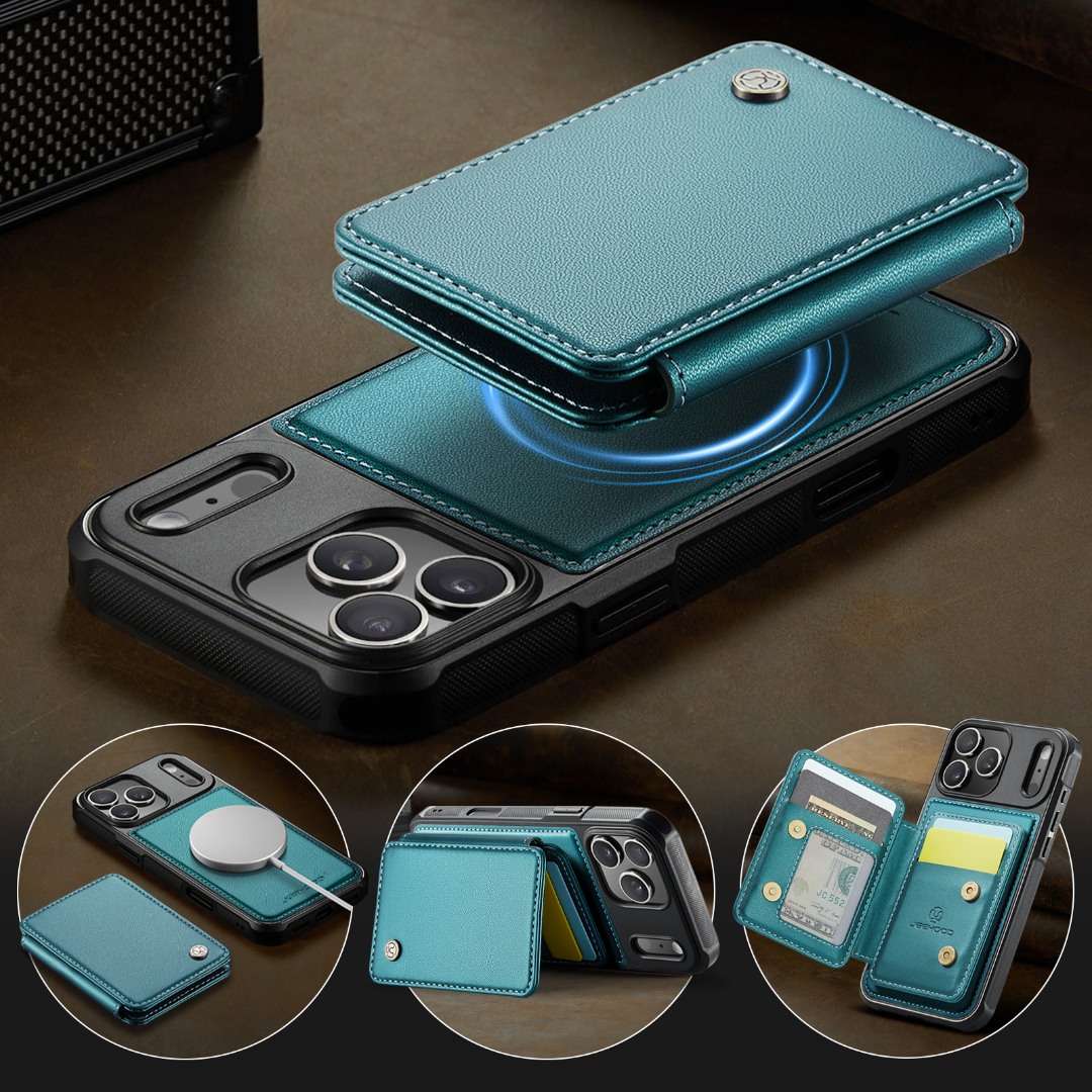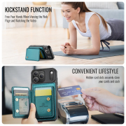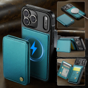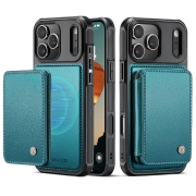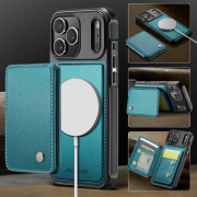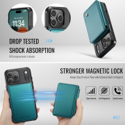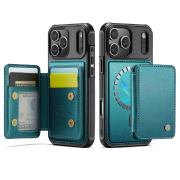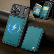 Husa piele cu textura moale si aderenta in mana, back cover, mini portofel magnetic detasabil, slot carduri, functie stand, protectie RFID, compatibil MagSafe, iPhone 17 Pro Max, CaseMe, Verde