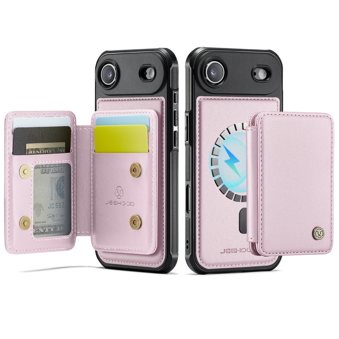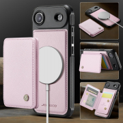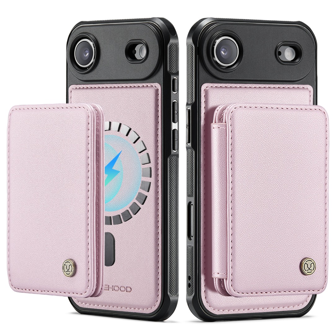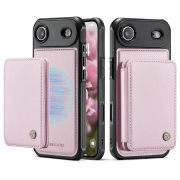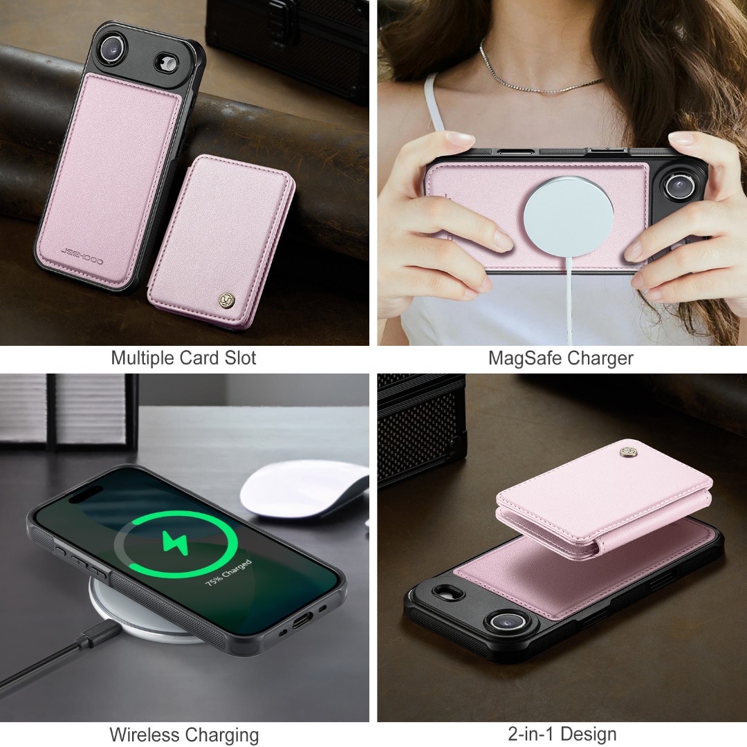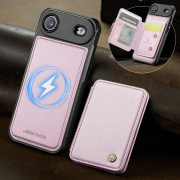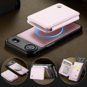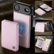 Husa piele cu textura moale si aderenta in mana, back cover, mini portofel magnetic detasabil, slot carduri, functie stand, protectie RFID, compatibil MagSafe, iPhone Air, CaseMe, Roz