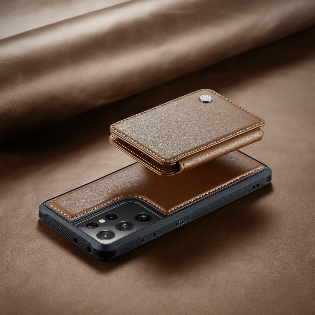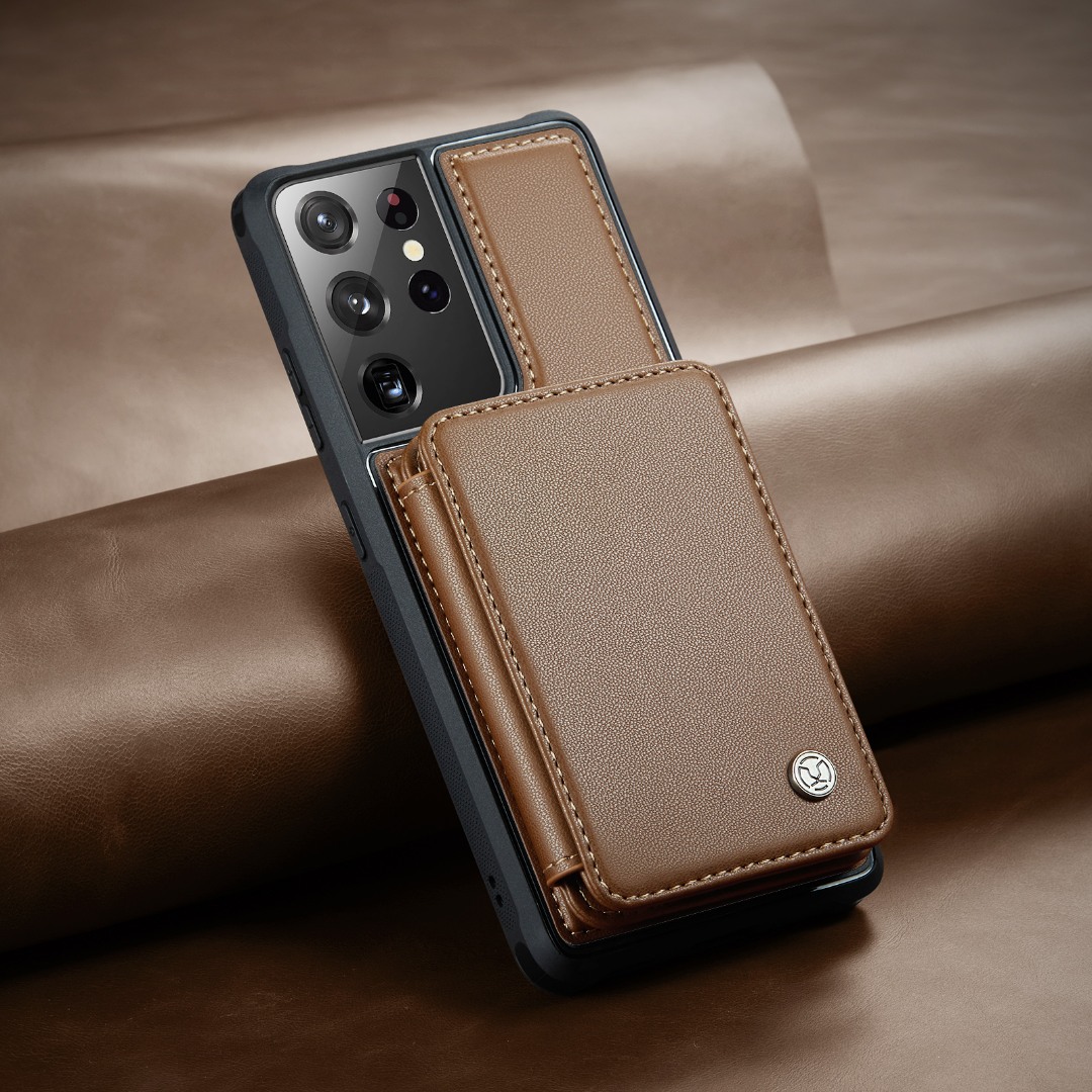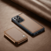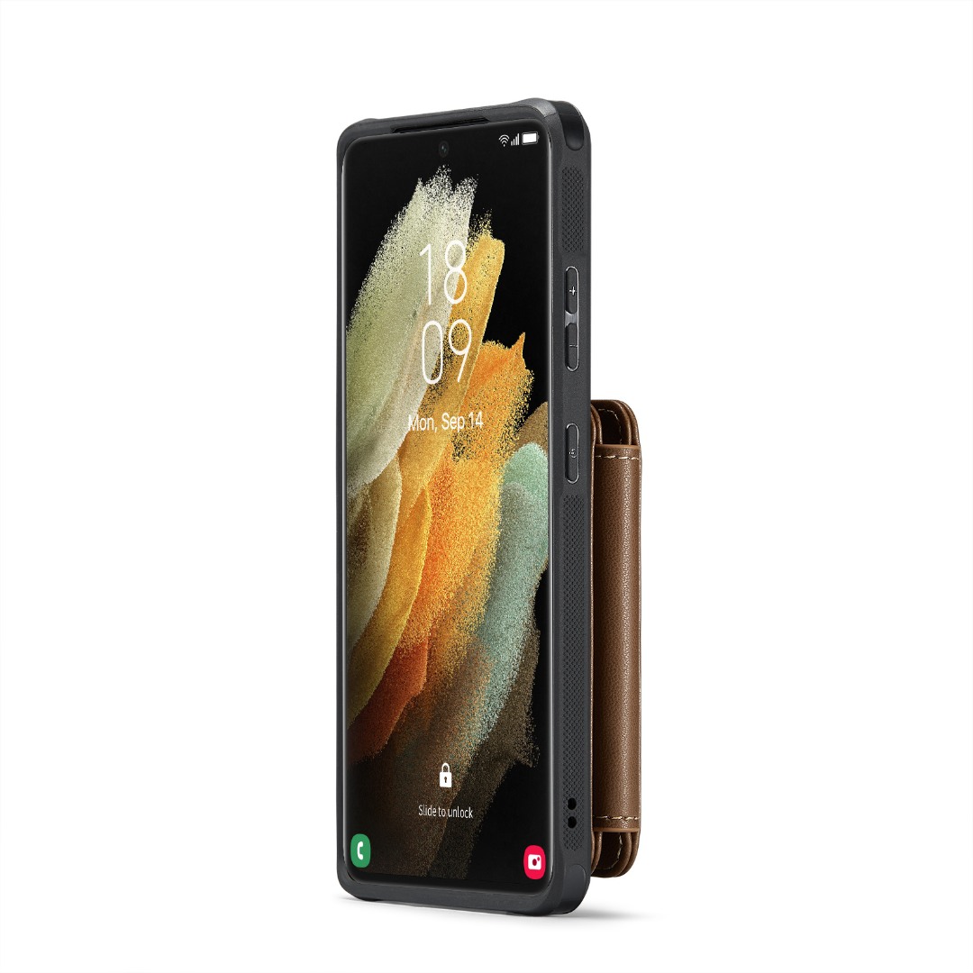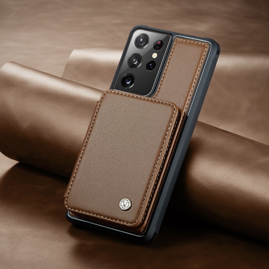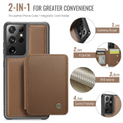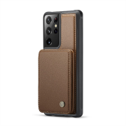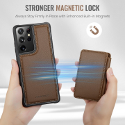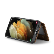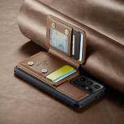 Husa piele cu textura moale si aderenta in mana, back cover, mini portofel magnetic detasabil, slot carduri, functie stand, protectie RFID, Samsung Galaxy S21 Ultra, CaseMe, Maro