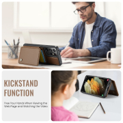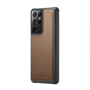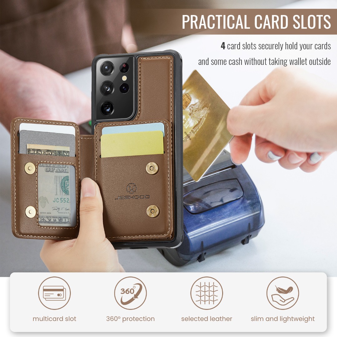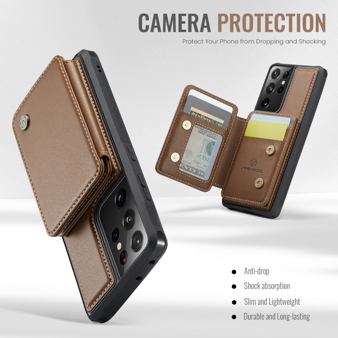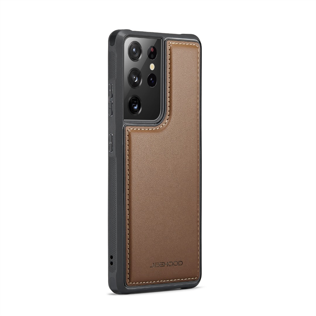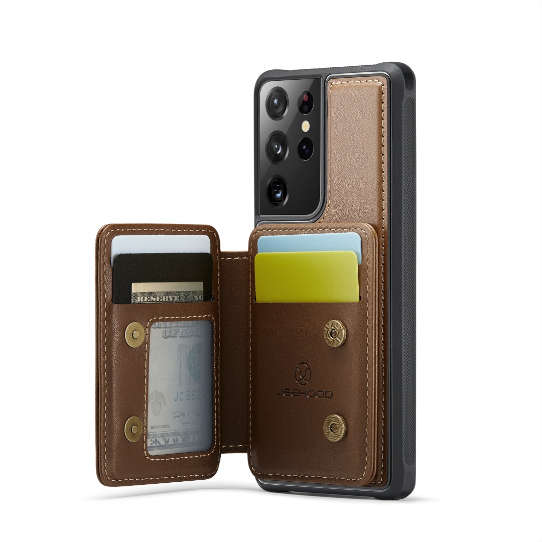 Husa piele cu textura moale si aderenta in mana, back cover, mini portofel magnetic detasabil, slot carduri, functie stand, protectie RFID, Samsung Galaxy S21 Ultra, CaseMe, Maro