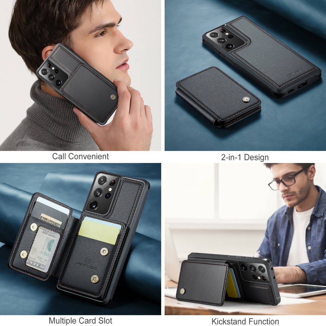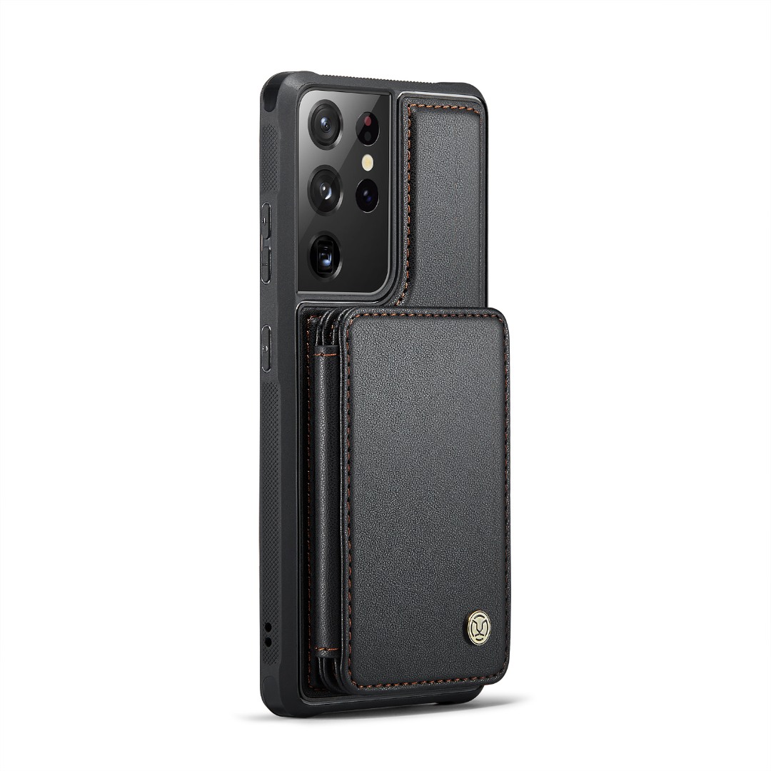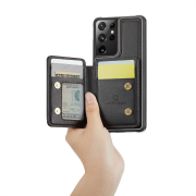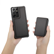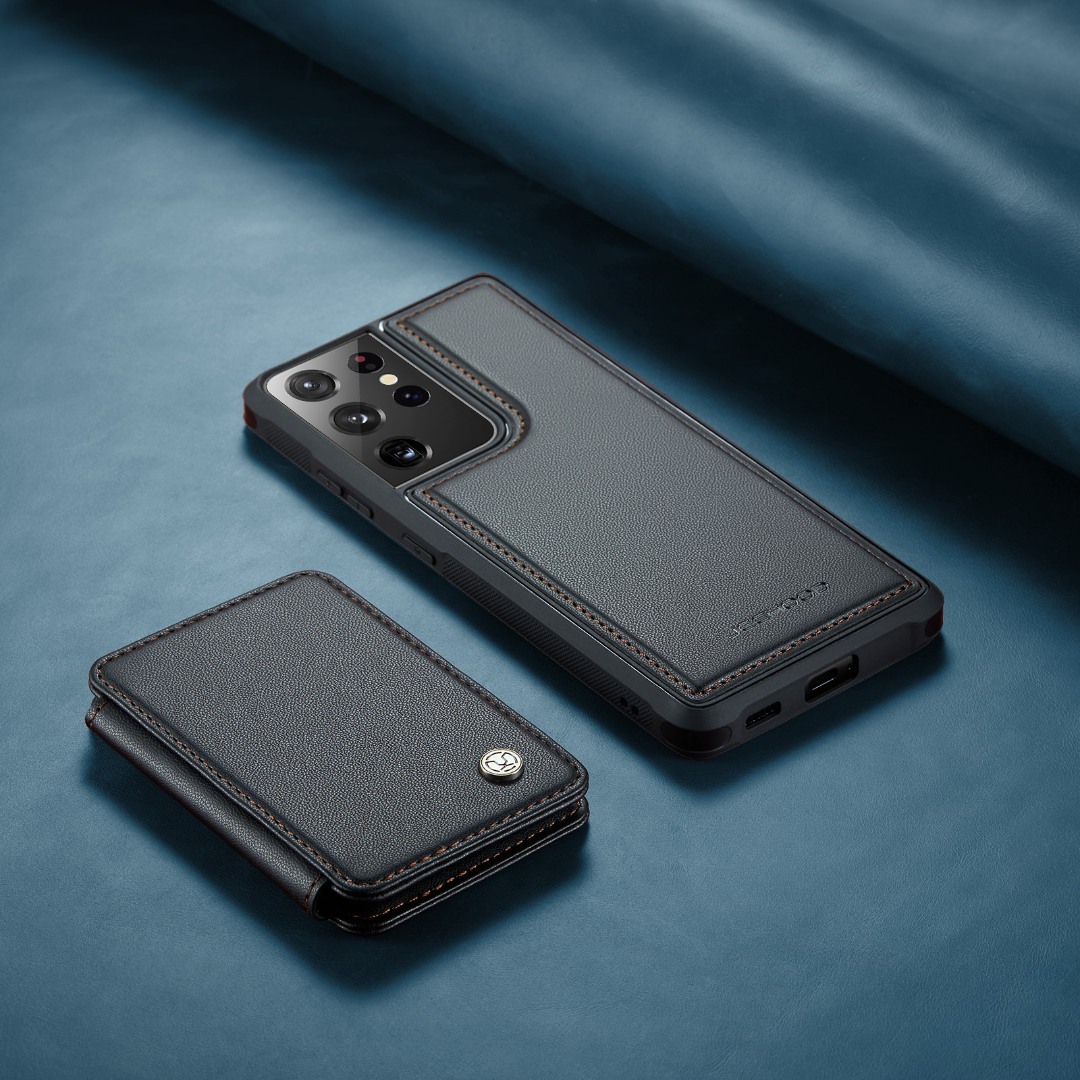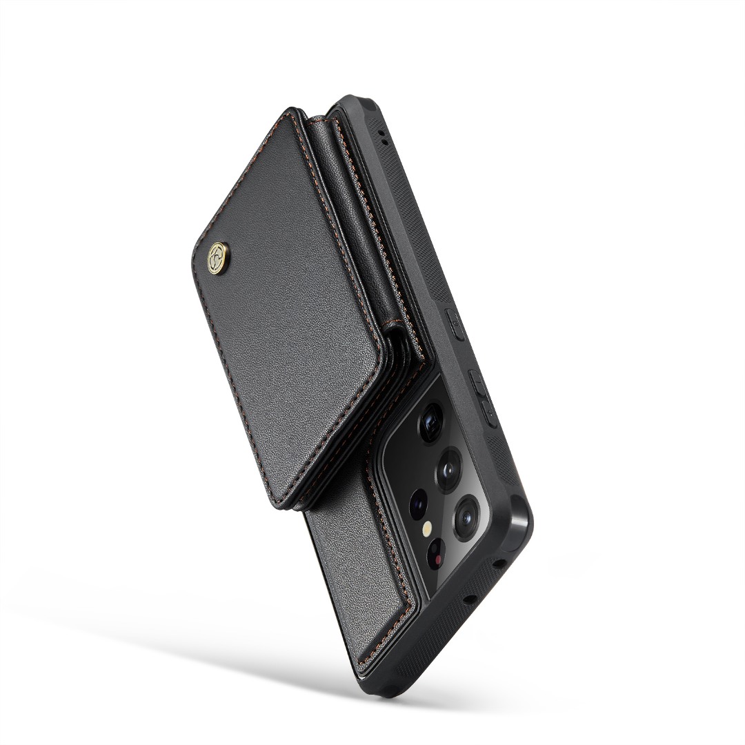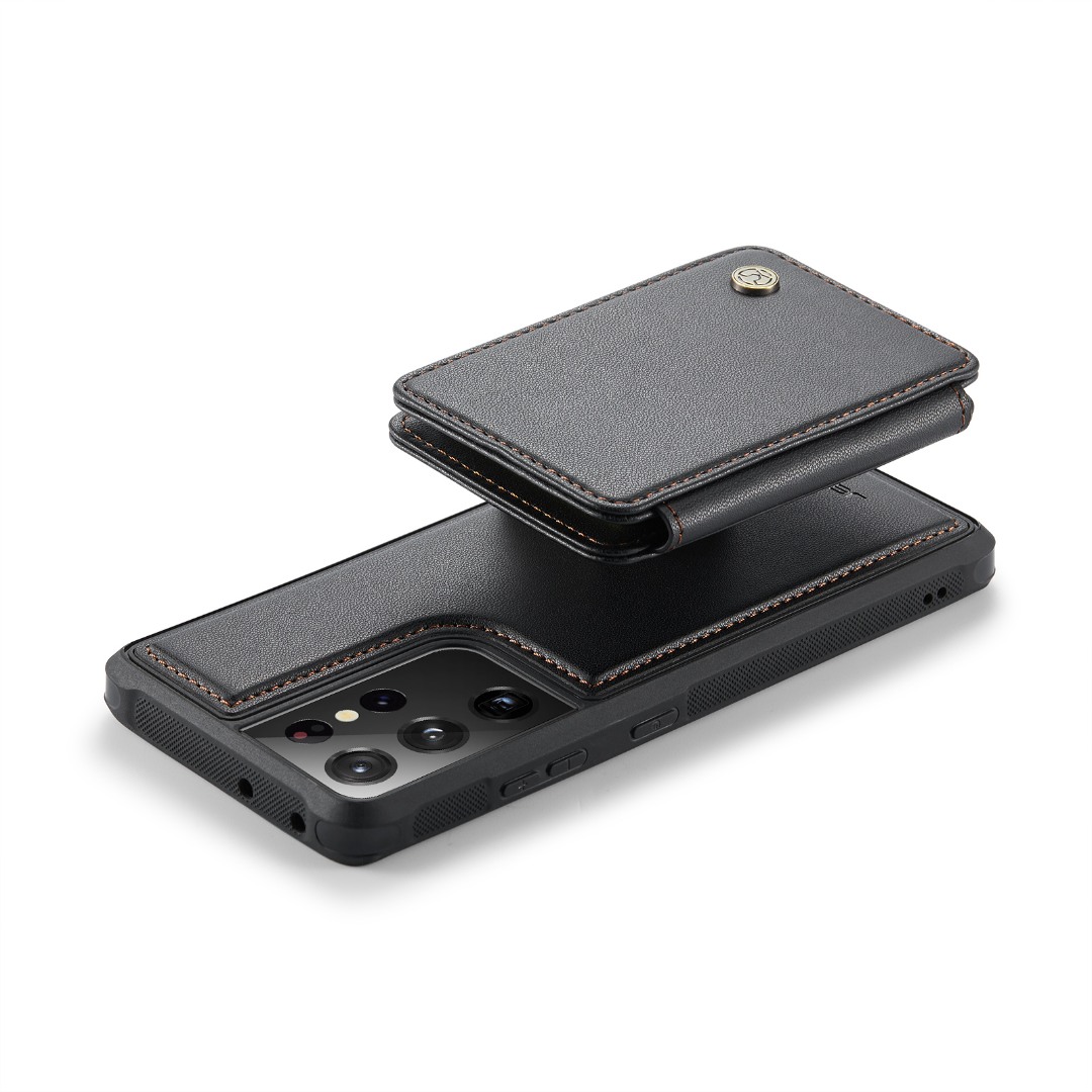 Husa piele cu textura moale si aderenta in mana, back cover, mini portofel magnetic detasabil, slot carduri, functie stand, protectie RFID, Samsung Galaxy S21 Ultra, CaseMe, Negru