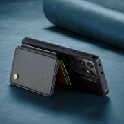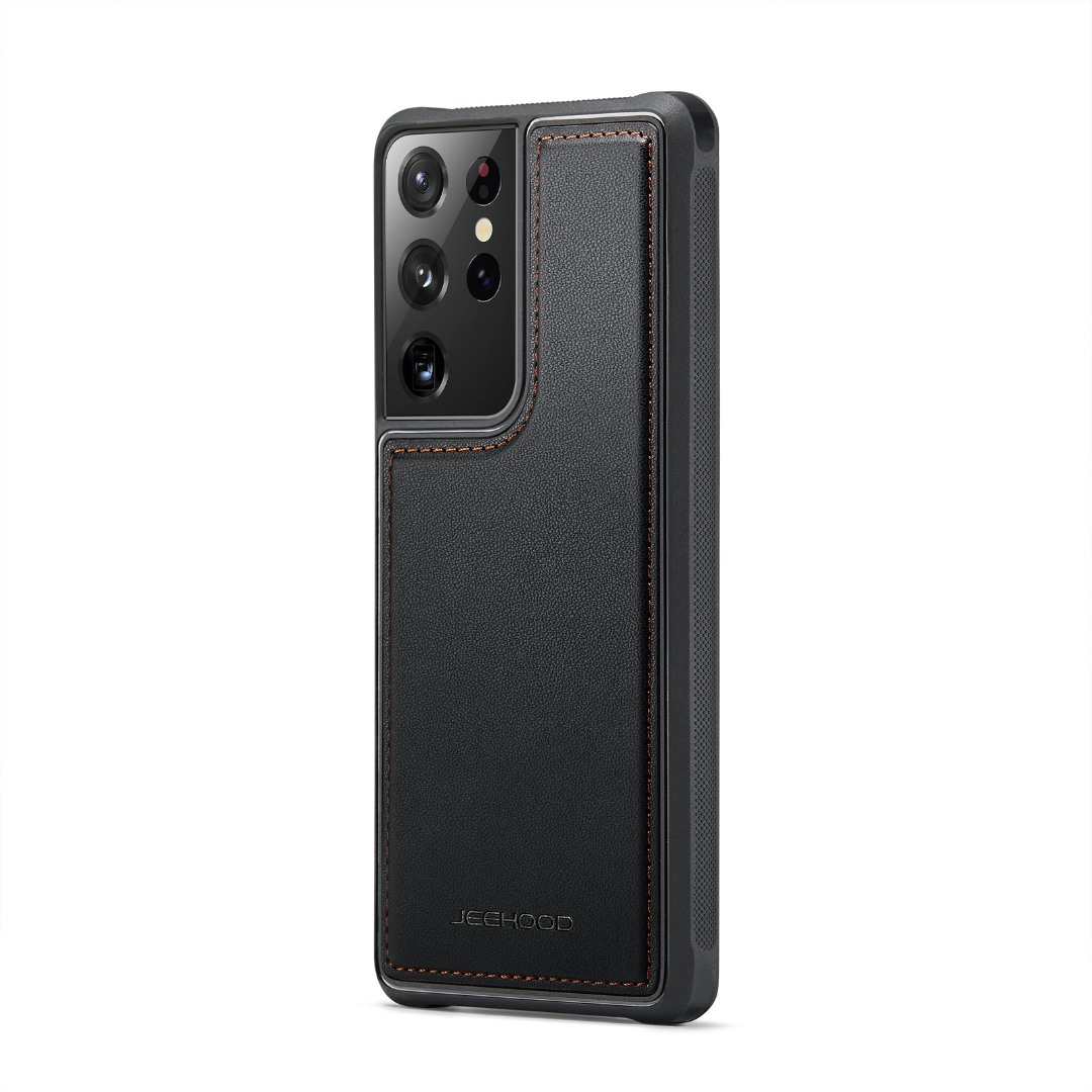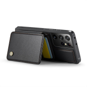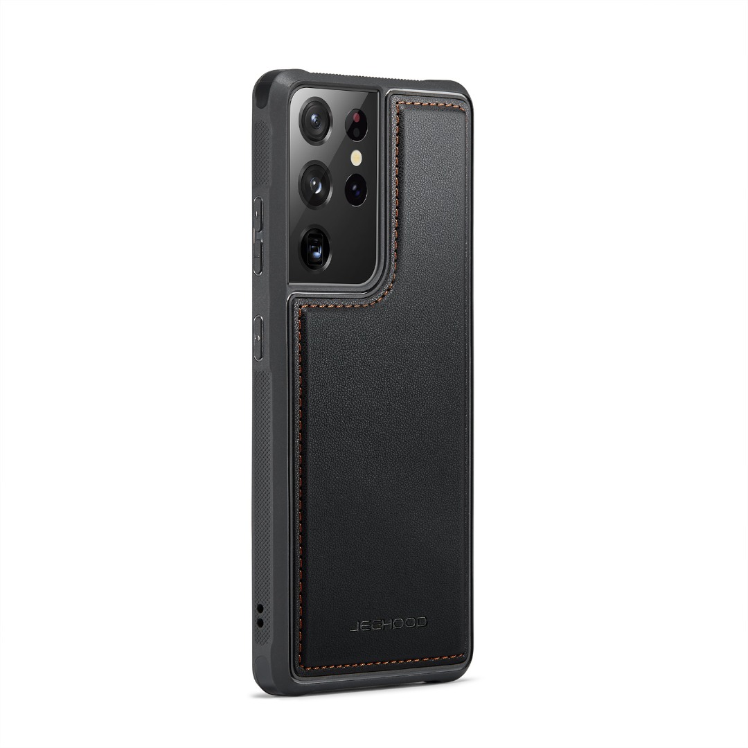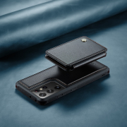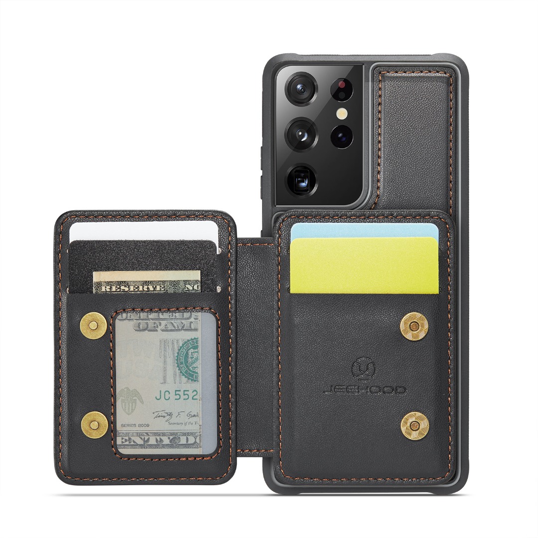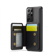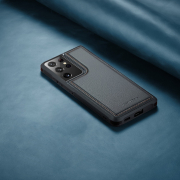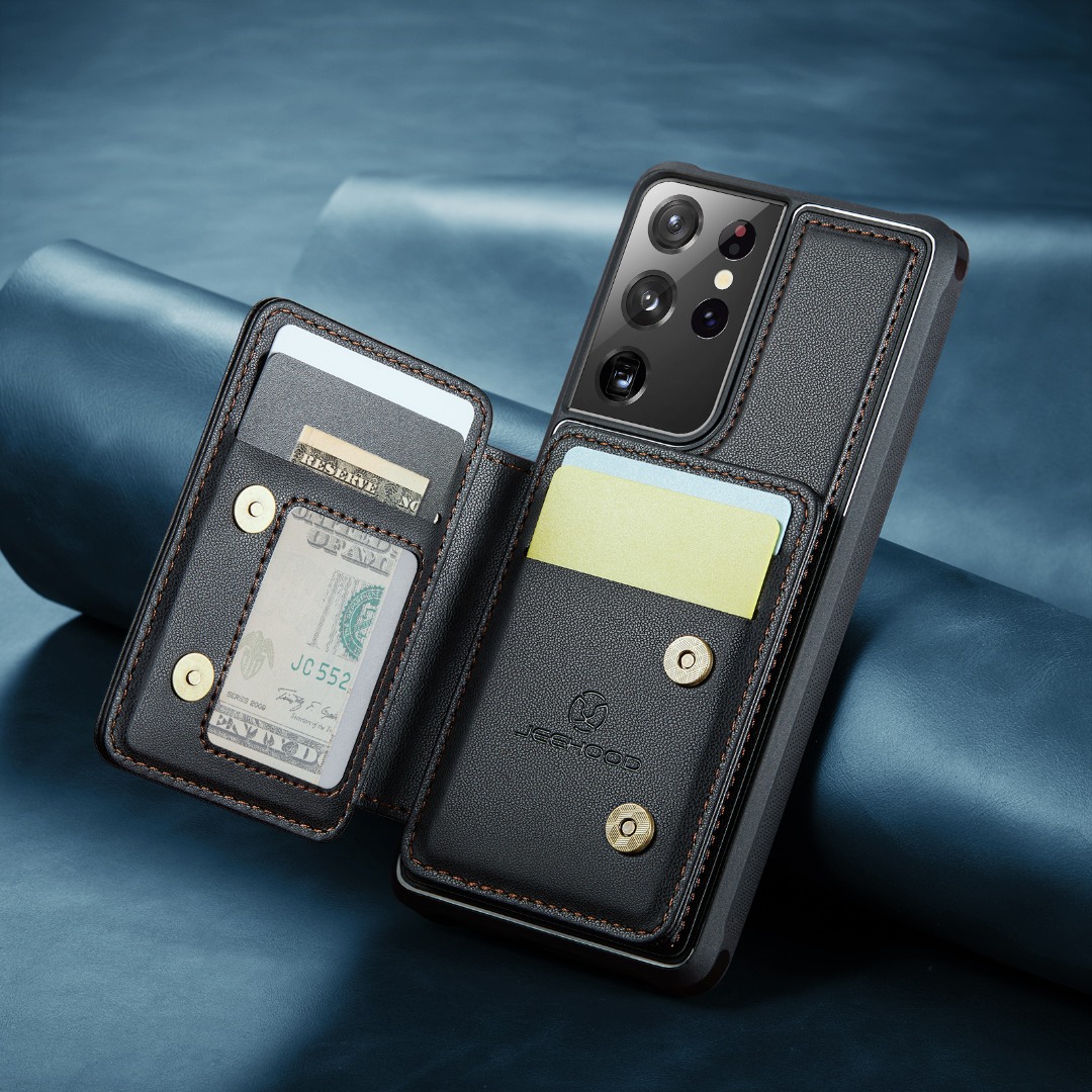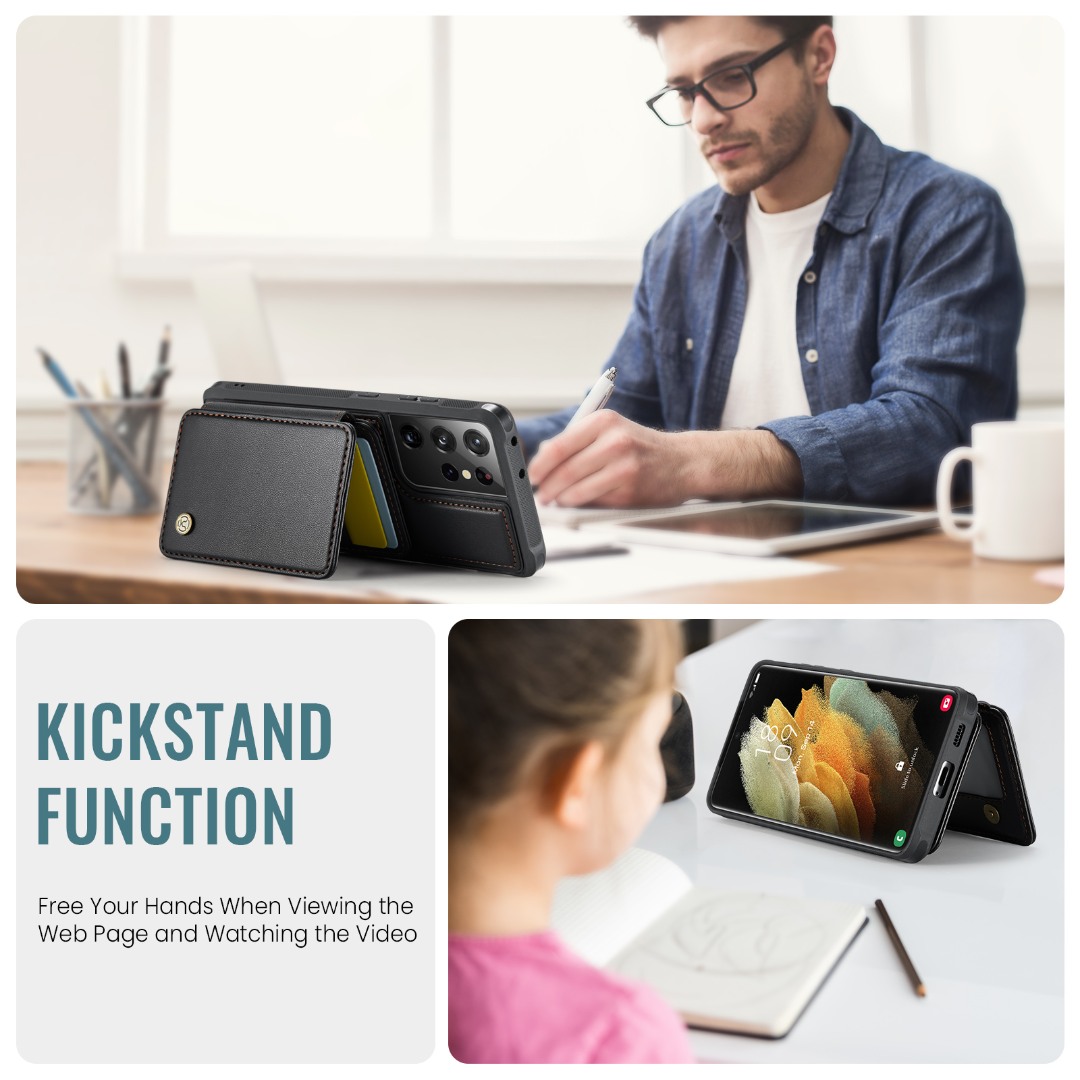 Husa piele cu textura moale si aderenta in mana, back cover, mini portofel magnetic detasabil, slot carduri, functie stand, protectie RFID, Samsung Galaxy S21 Ultra, CaseMe, Negru