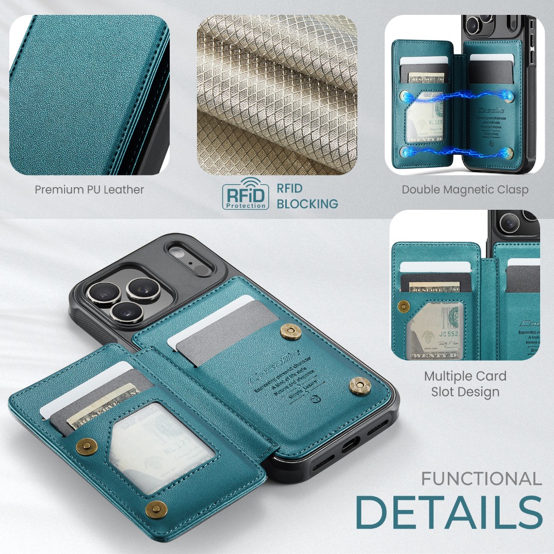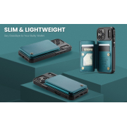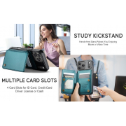 Husa piele cu textura moale si aderenta in mana, back cover, slot carduri, functie stand, protectie RFID, iPhone 17 Pro, Verde