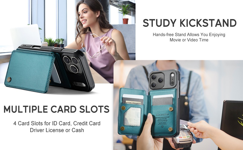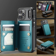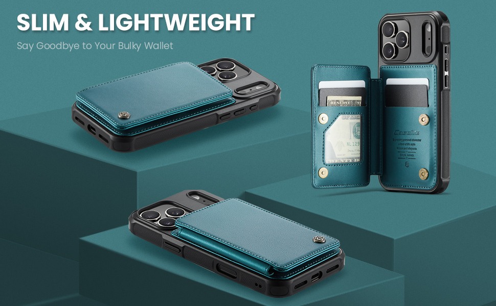 Husa practica si eleganta ce ofera posibilitatea introducerii de carduri bancare si bancnote in buzunarasele interioare.