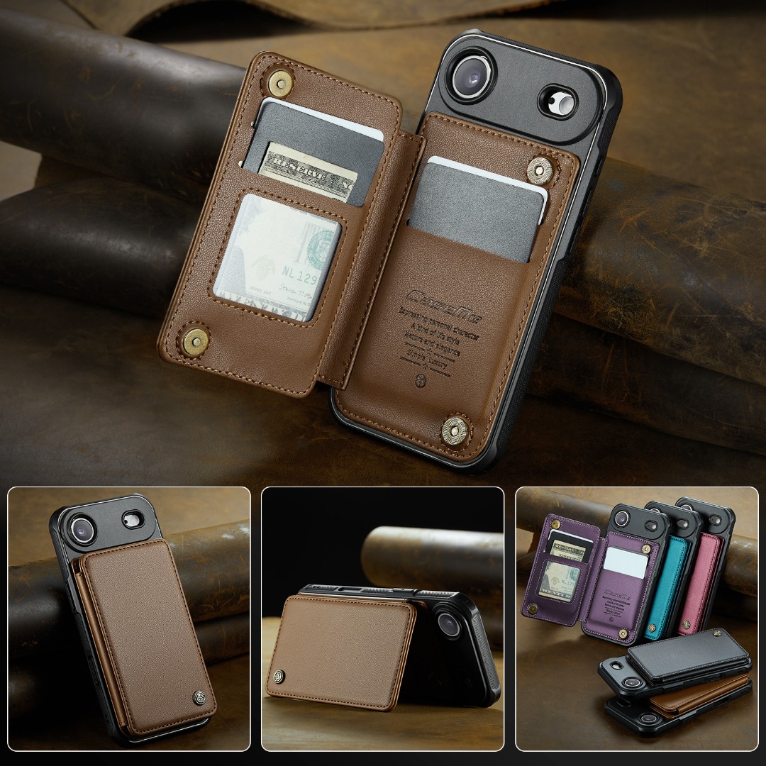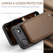 Husa piele cu textura moale si aderenta in mana, back cover, slot carduri, functie stand, protectie RFID, iPhone Air, Maro